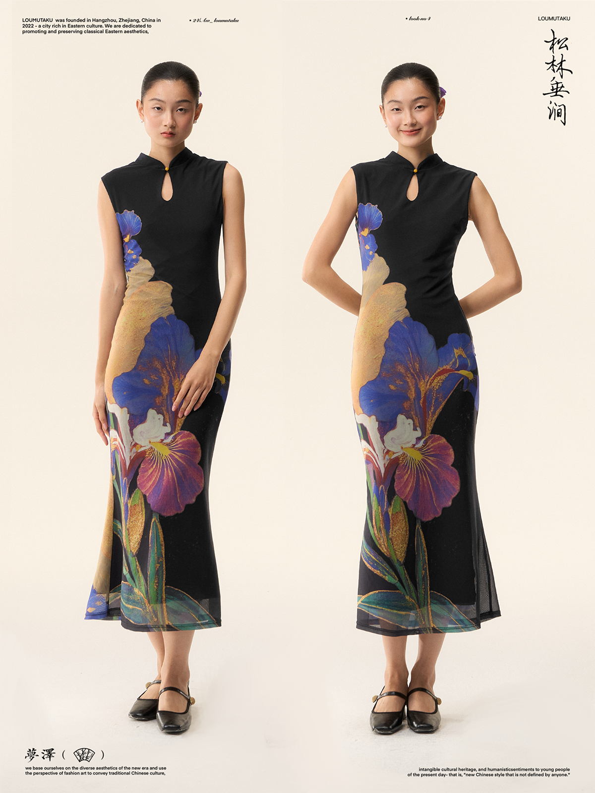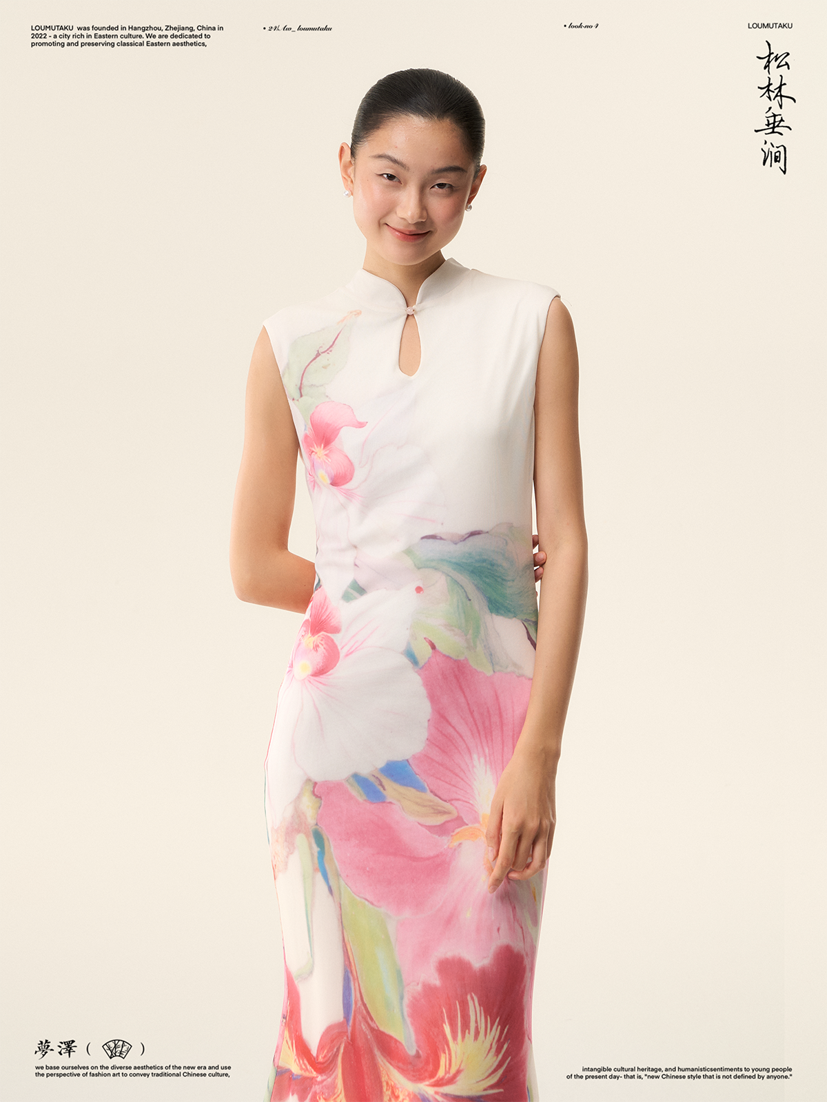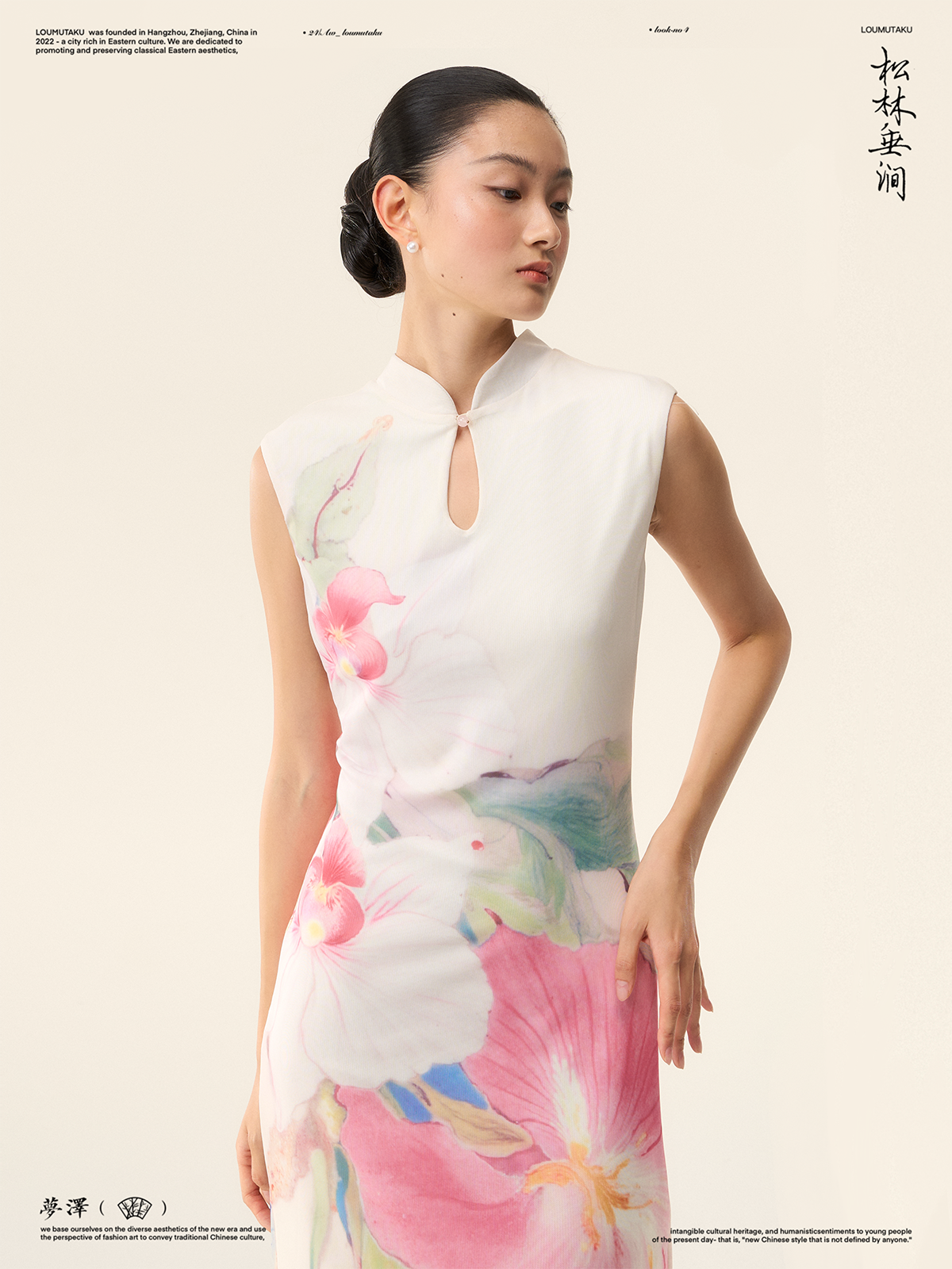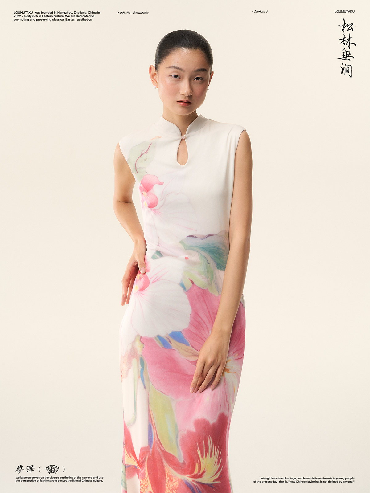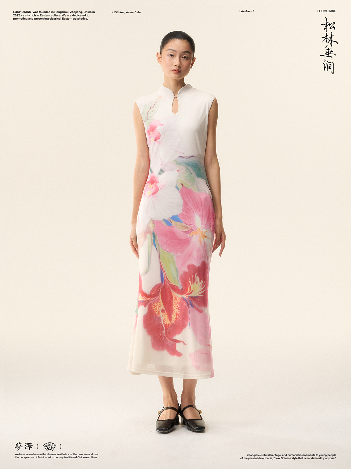 Loumutaku Mengze's "Flowers in Layers of Rhythm" New Chinese Style Double-Sided Floral Cheongsam Dress for Women in Summer