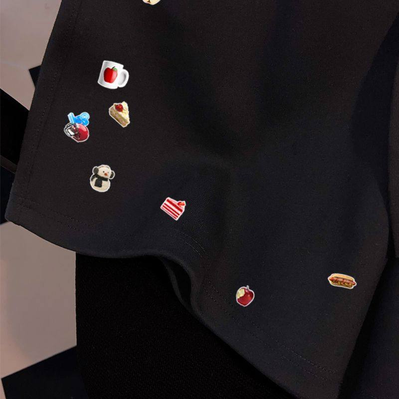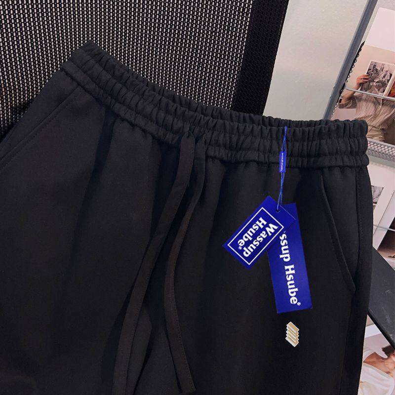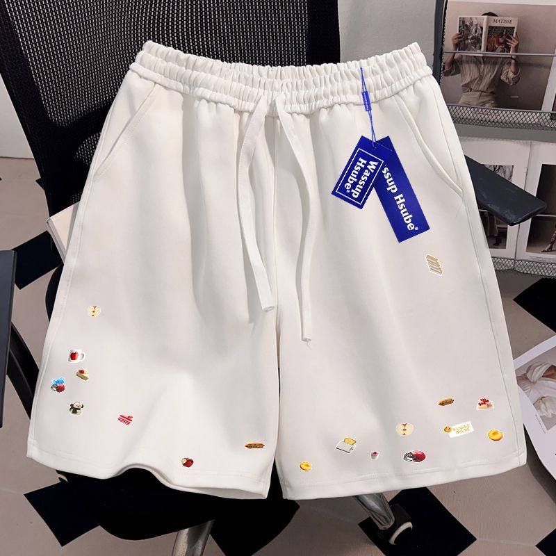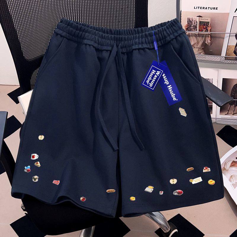 Wassup Fun Cartoon Letter Print Street Fashion Pants Summer Black Five-Point Shorts Unisex Casual Shorts