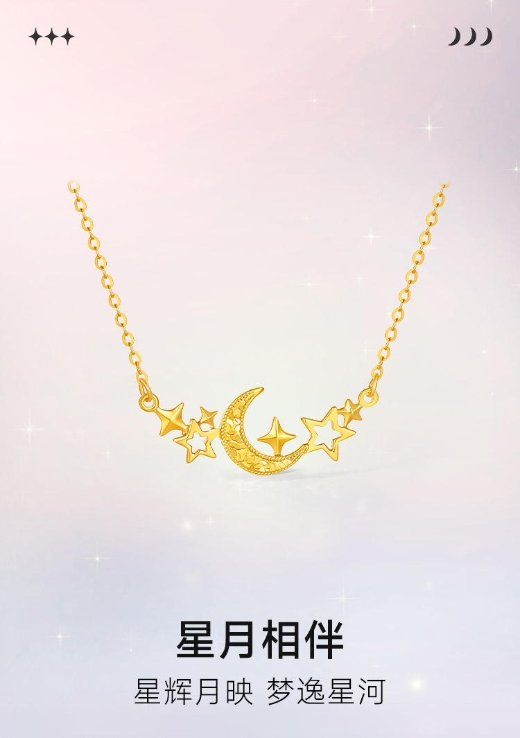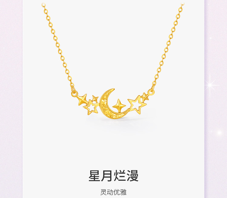 Saturday Fortune Gold Price: 5g Pure Gold Sparkling Star and Moon Necklace Romantic Starry Night Series Holiday Gift