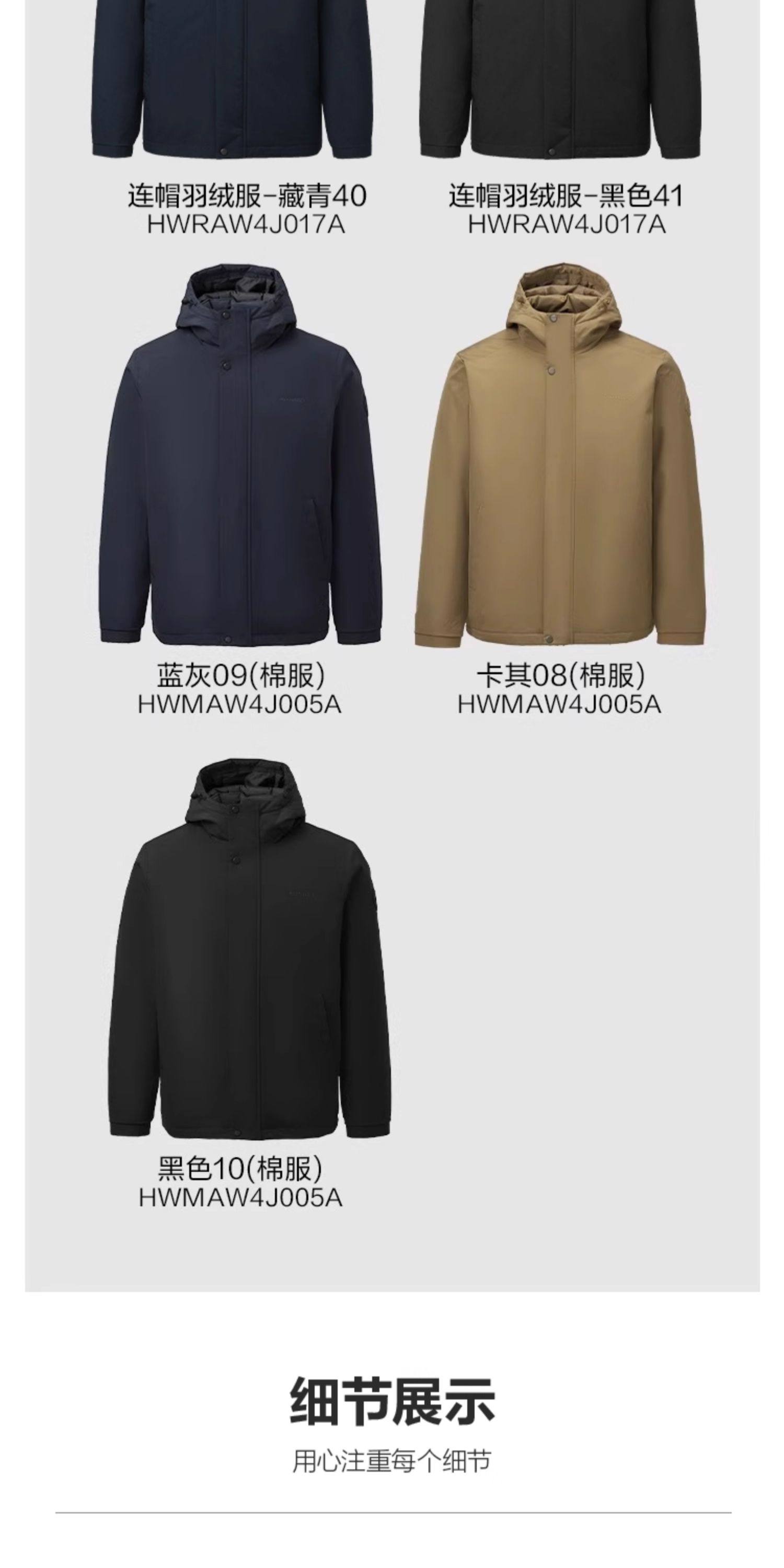 [Windproof and Waterproof] Heilan Home 25 Autumn/Winter New Casual Hooded Warm Cotton Jacket Thick Coat for Men