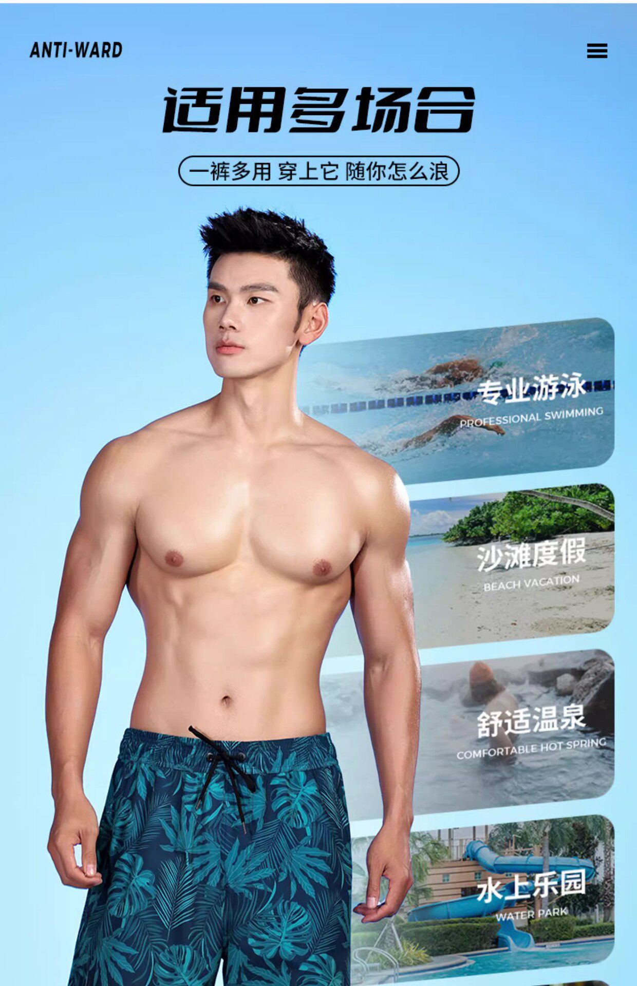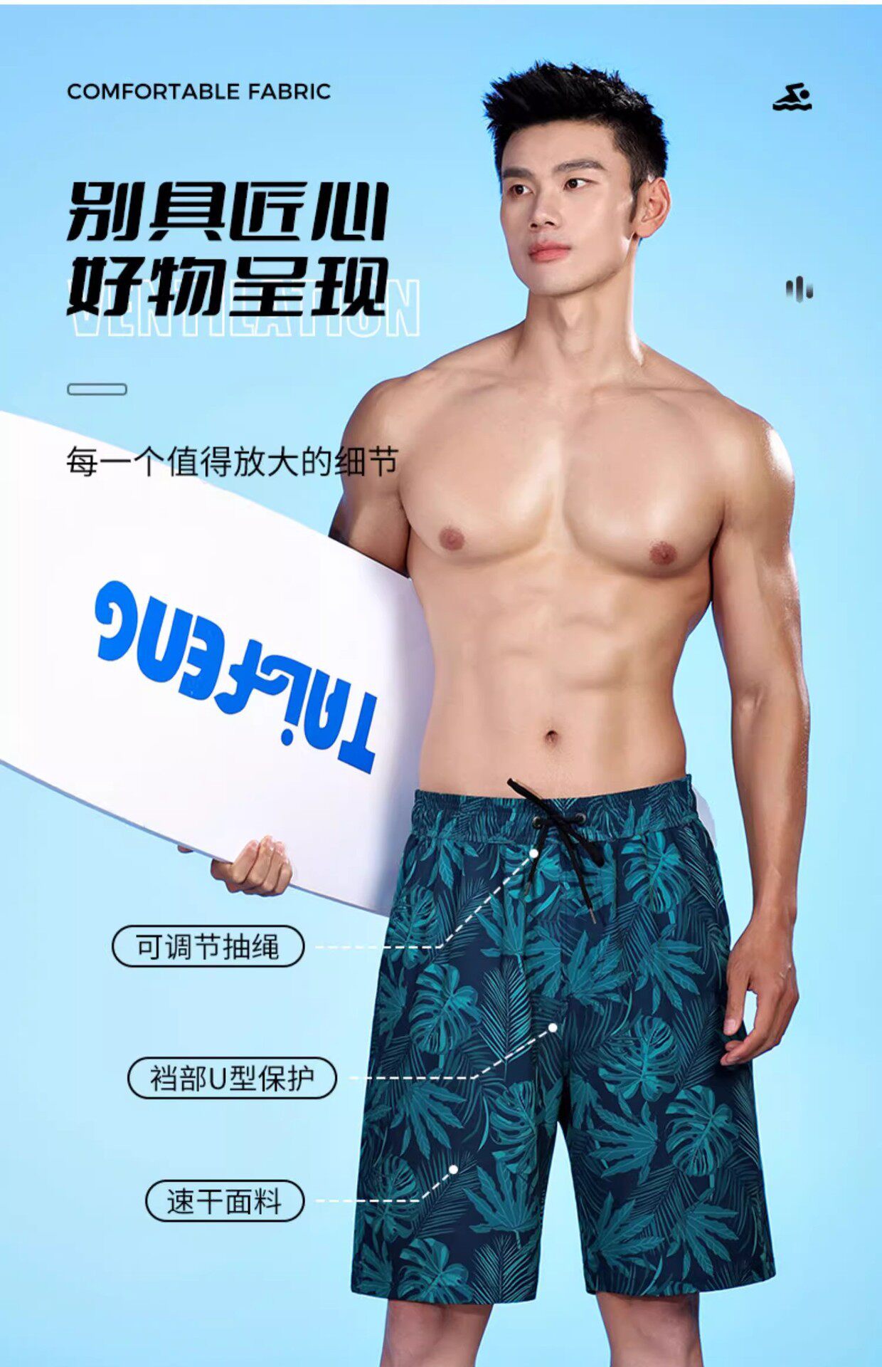 Men's Beach Shorts, Suitable for Water Activities, Quick-Drying, Beach Surfing, Large Size, Loose Fit, Anti-Embarrassment, Five-Point Swimming Shorts