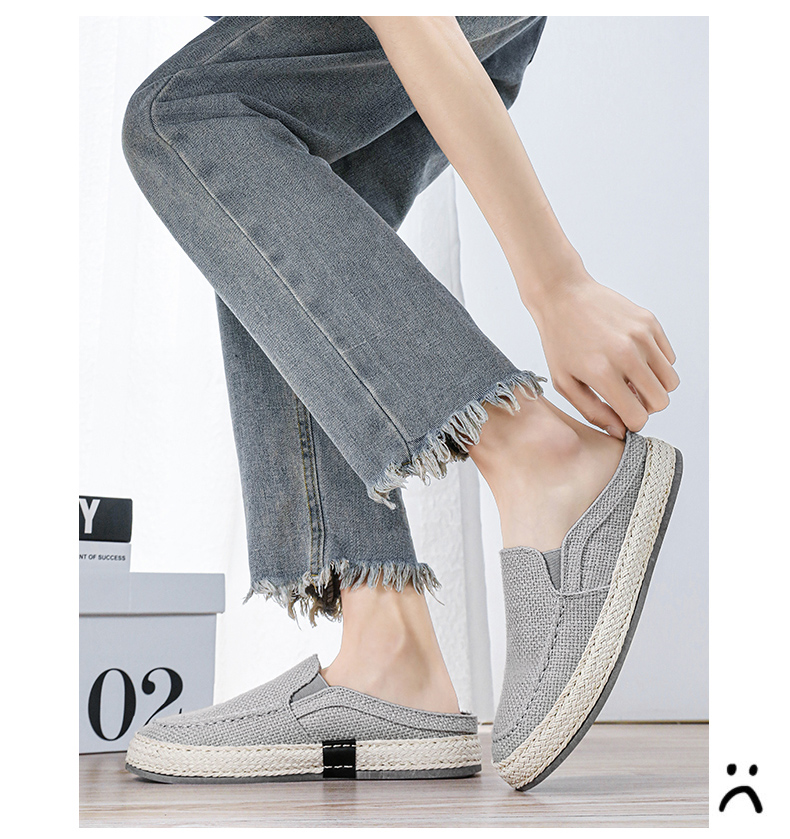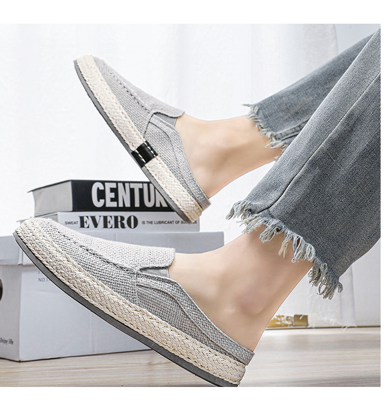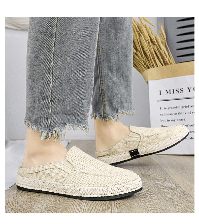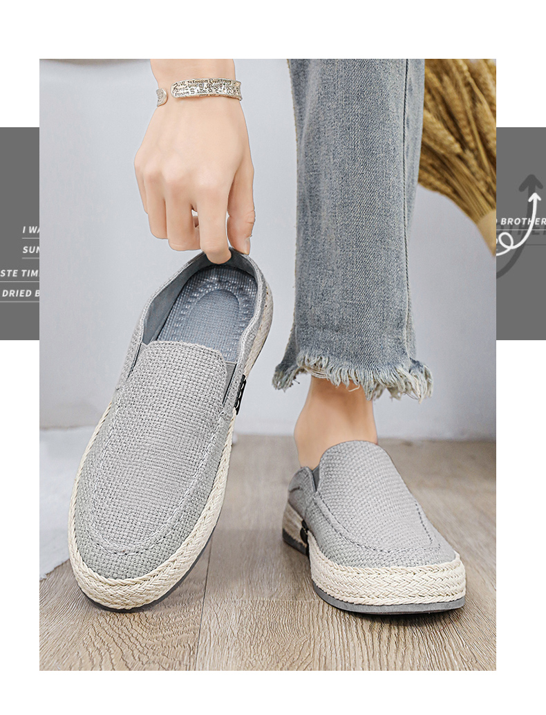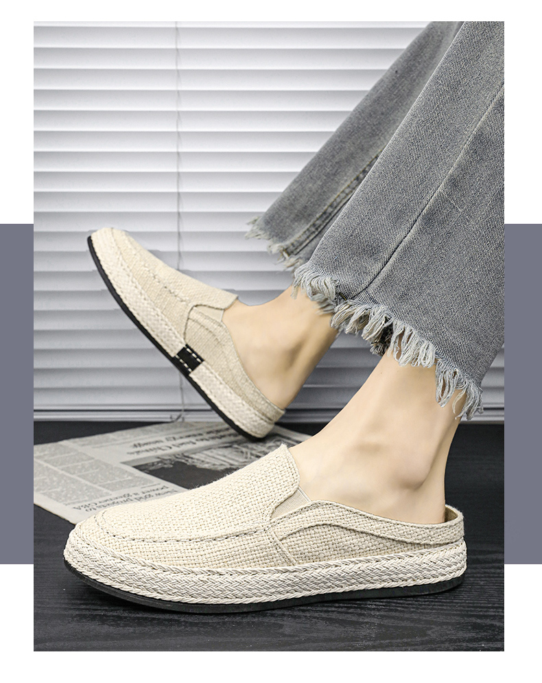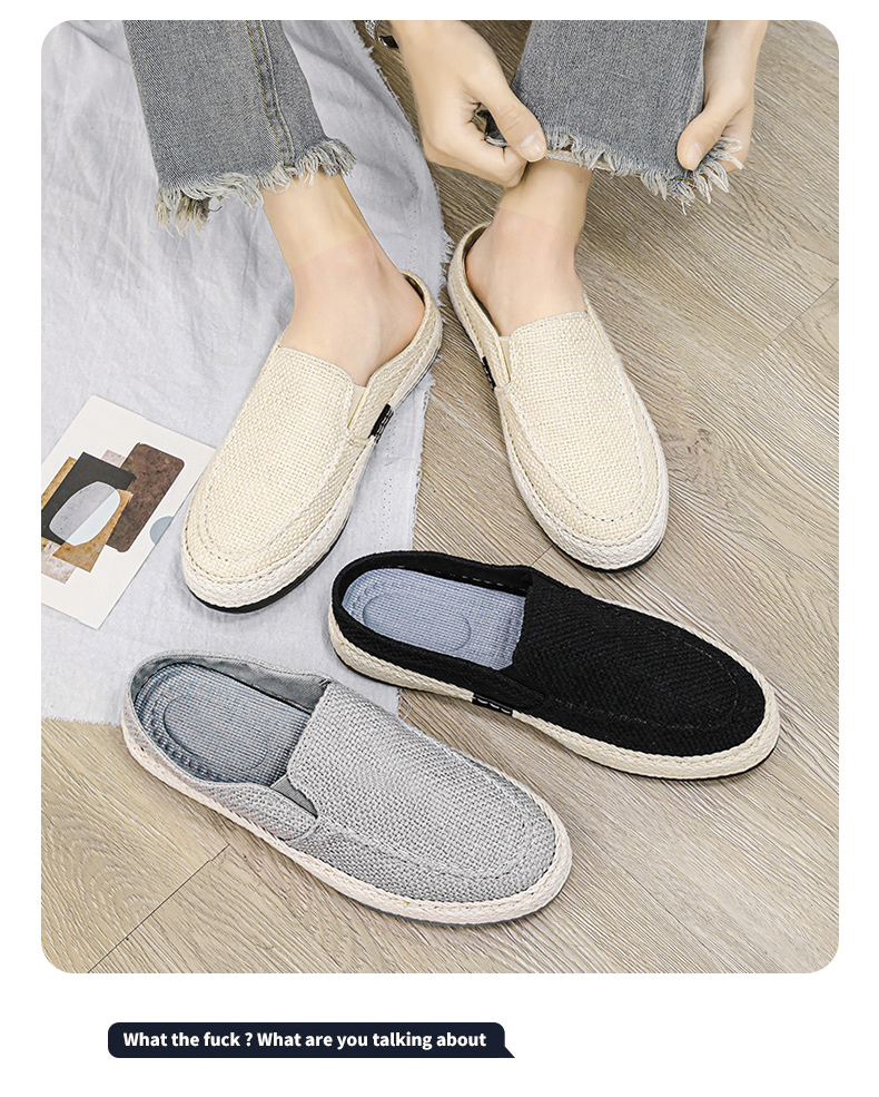 Canvas Shoes for Men, Summer Breathable Sports Casual Linen Shoes, Slip-On Without Heel, Closed-Toe Half Slippers