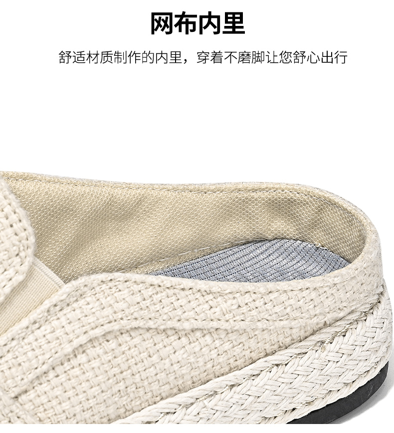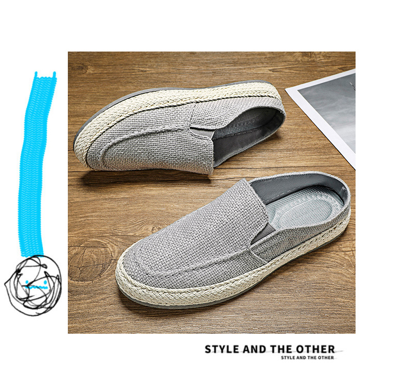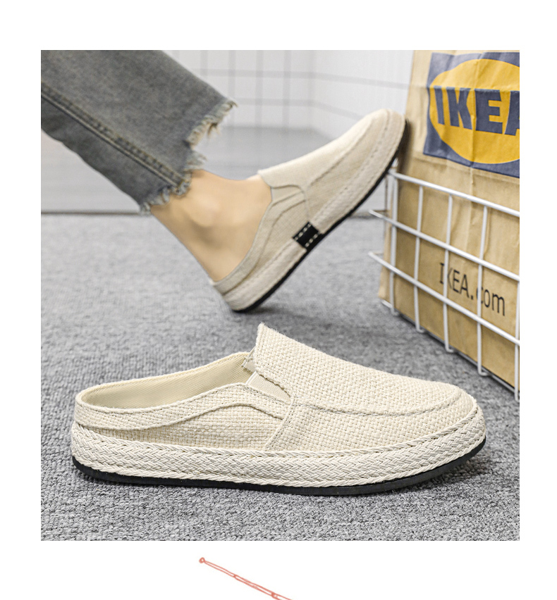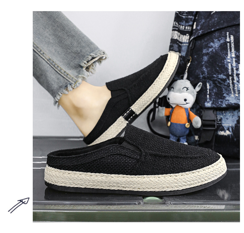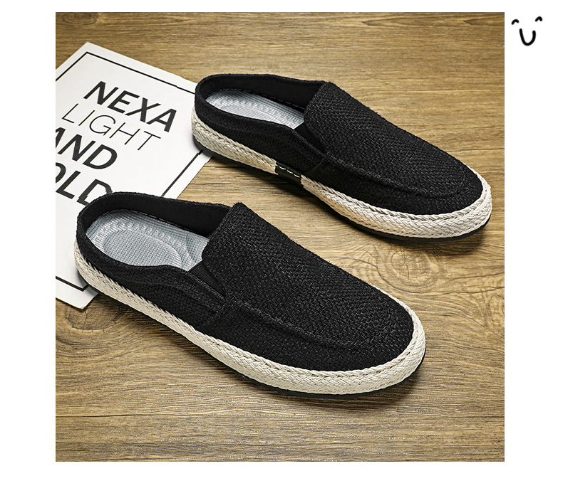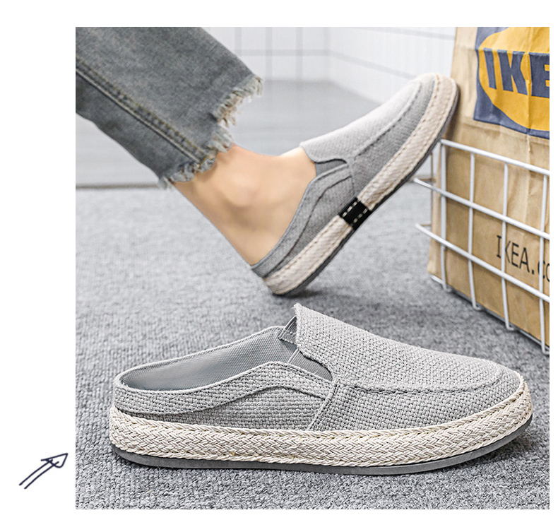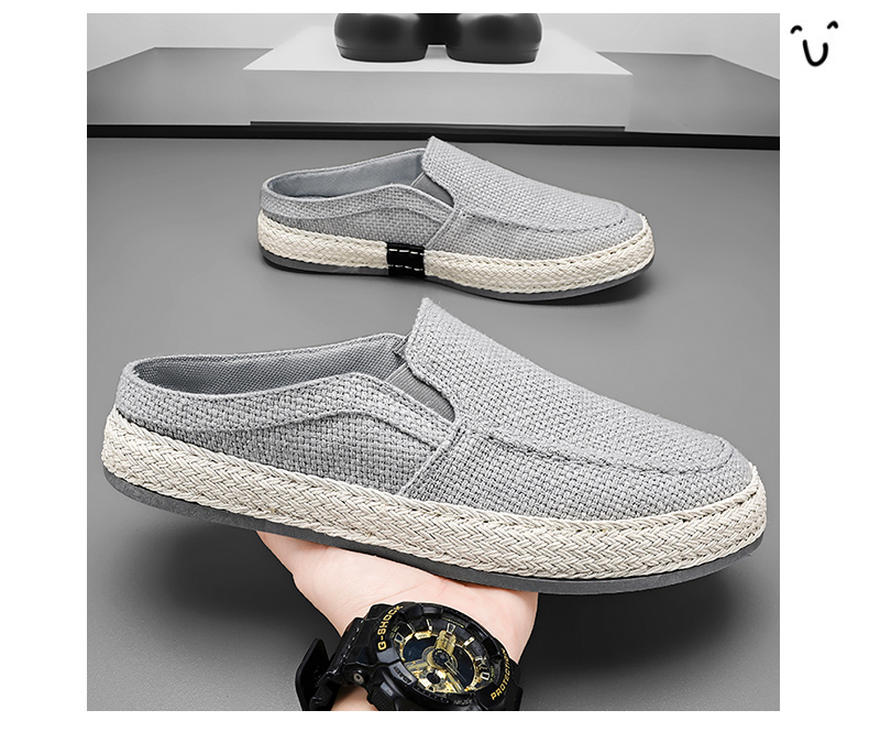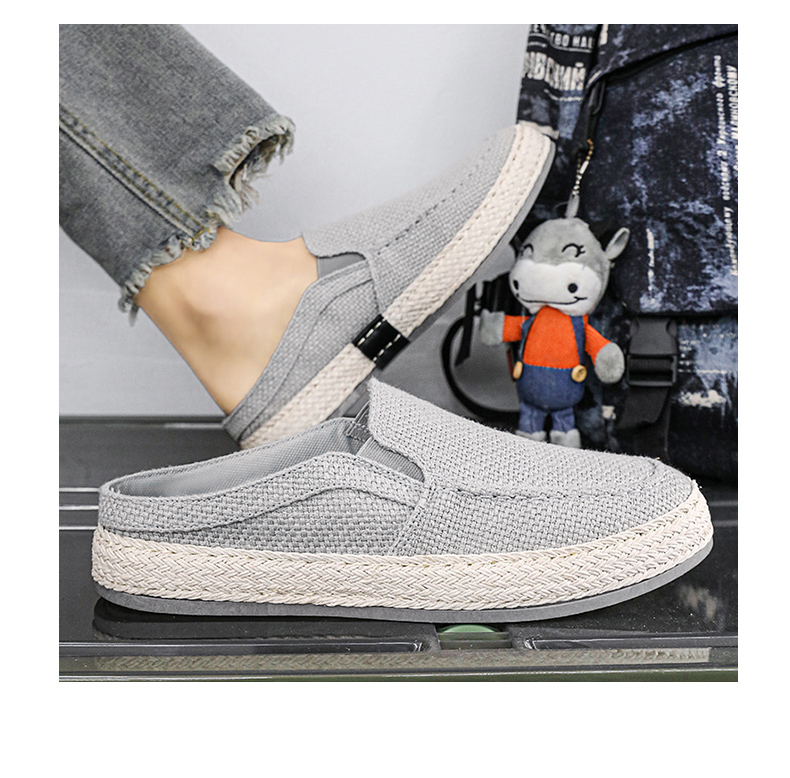 Canvas Shoes for Men, Summer Breathable Sports Casual Linen Shoes, Slip-On Without Heel, Closed-Toe Half Slippers