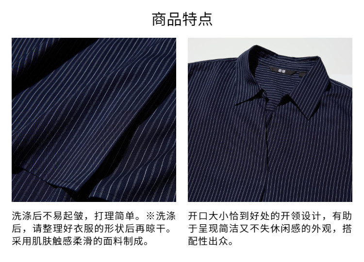 Uniqlo Women's Fancy Half-Open Collar Striped Shirt/7/8 Sleeve Shirt Air Conditioning Shirt 479074