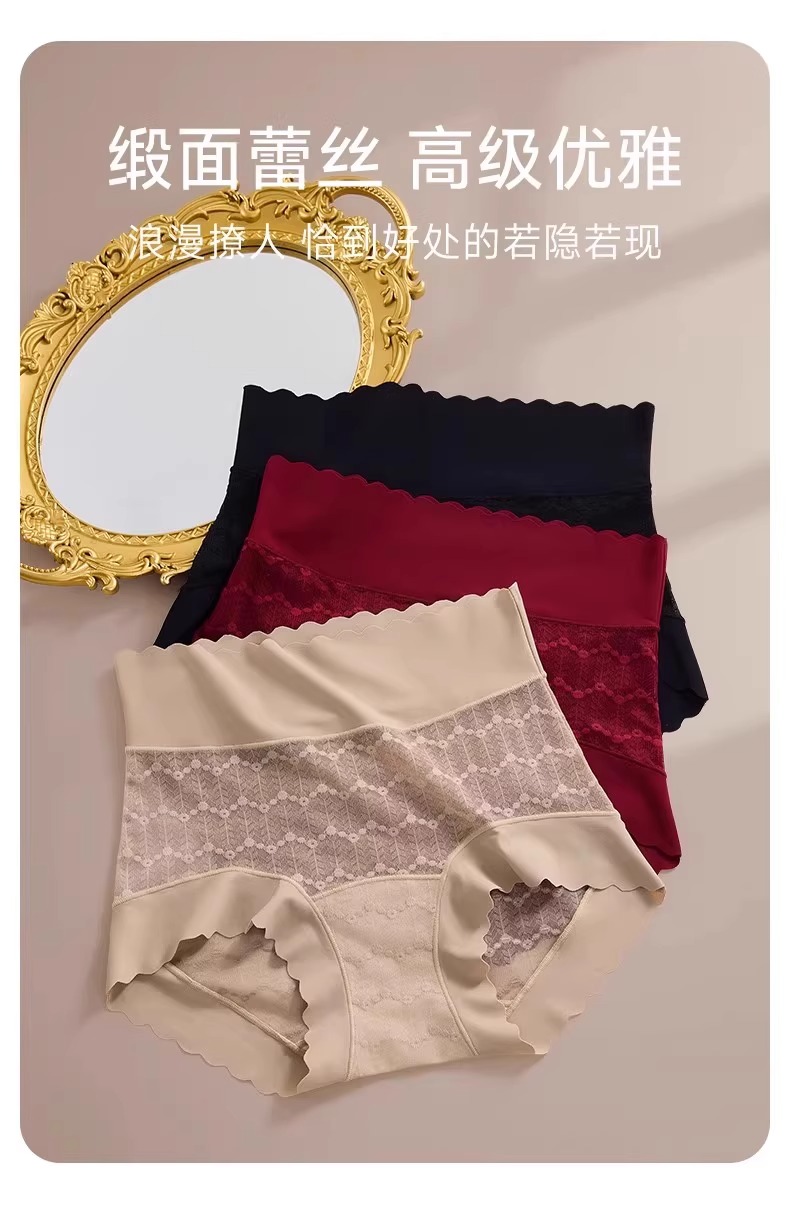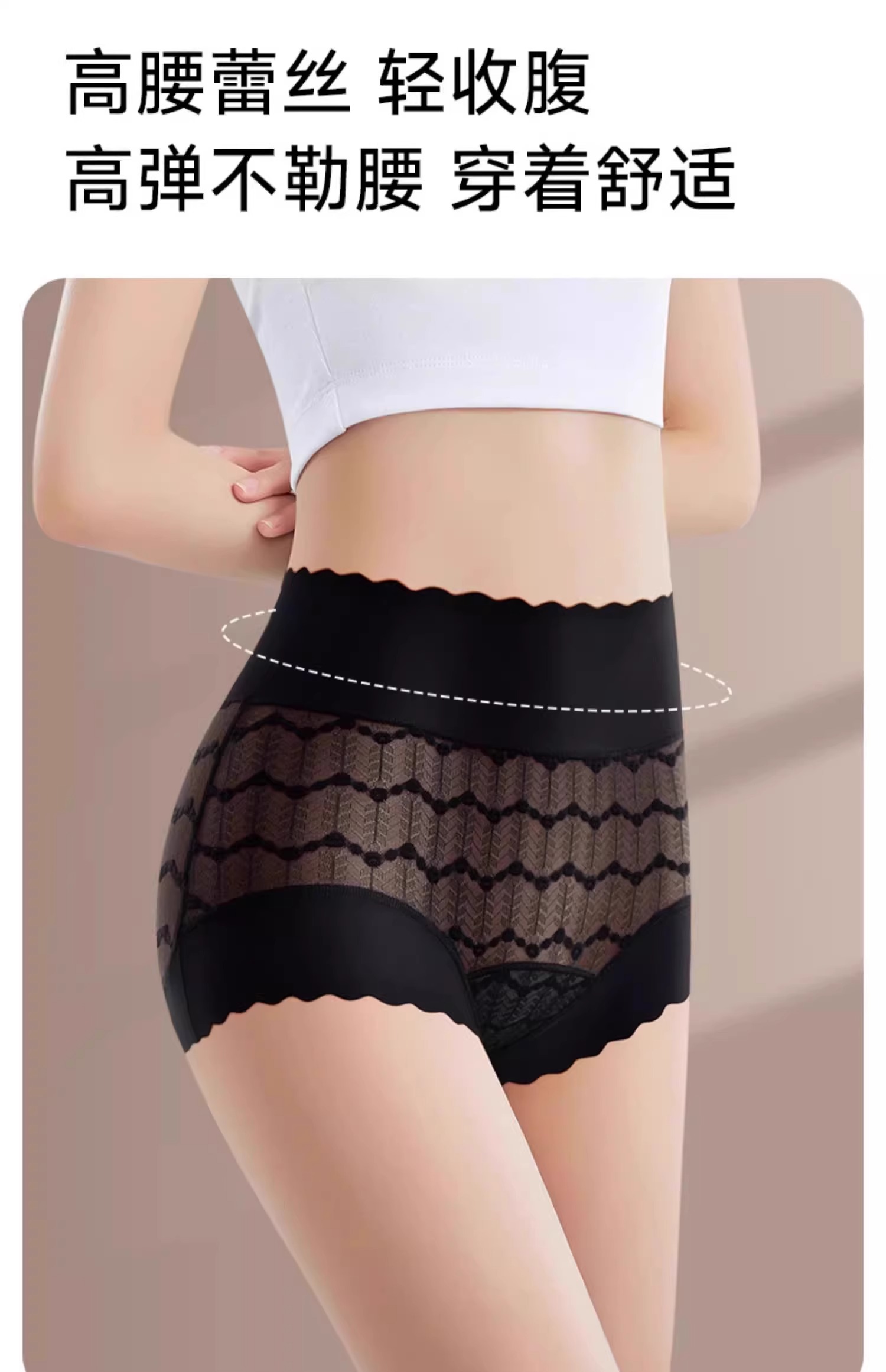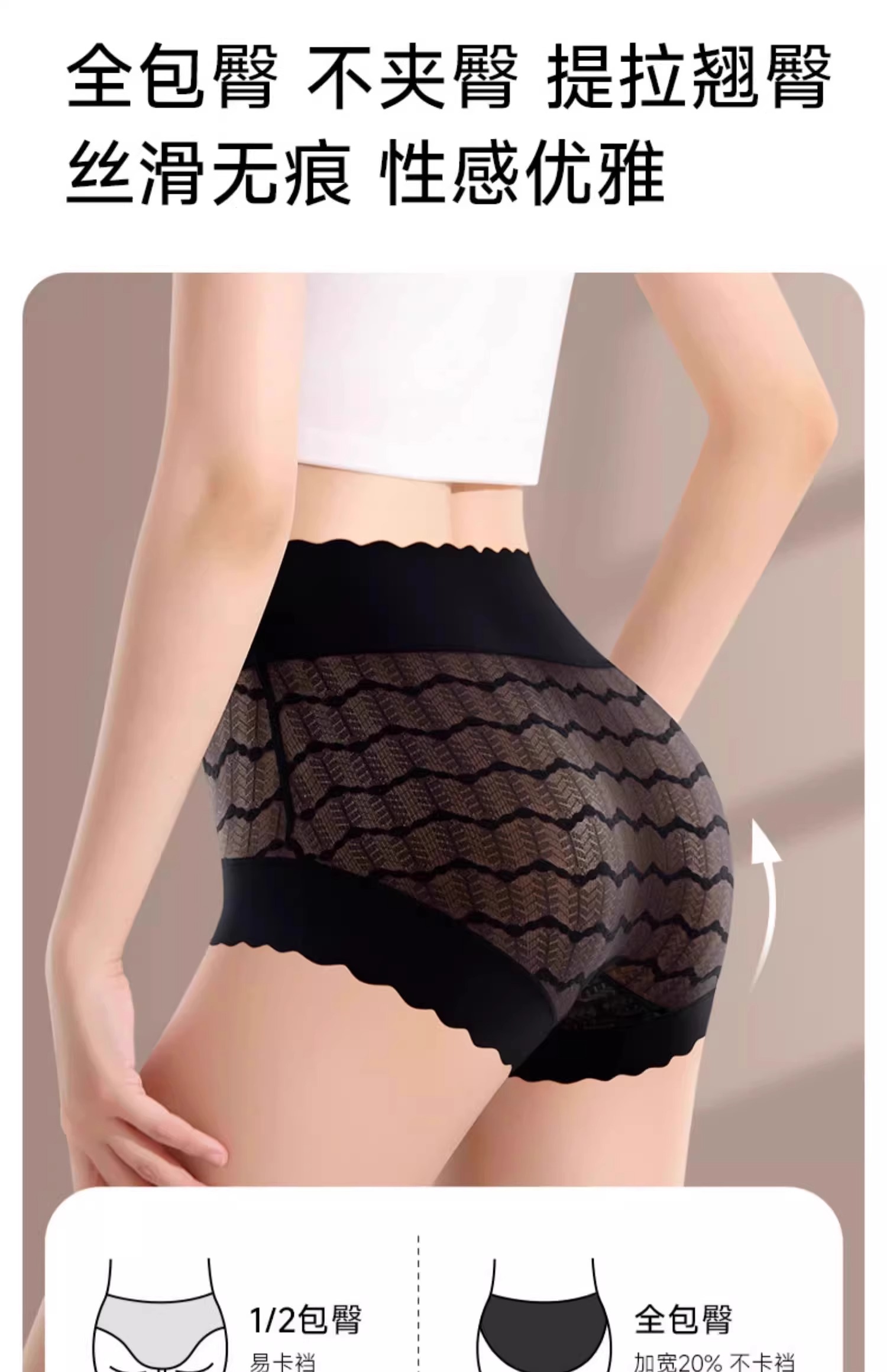 Japanese Women's High-Waisted Tummy Control Sexy Ice Silk Antibacterial Thin Panties for Slimming the Belly, Lifting the Hips, Seamless Butt-Lifting Safety Shorts