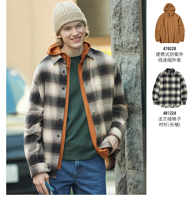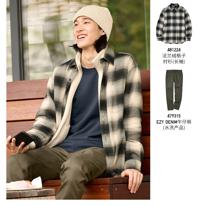 UNIQLO men's and women's flannel Gingham shirt Long sleeves shirt thin coat 25 Fall and winter 481224 480767