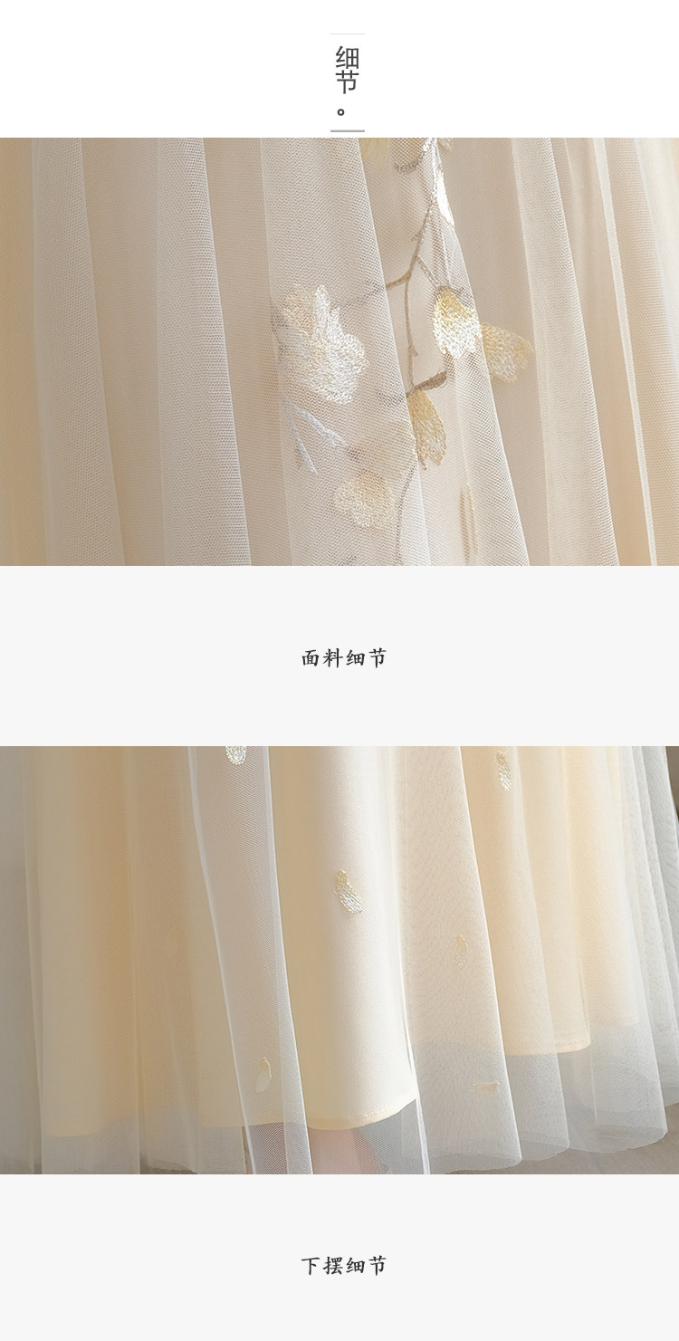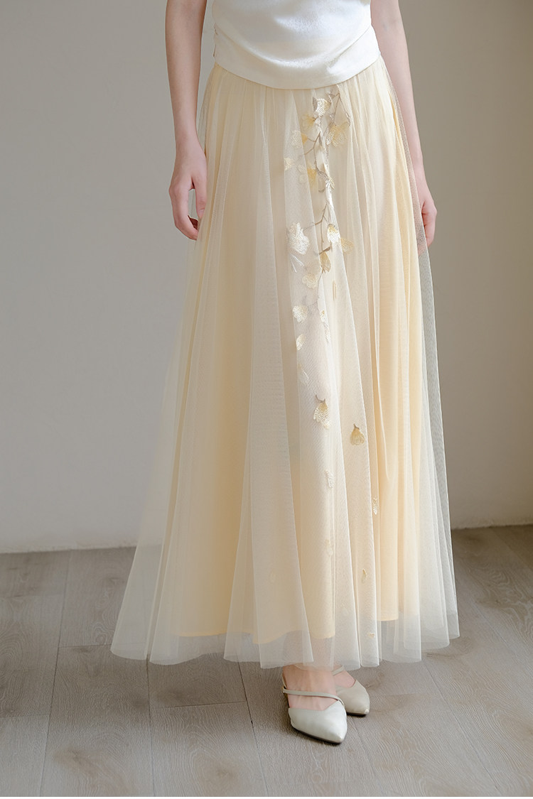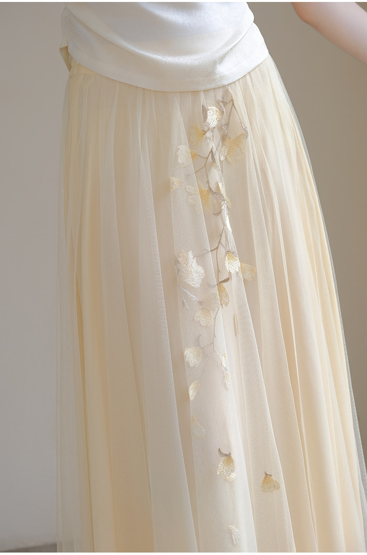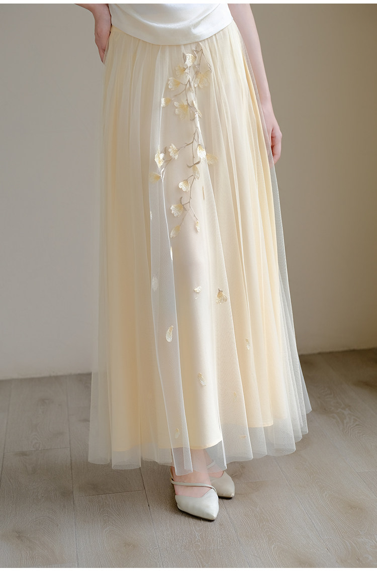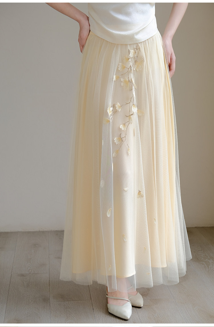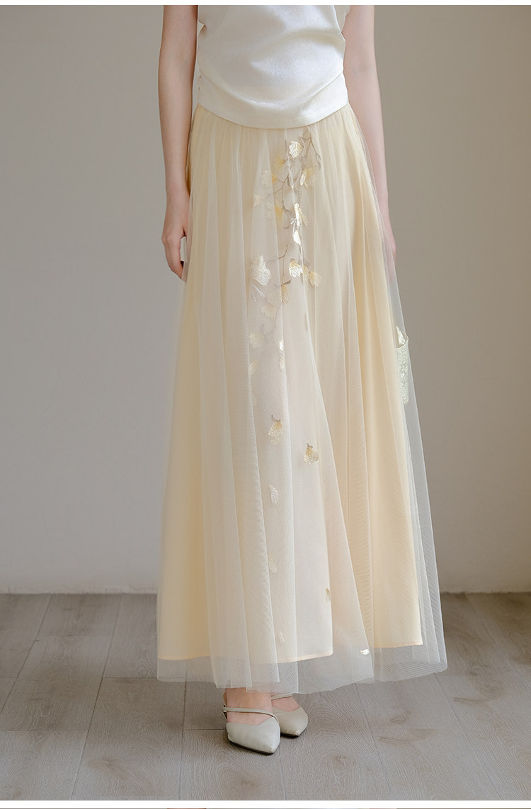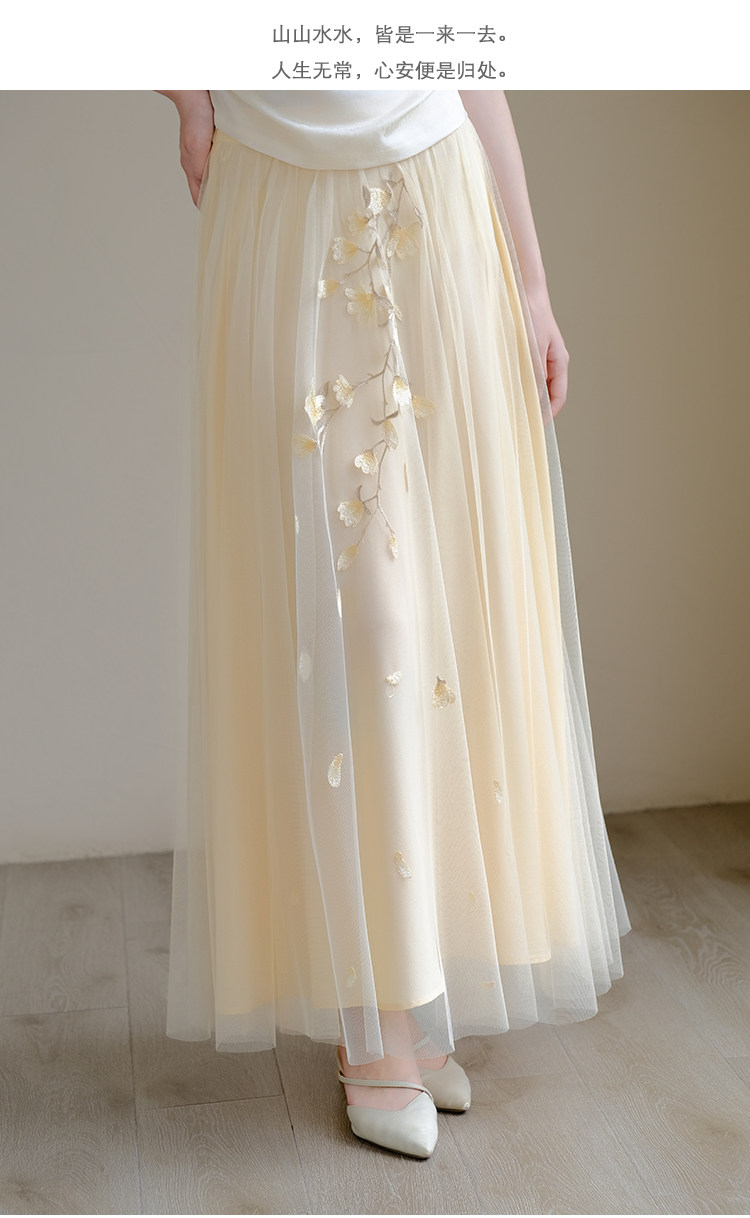 The Mountains Are Colorful, the Floating Flowers Reflect the World, 2025 New Chinese Style Summer New National Style Heavy-Duty Three-Dimensional Embroidery Mesh Skirt
