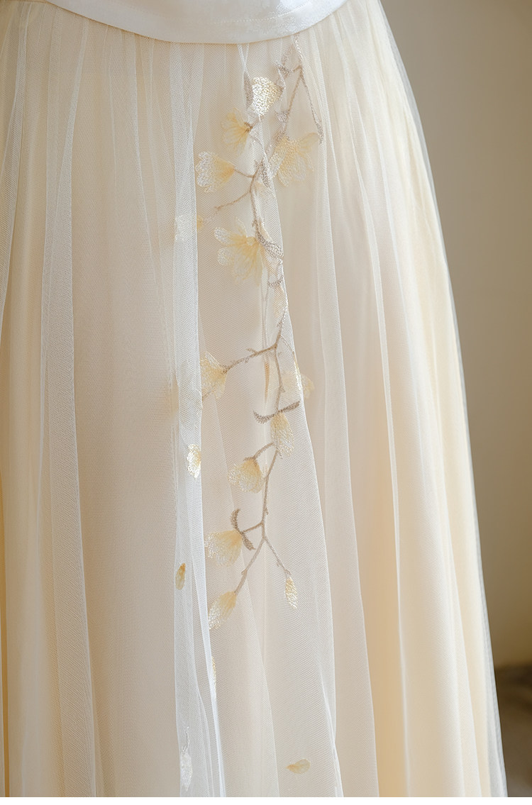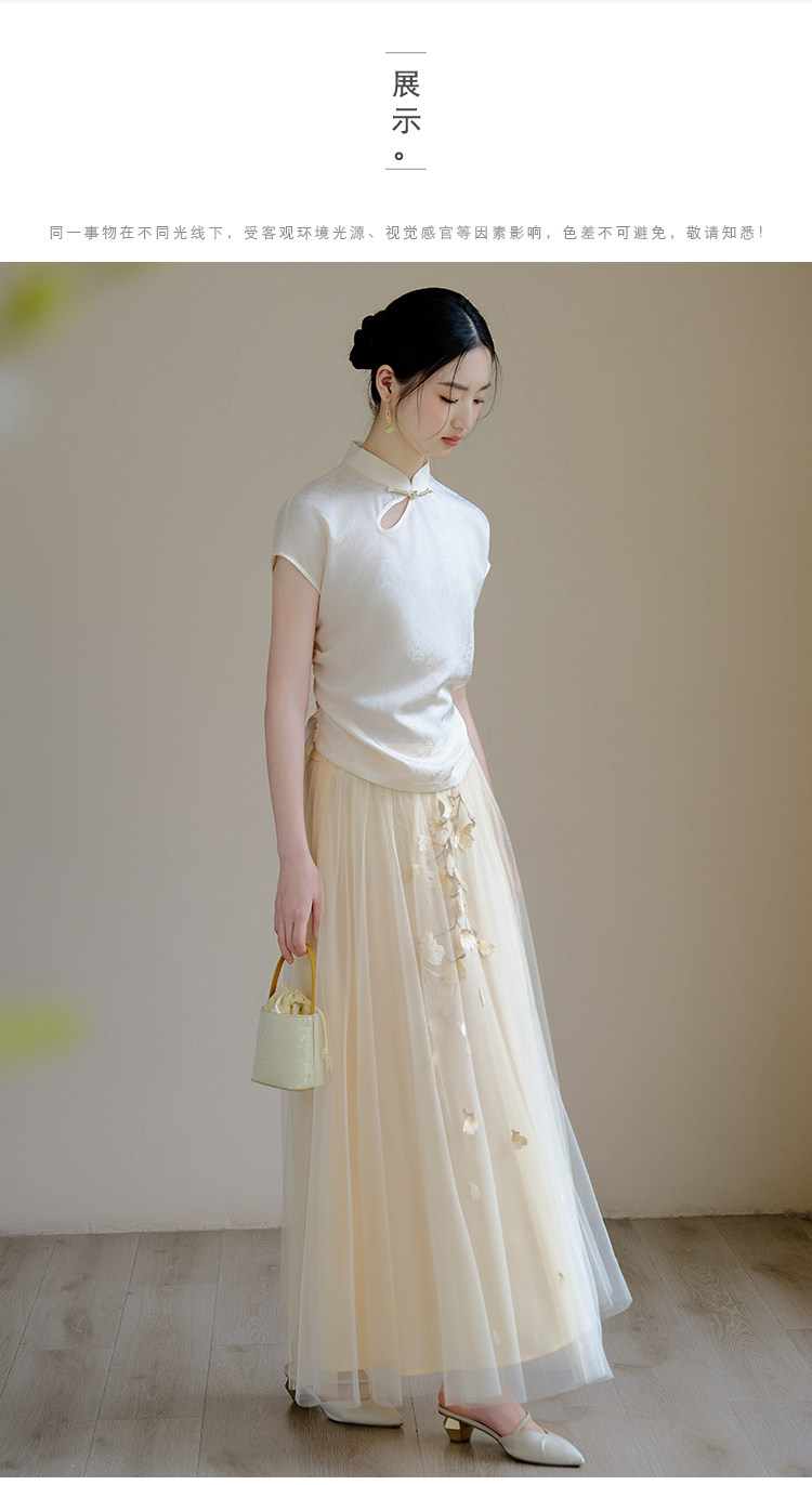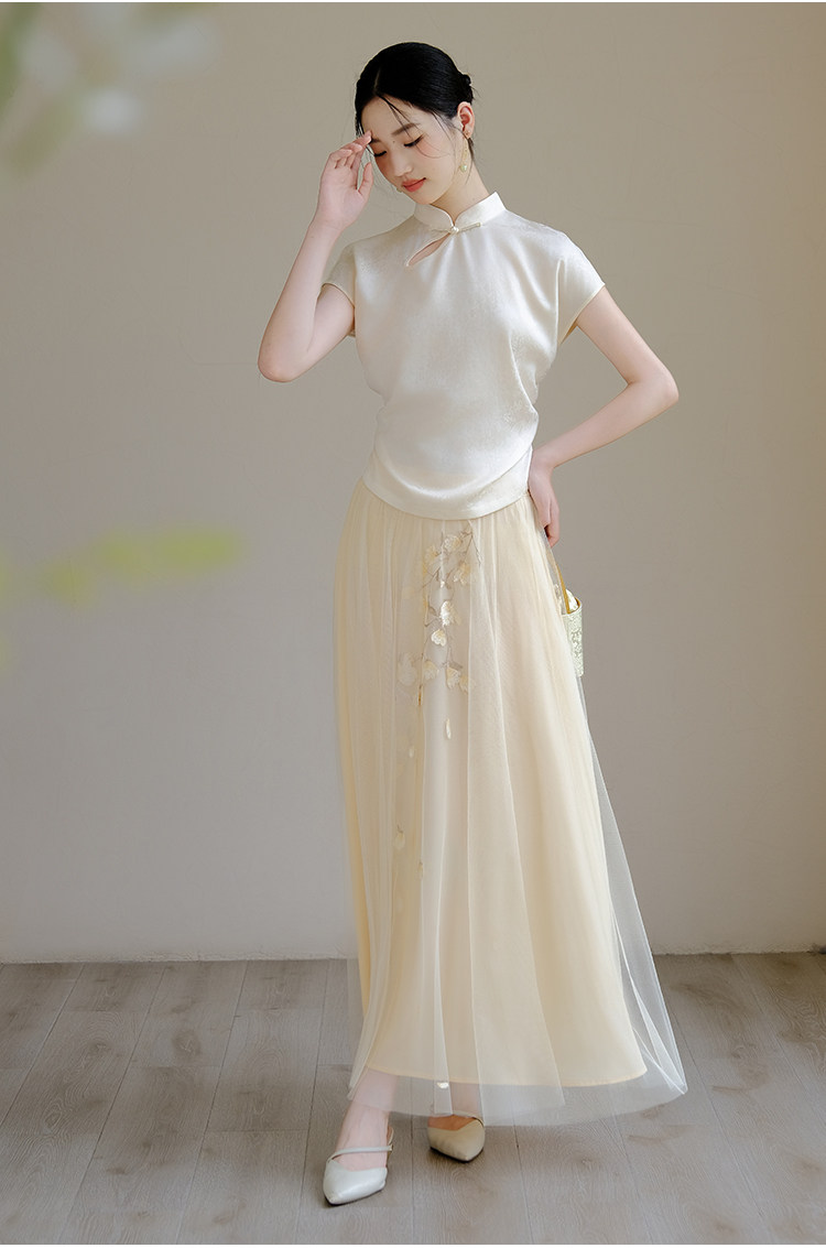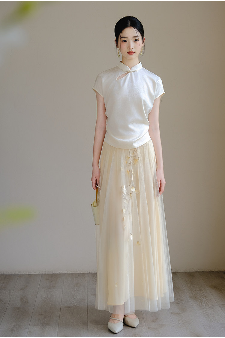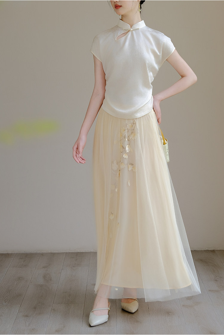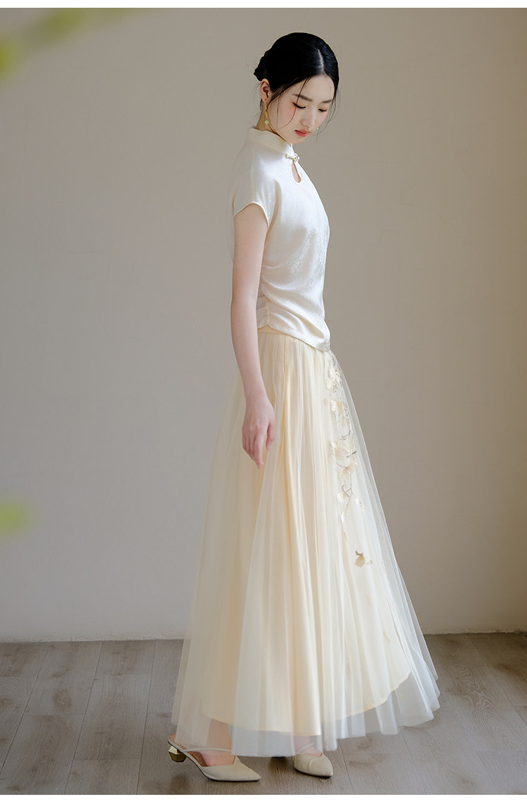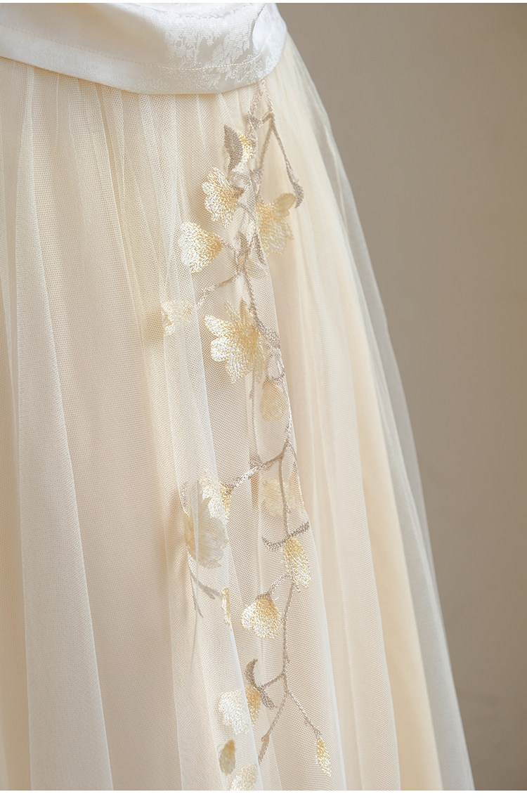 The Mountains Are Colorful, the Floating Flowers Reflect the World, 2025 New Chinese Style Summer New National Style Heavy-Duty Three-Dimensional Embroidery Mesh Skirt