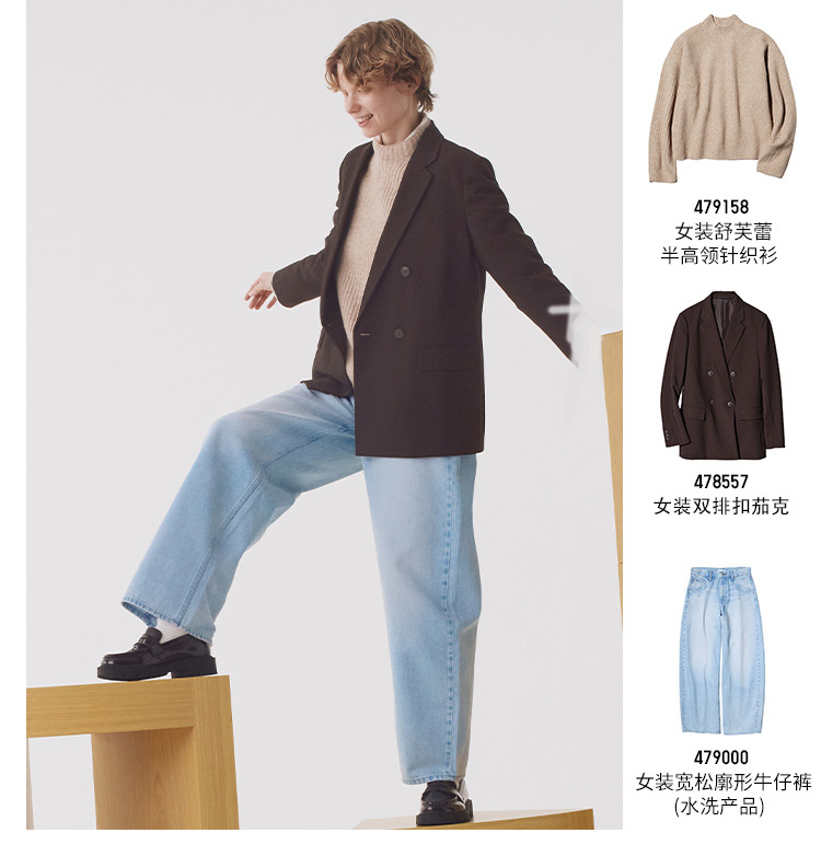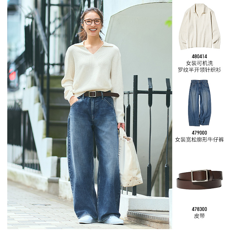 UNIQLO Women Mens Loose Profile Denim/Scimitar Sickle Pants 25 Fall and winter New arrival 479000