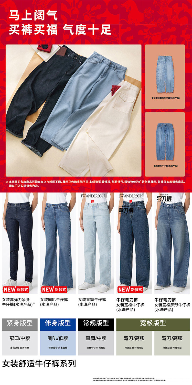 Regular Style, Priority Delivery Via Sf Express, Uniqlo Women's and Men's Loose-Fit Jeans/Curved Jeans 482280