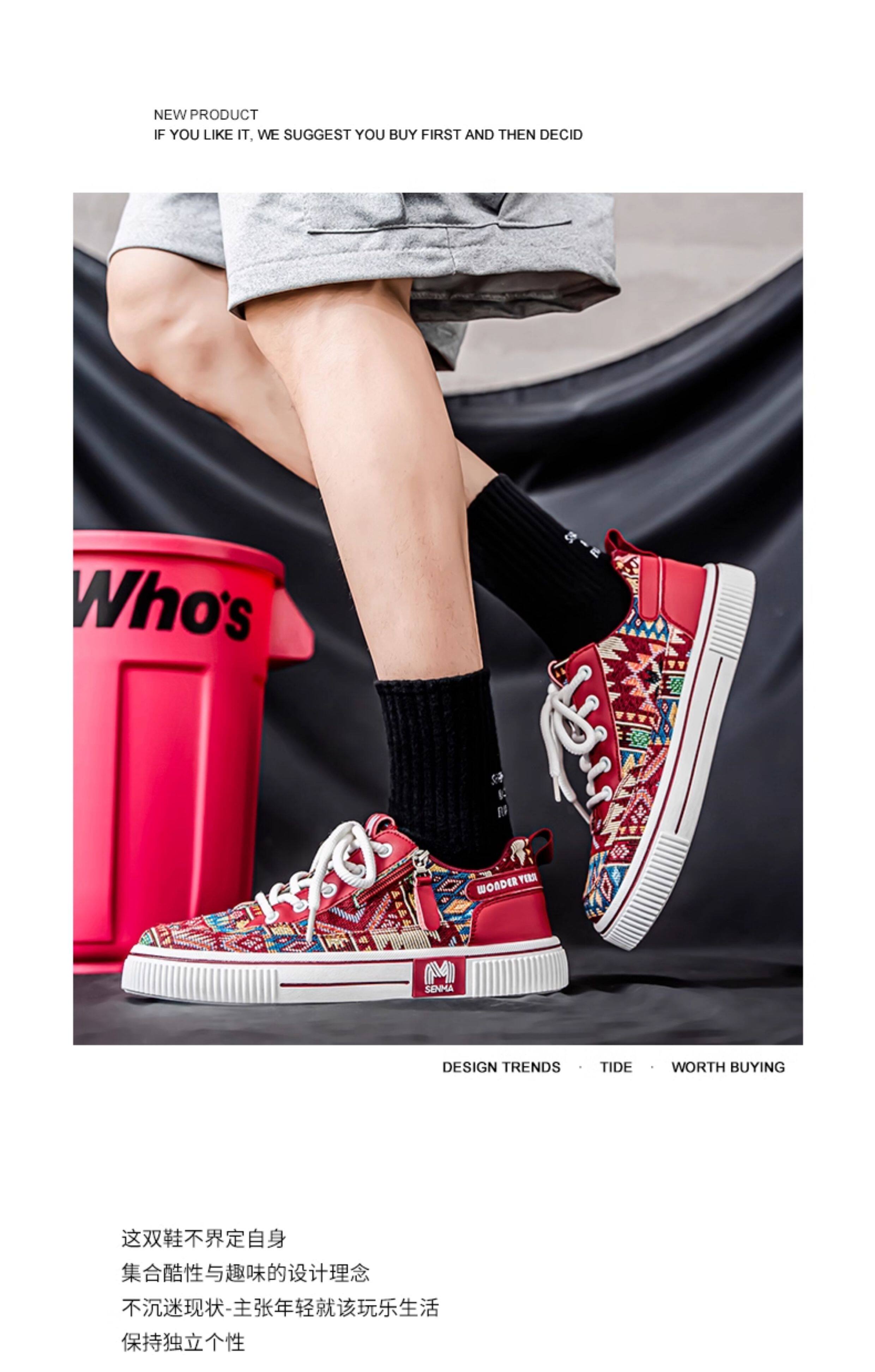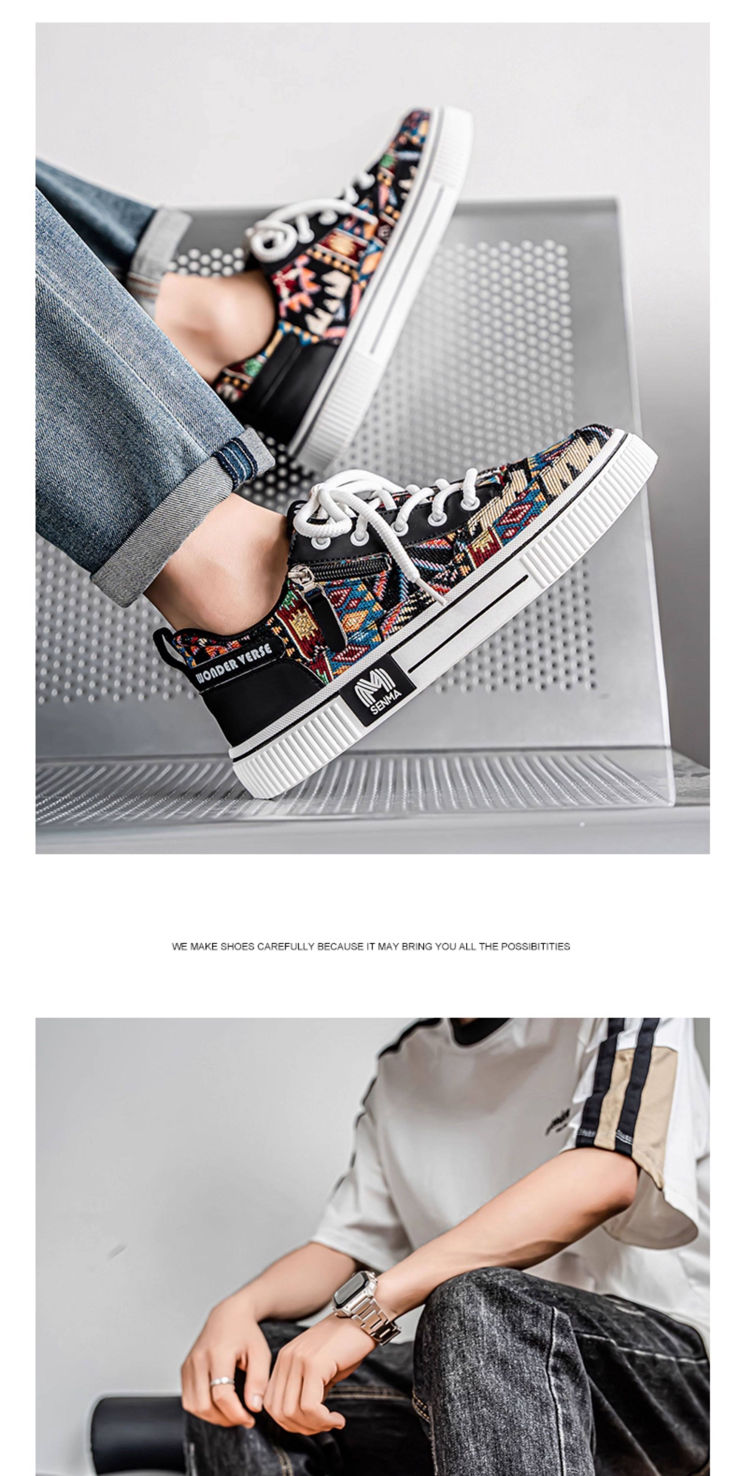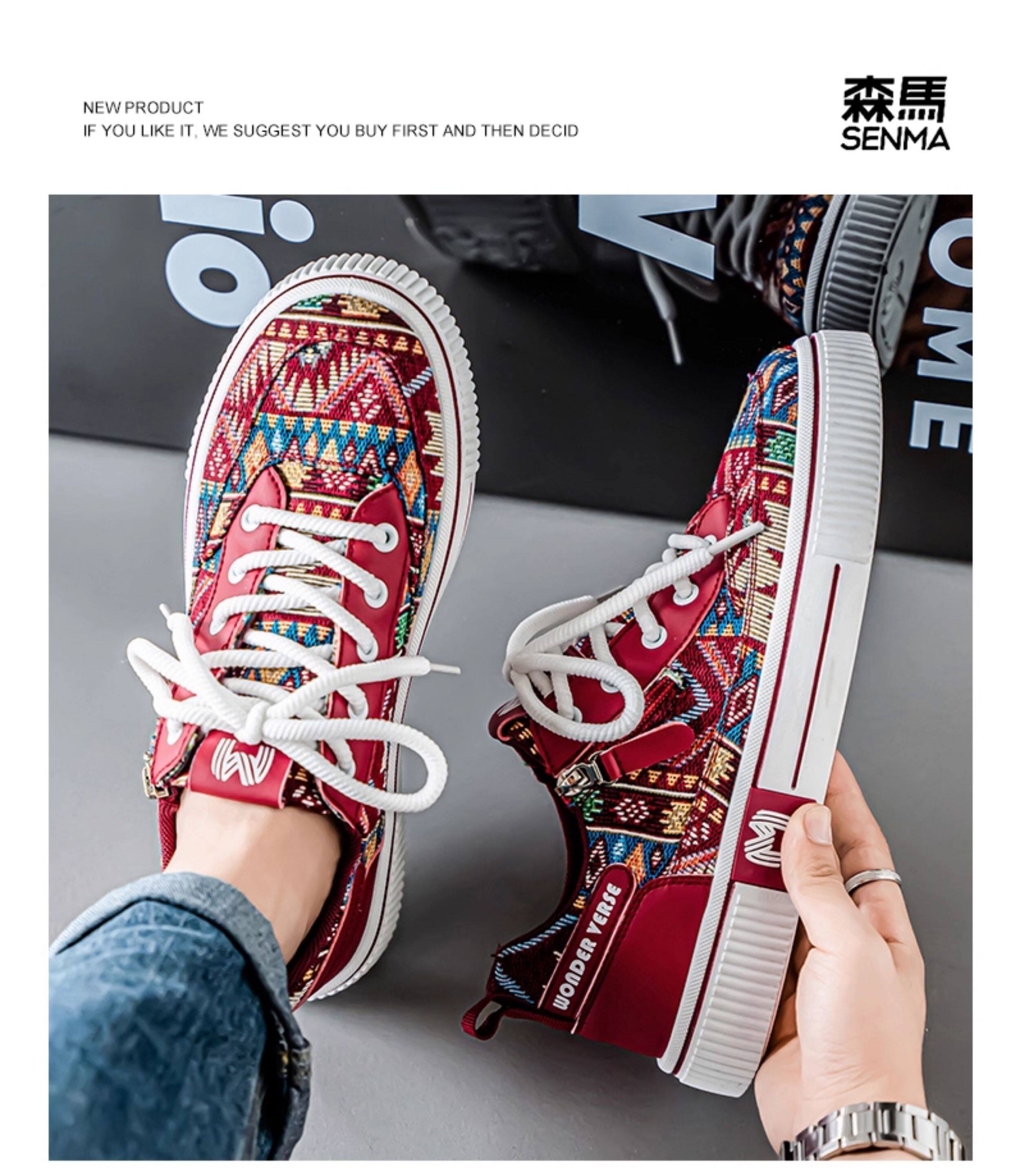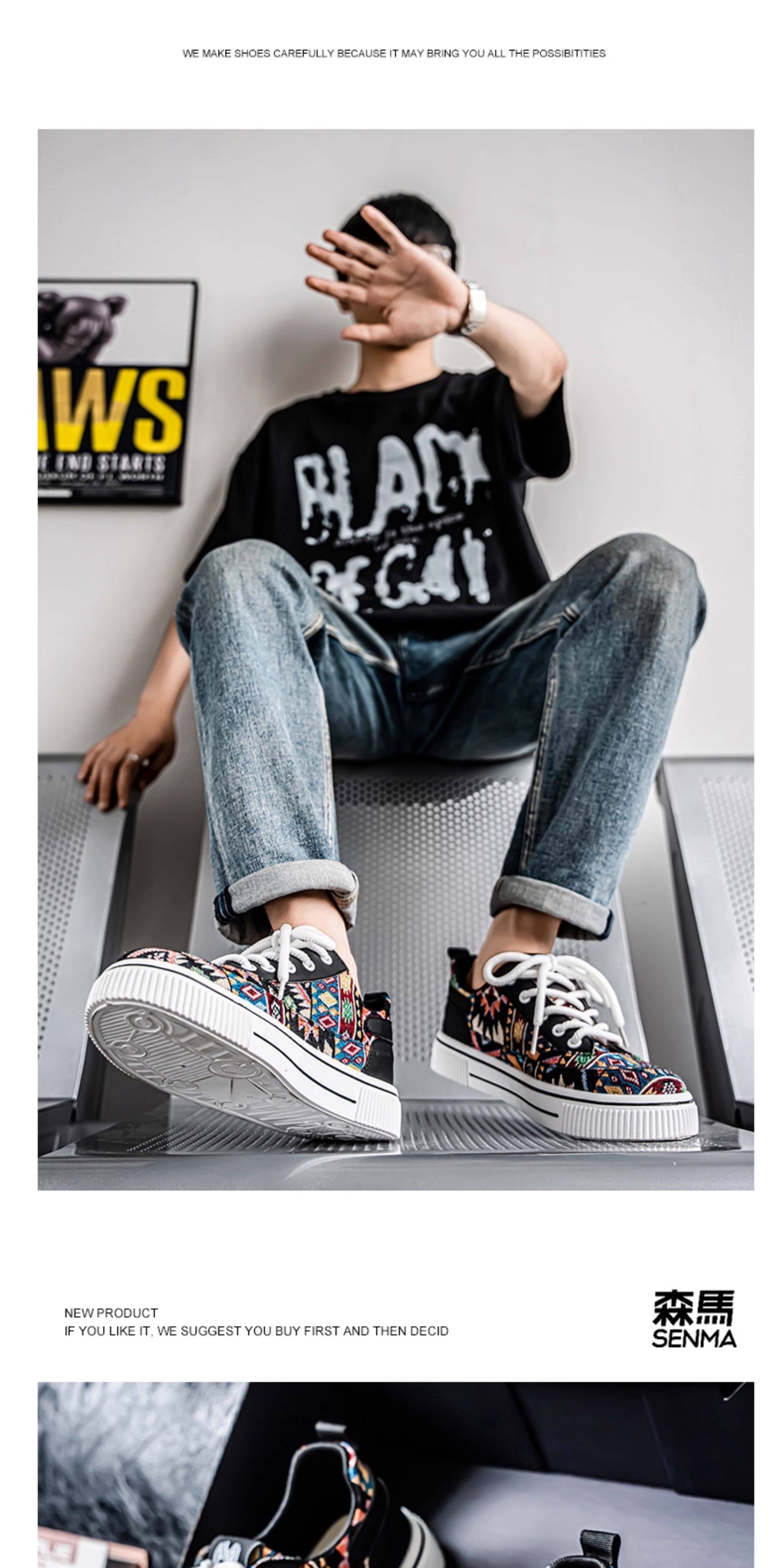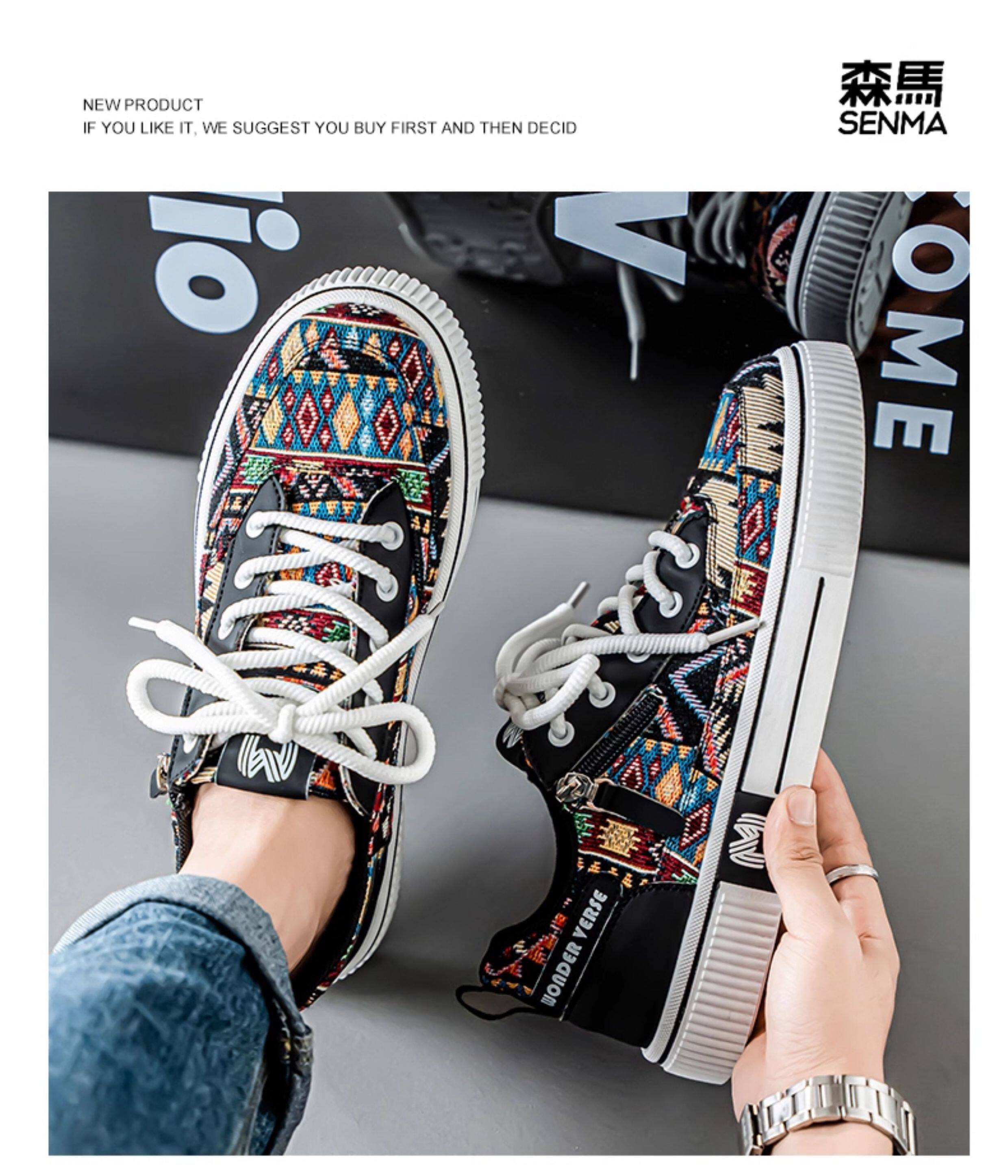 Semir Canvas Men's Shoes, Winter Breathable Niche Original Design Casual Sneakers, Sports Thick-Soled Height-Increasing Printed Cloth Shoes