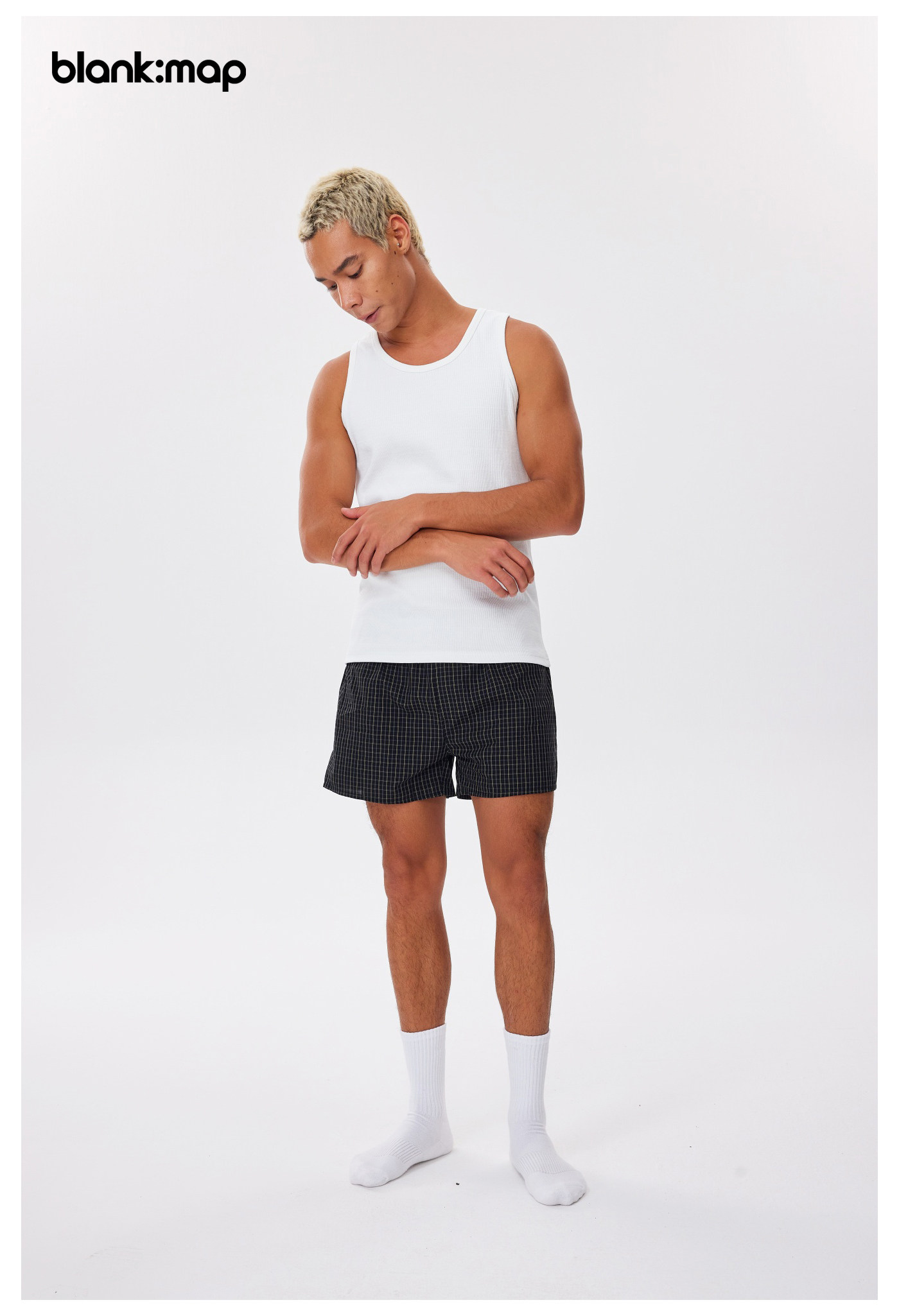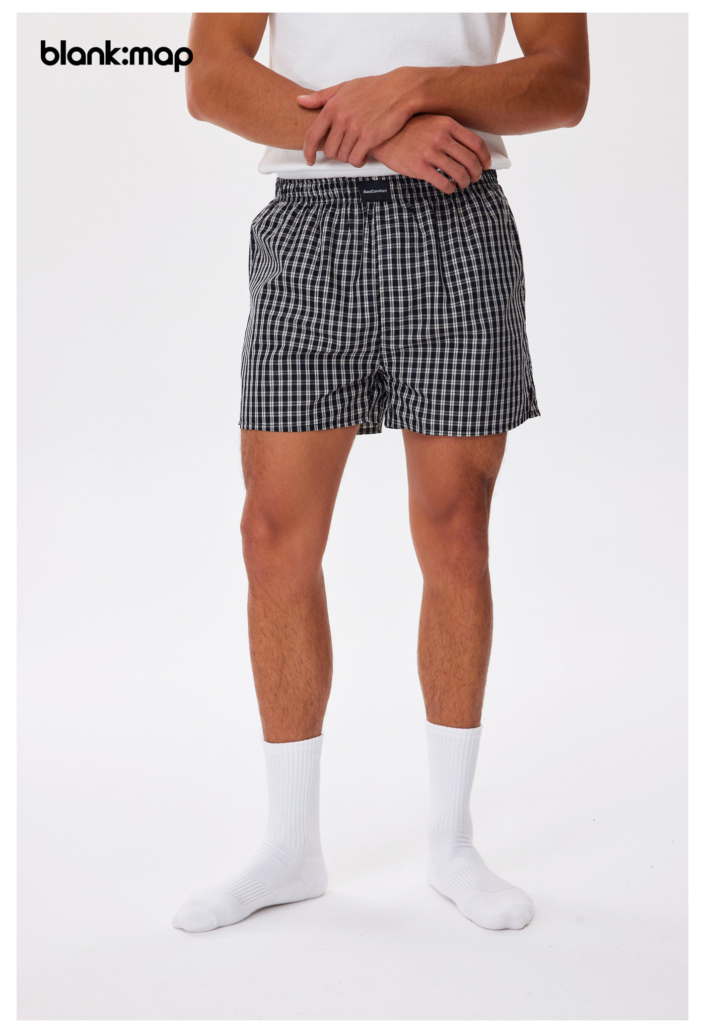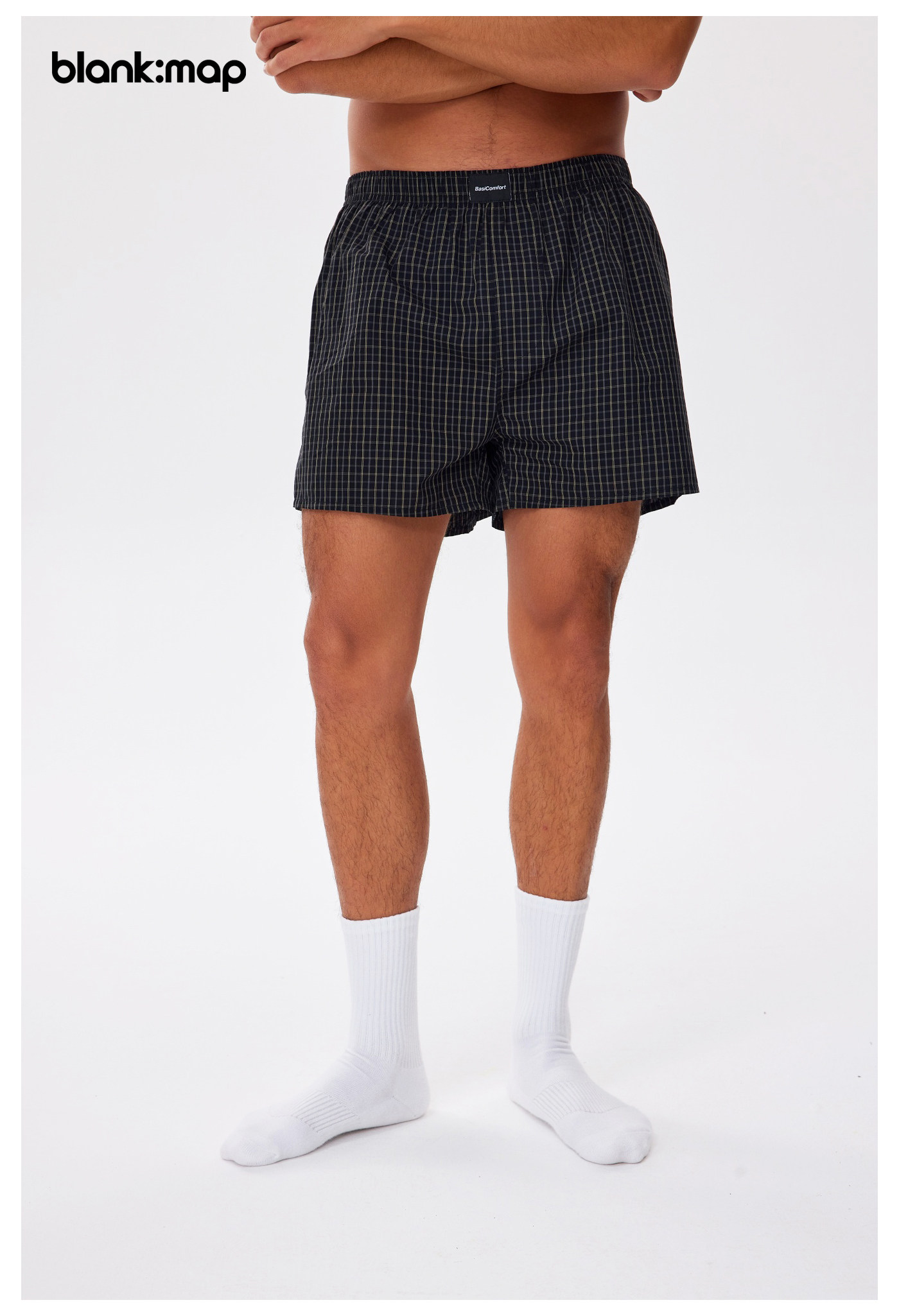 Blank Map Plaid Solid Color Pure Cotton Loose Home Casual Boxer Shorts for Outdoor Wear Beach Shorts for Men and Women