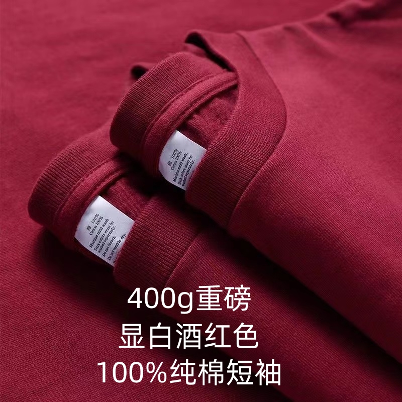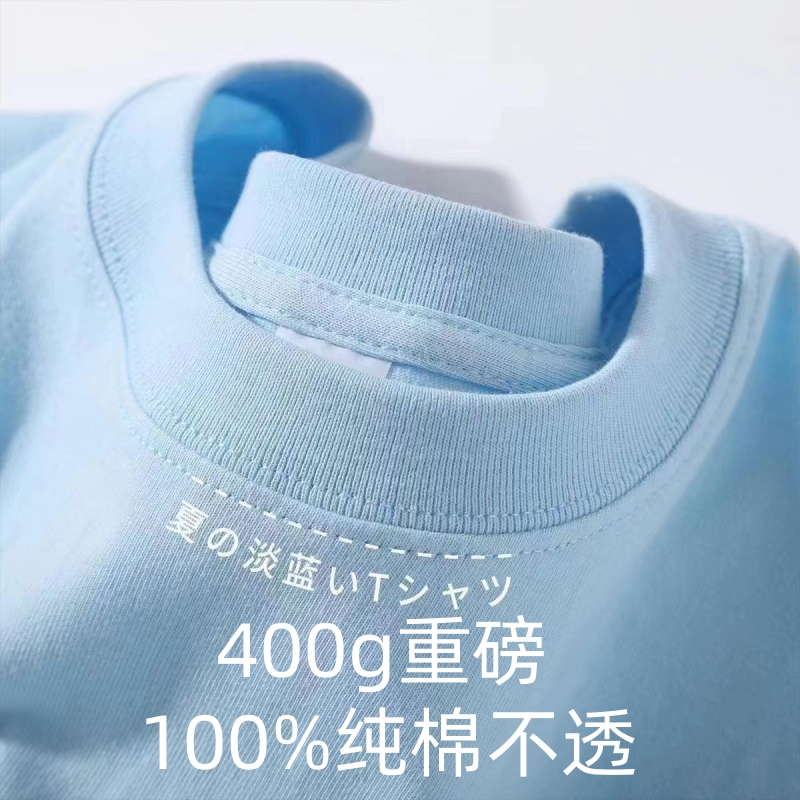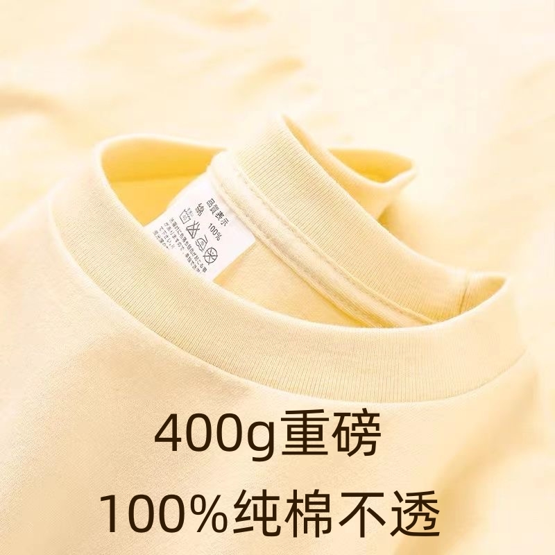 Taro Purple 400g Heavyweight Xinjiang Pure Cotton Short-Sleeve T-Shirt for Men and Women, Loose Solid Color Crew Neck Summer Couple Half-Sleeve Trendy