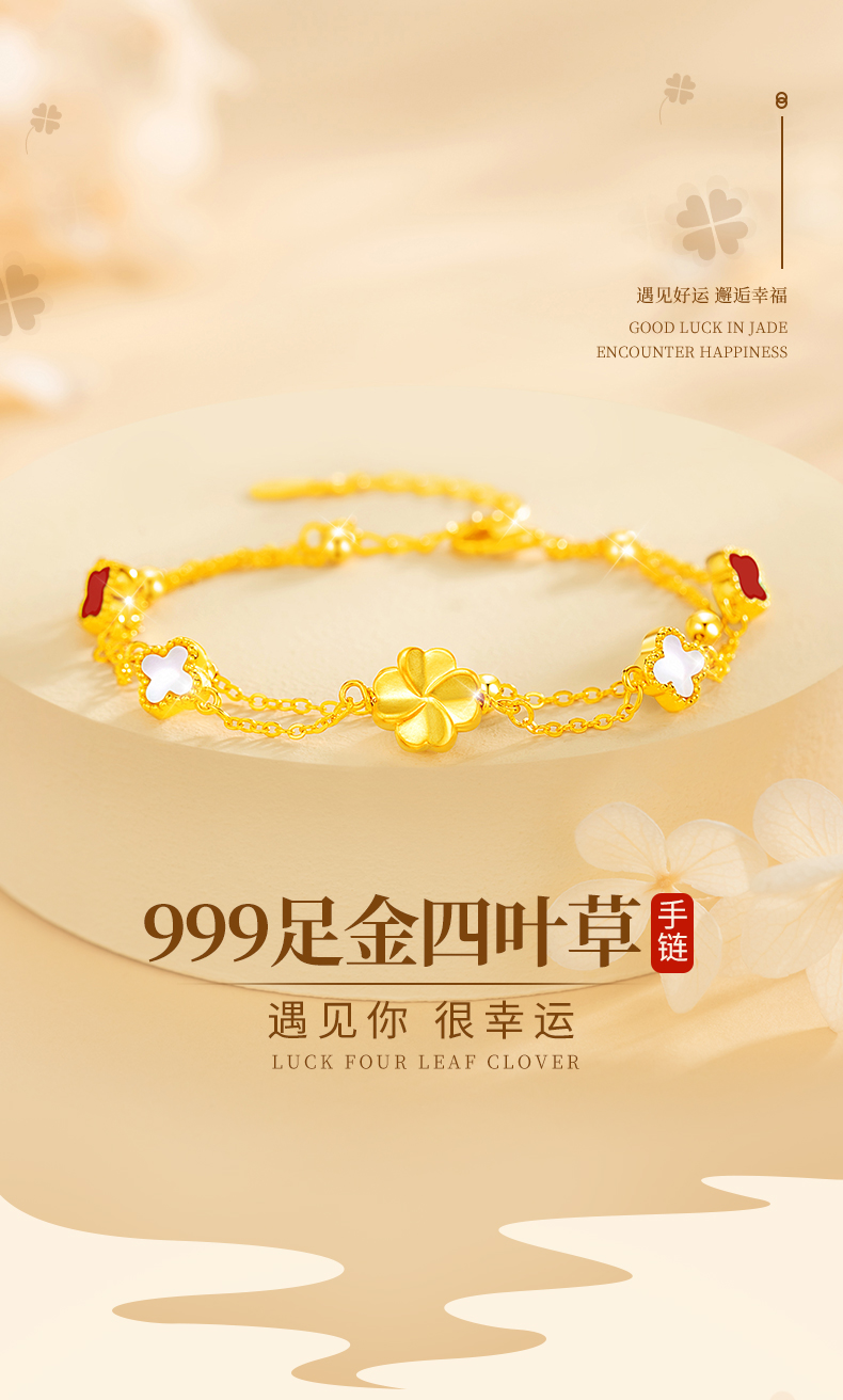 Authentic Gold 999 Pure Gold Four-Leaf Clover Bracelet for Women, 2025 New Model, Light Luxury High-End Birthday Gift for Girlfriend