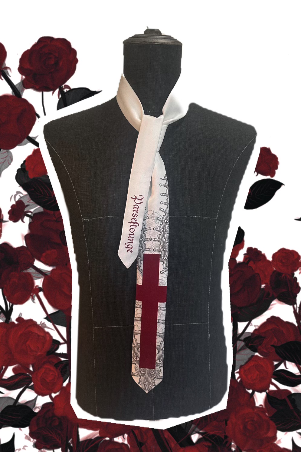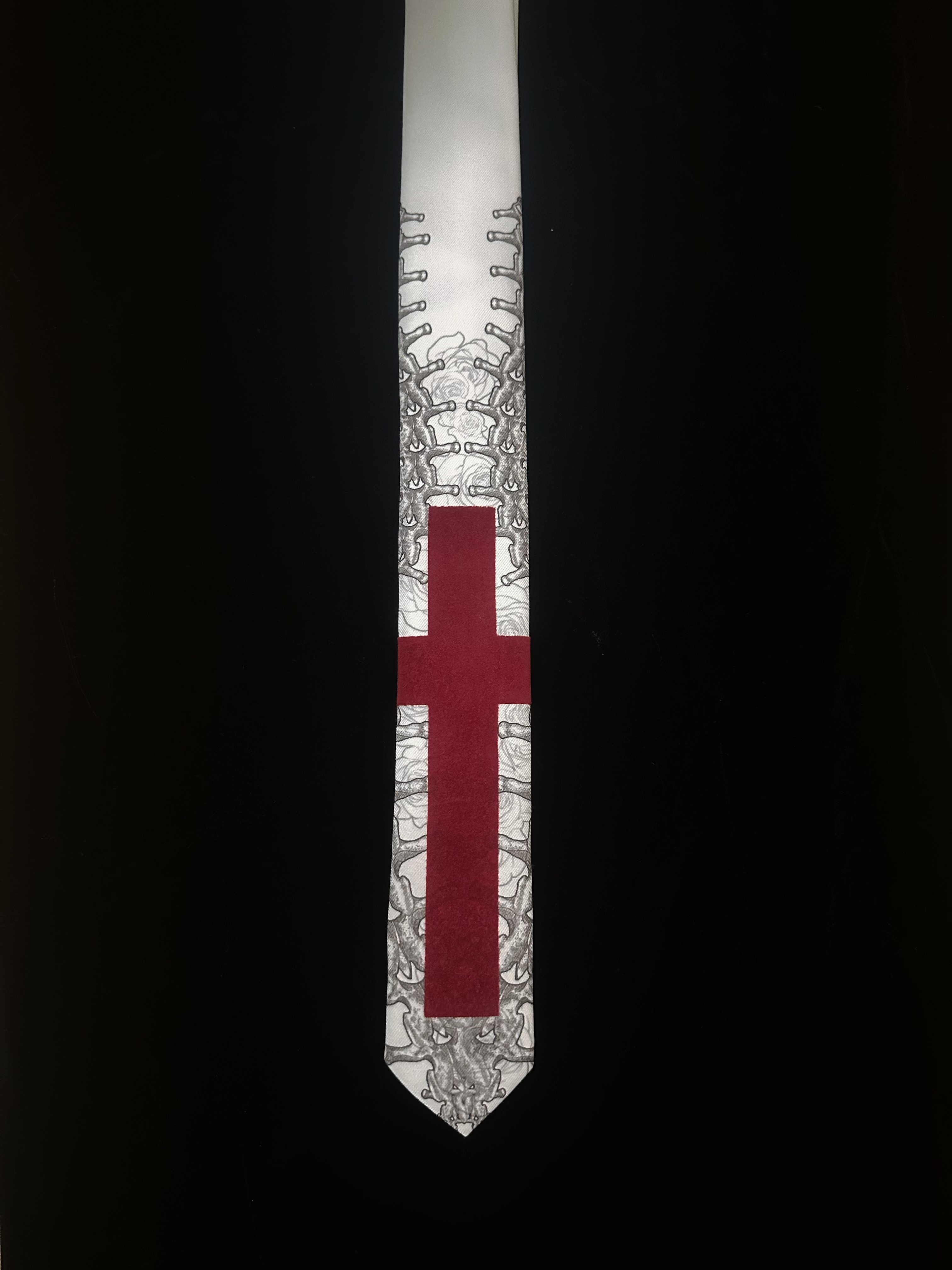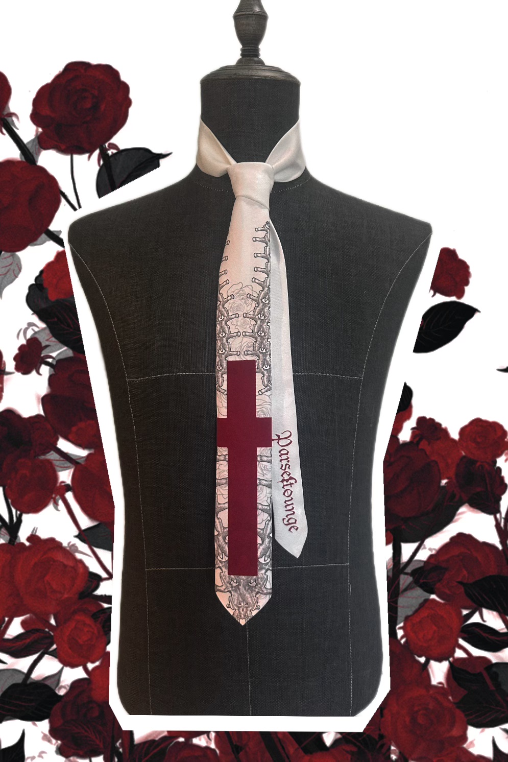 Parseltounge Snake Language Holy Thorn Red Seal Original Bone Flower Cross Print Flocking Handmade Tie Accessory