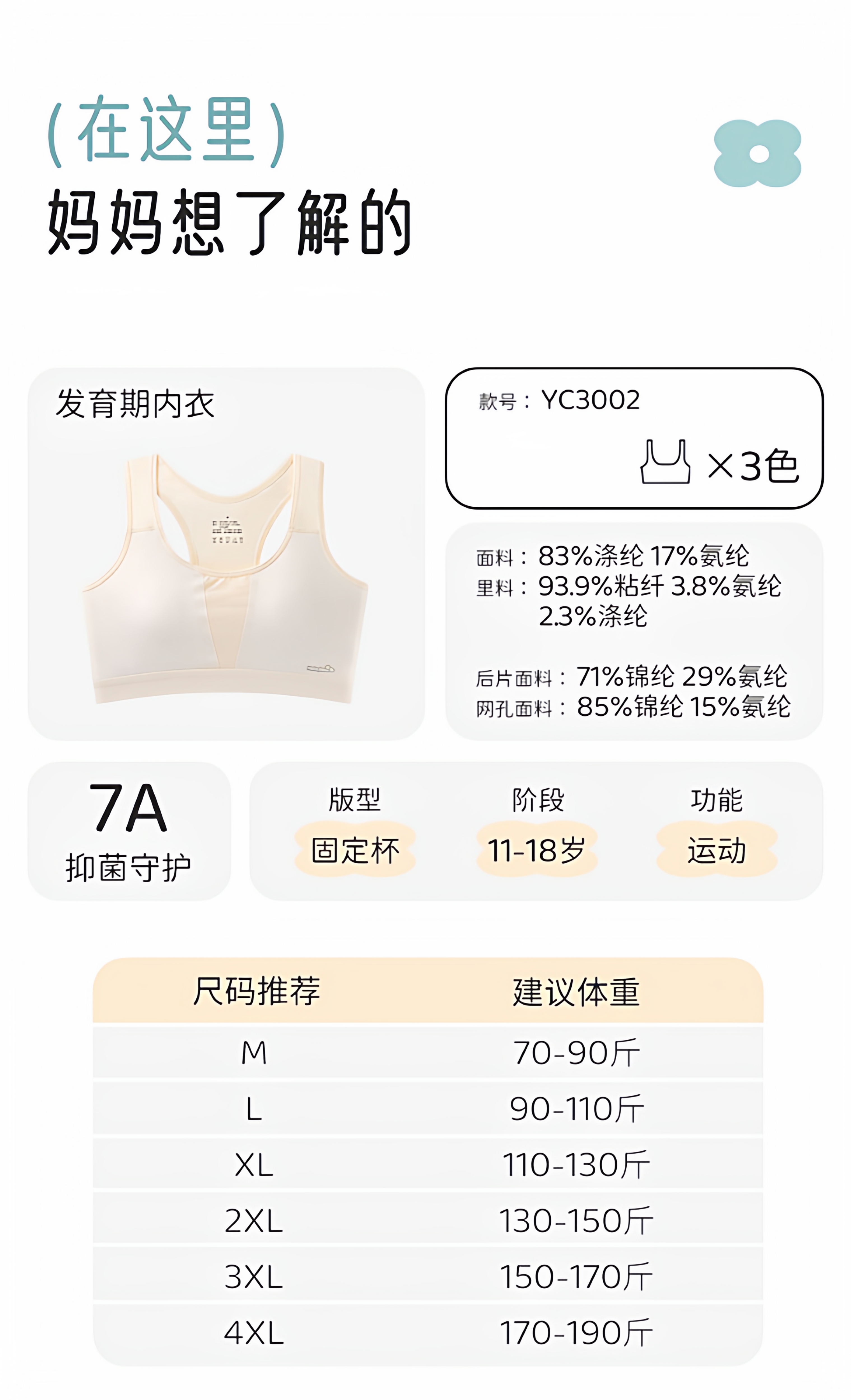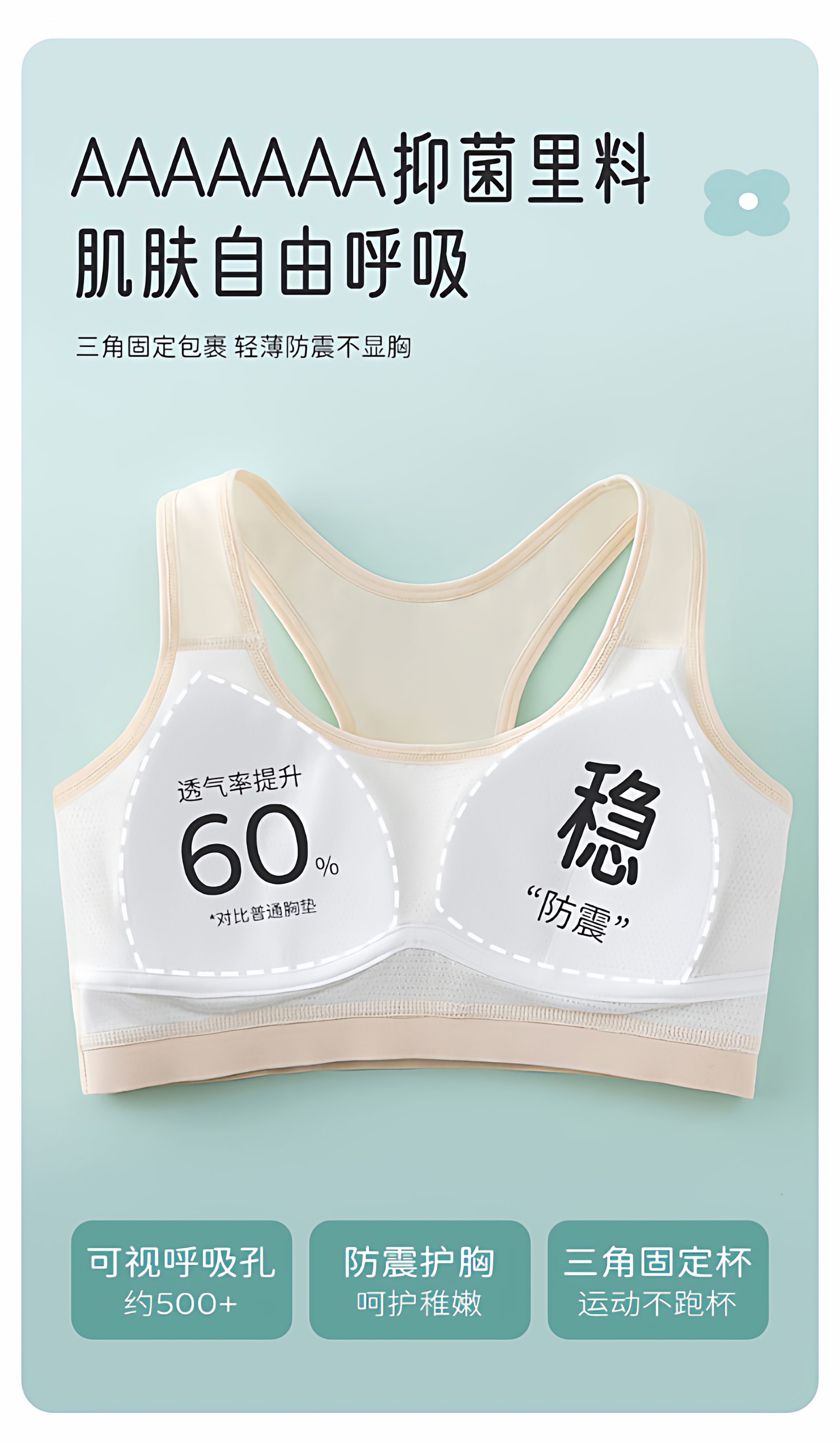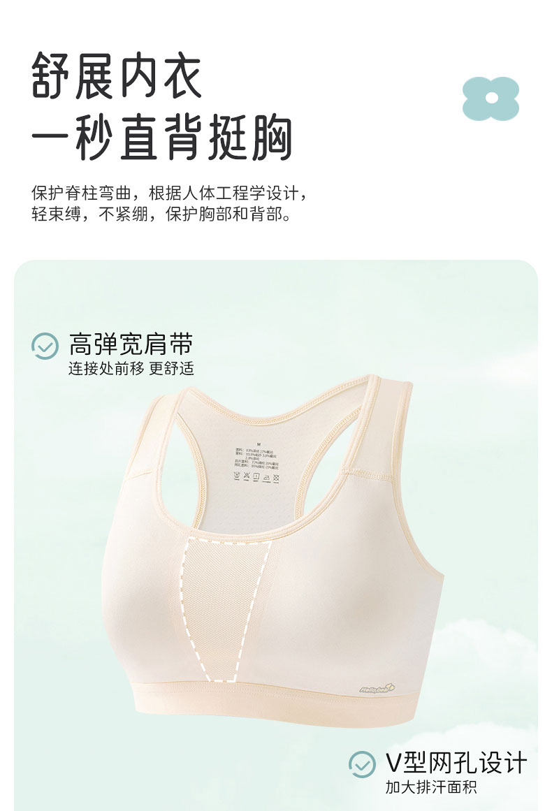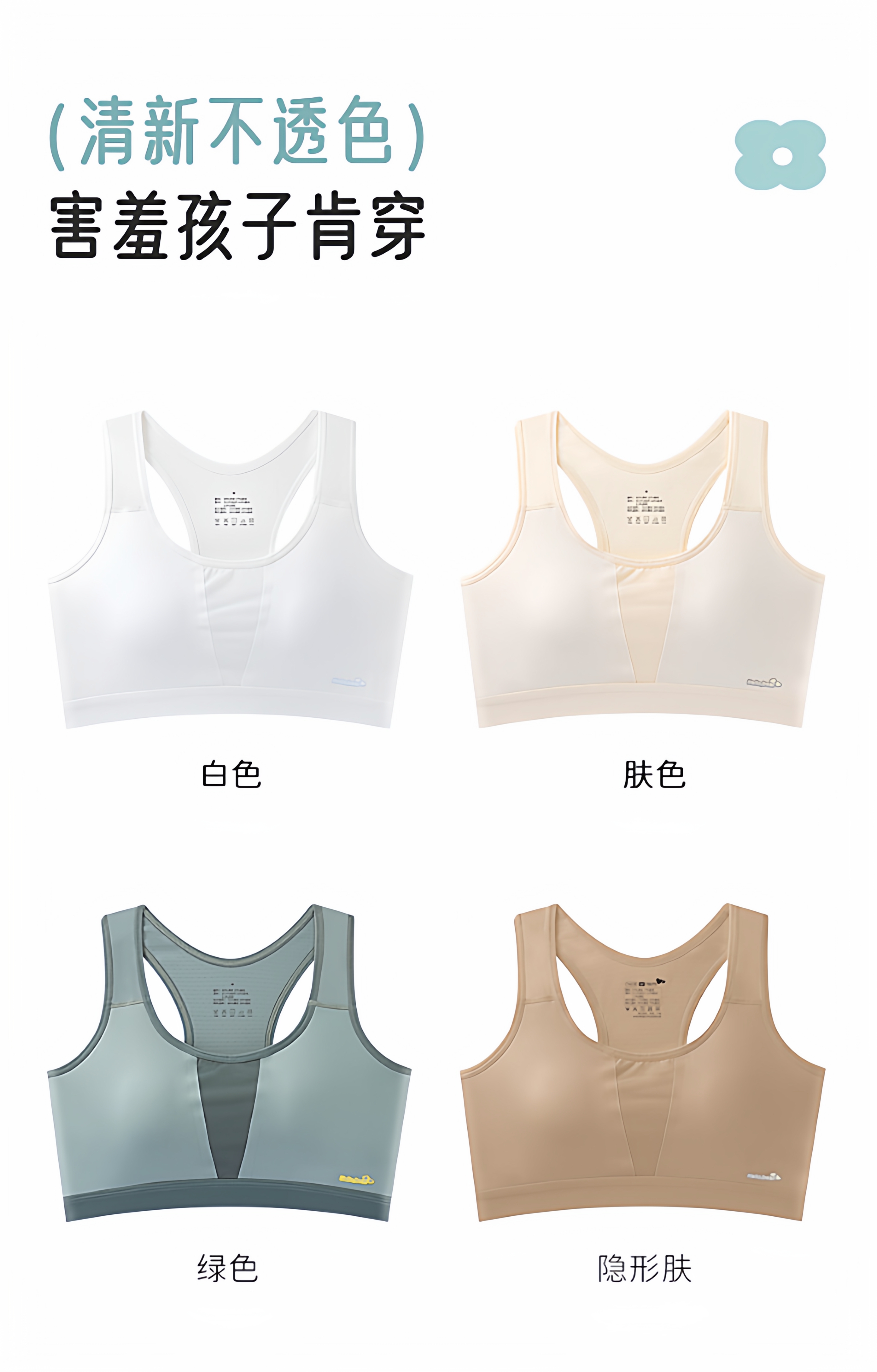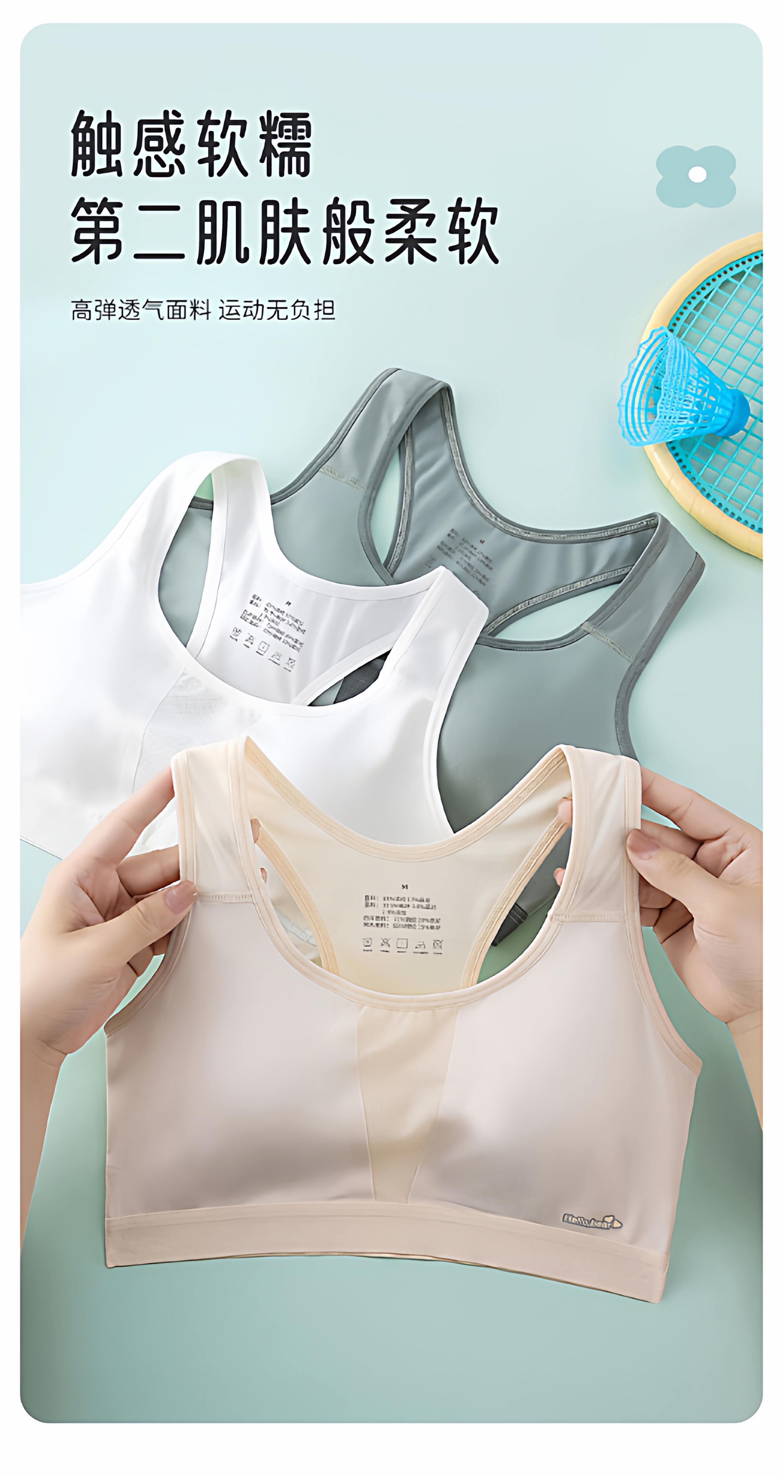 Girls' Bra for Development Period, Student Sports Bra, Girls' Shockproof Breathable Vest for Older Children, Middle School and High School Students, Puberty