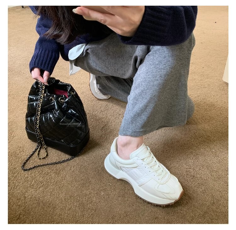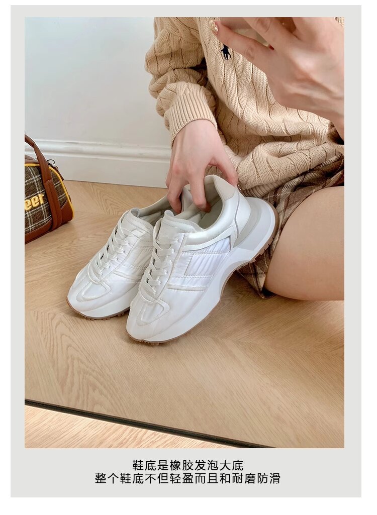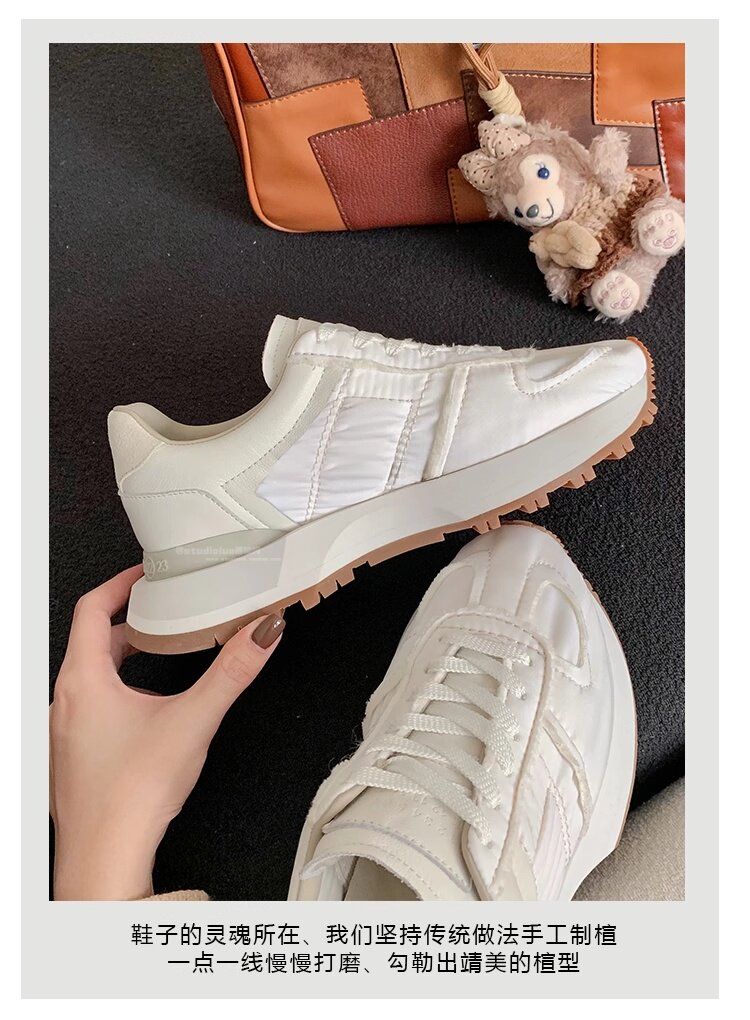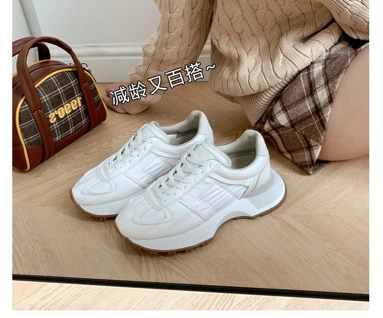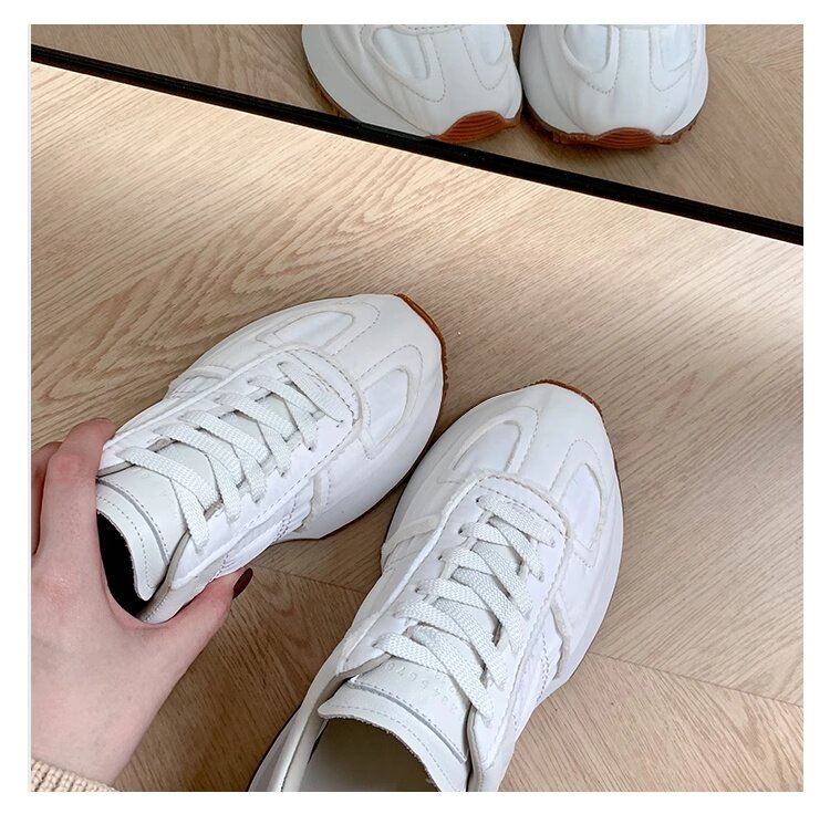 Hong Kong Genuine Leather Round-Toe Thick-Soled Lace-Up German Training Shoes for Women 2026 Spring and Autumn New Casual White Sneakers Sports Shoes