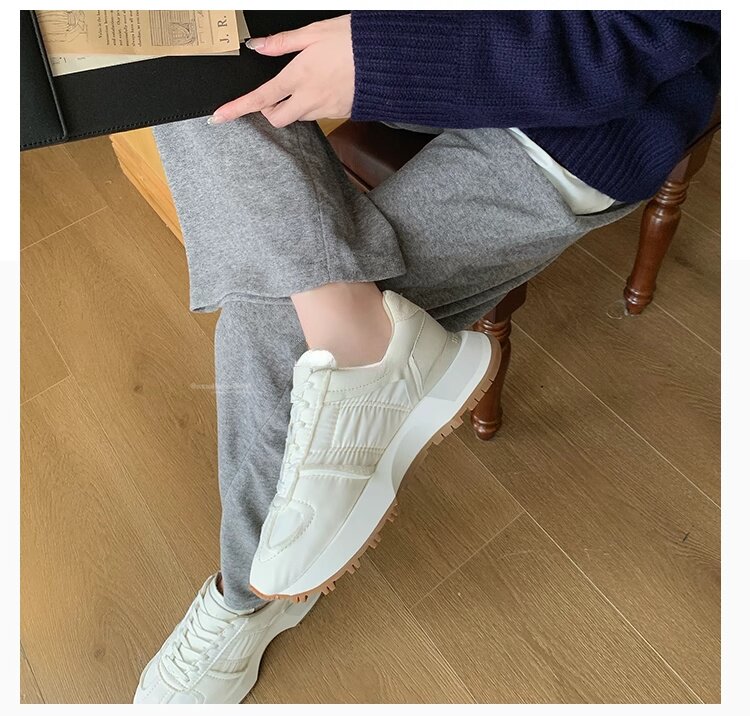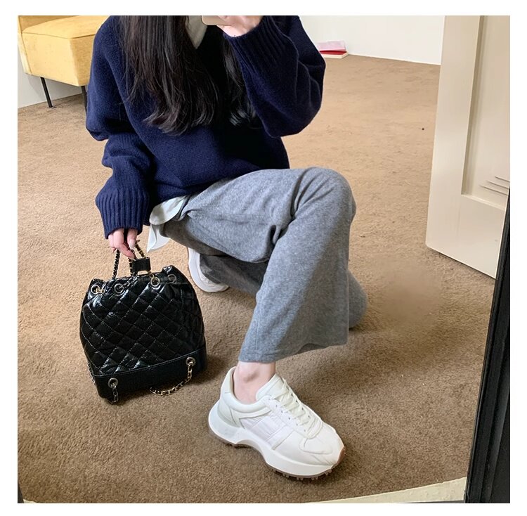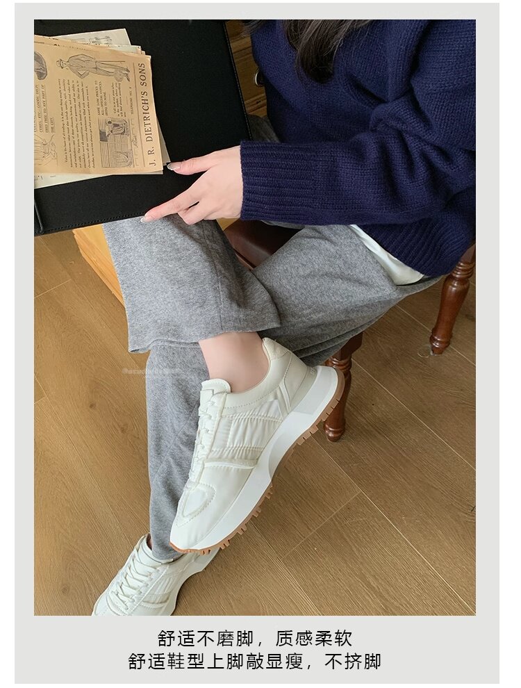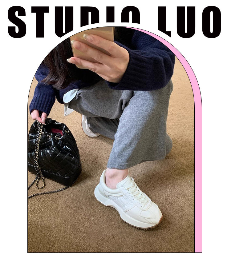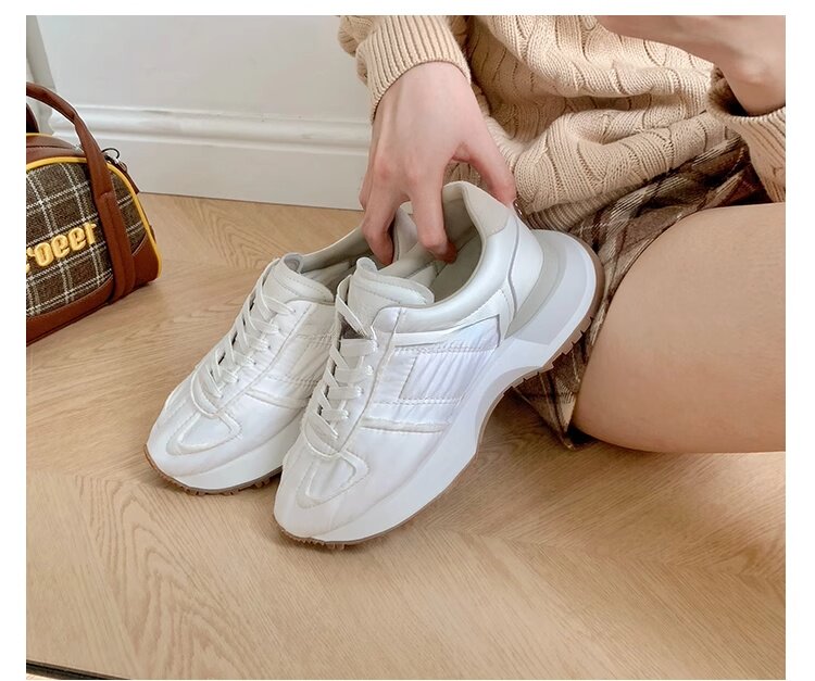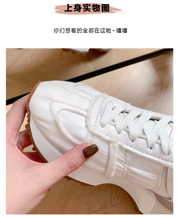 Hong Kong Genuine Leather Round-Toe Thick-Soled Lace-Up German Training Shoes for Women 2026 Spring and Autumn New Casual White Sneakers Sports Shoes