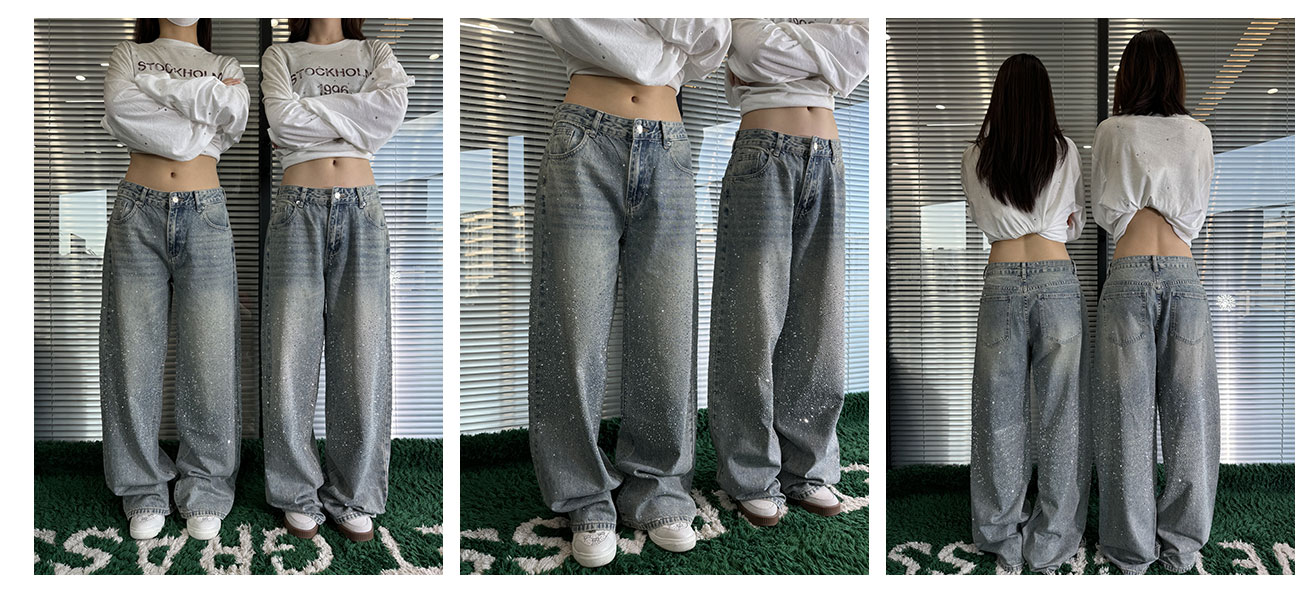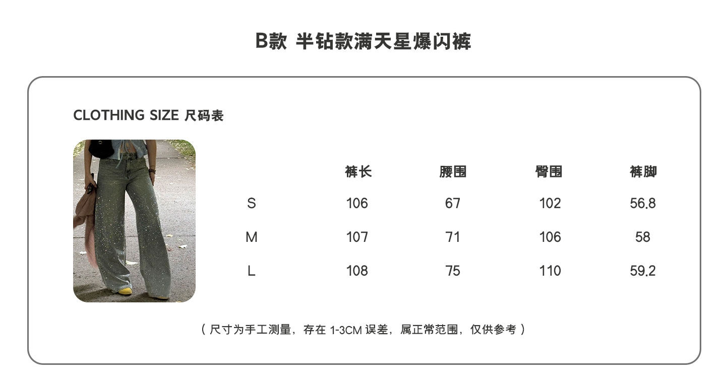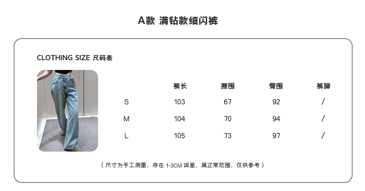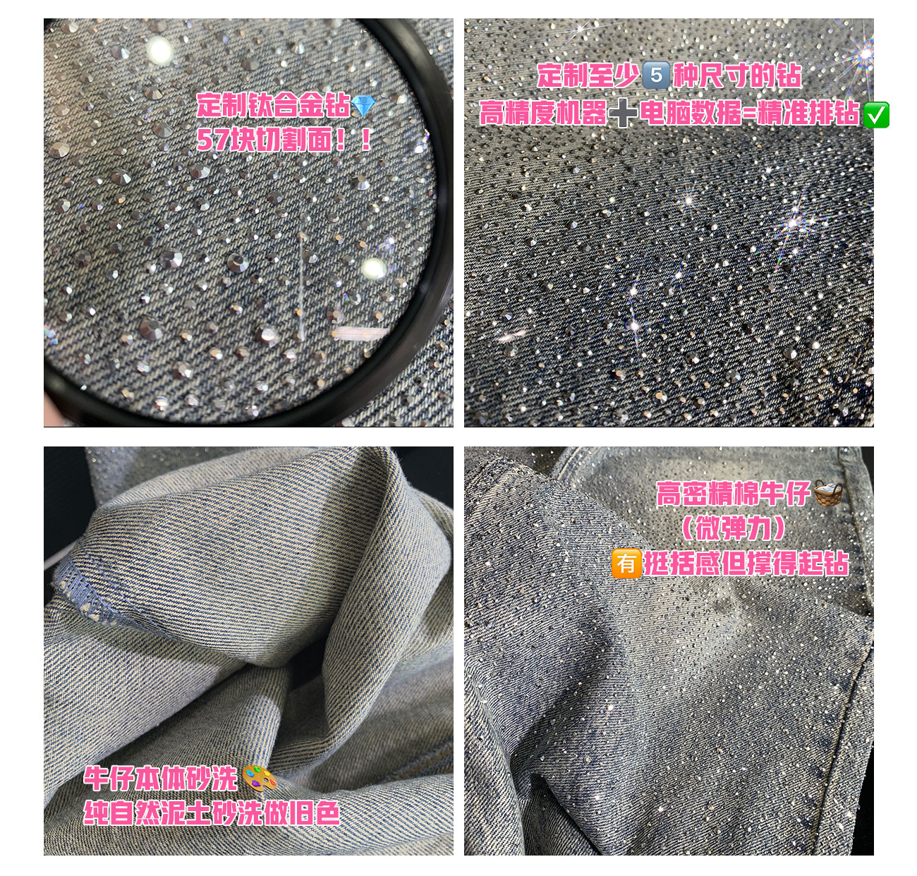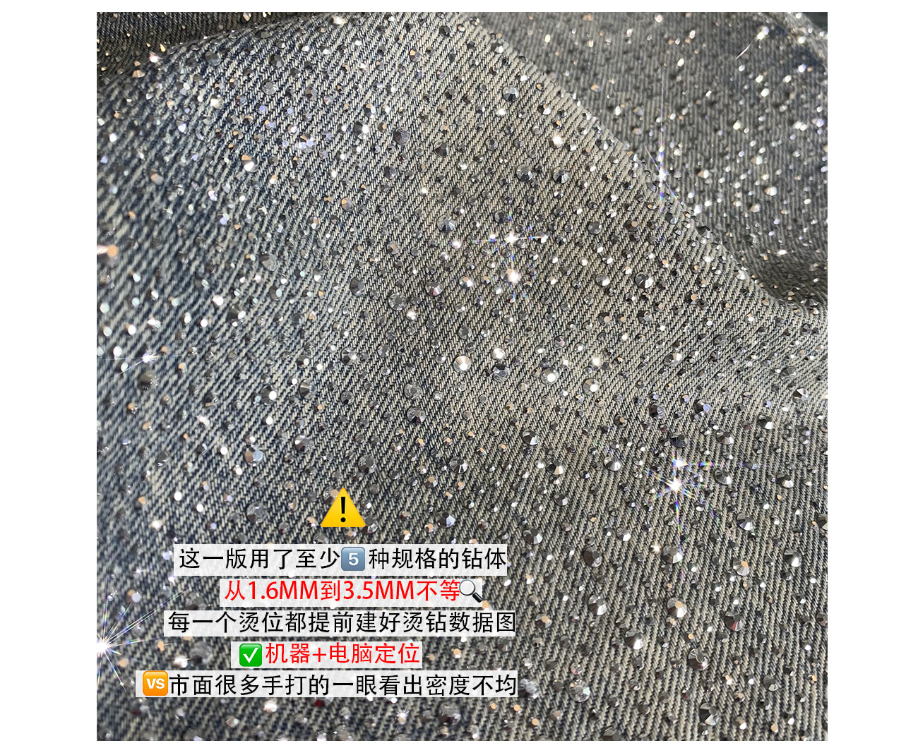 (传统钻约 18~24 面) 1条裤子就有30000+颗钻 全手工高温压烫