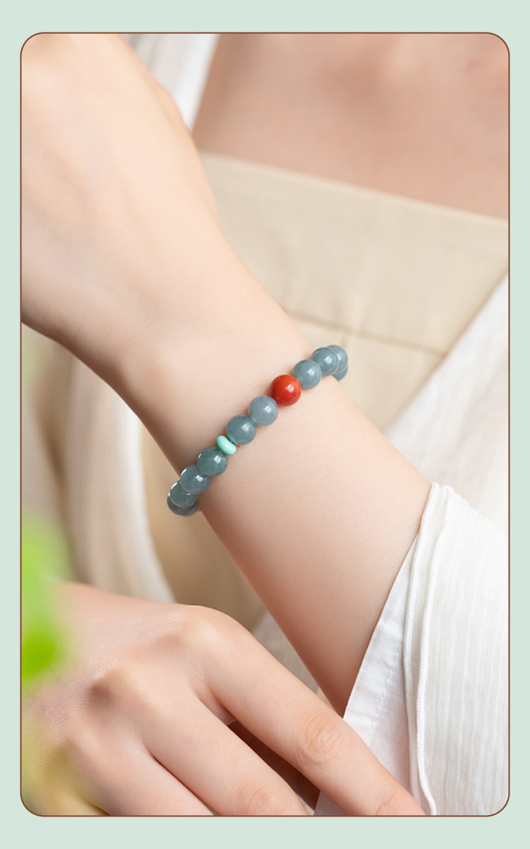 Jade Bracelet, Ice Type, Guatemalan Blue Water, Natural Southern Red Agate Bracelet for Women, 8mm Blue Jade Beads |