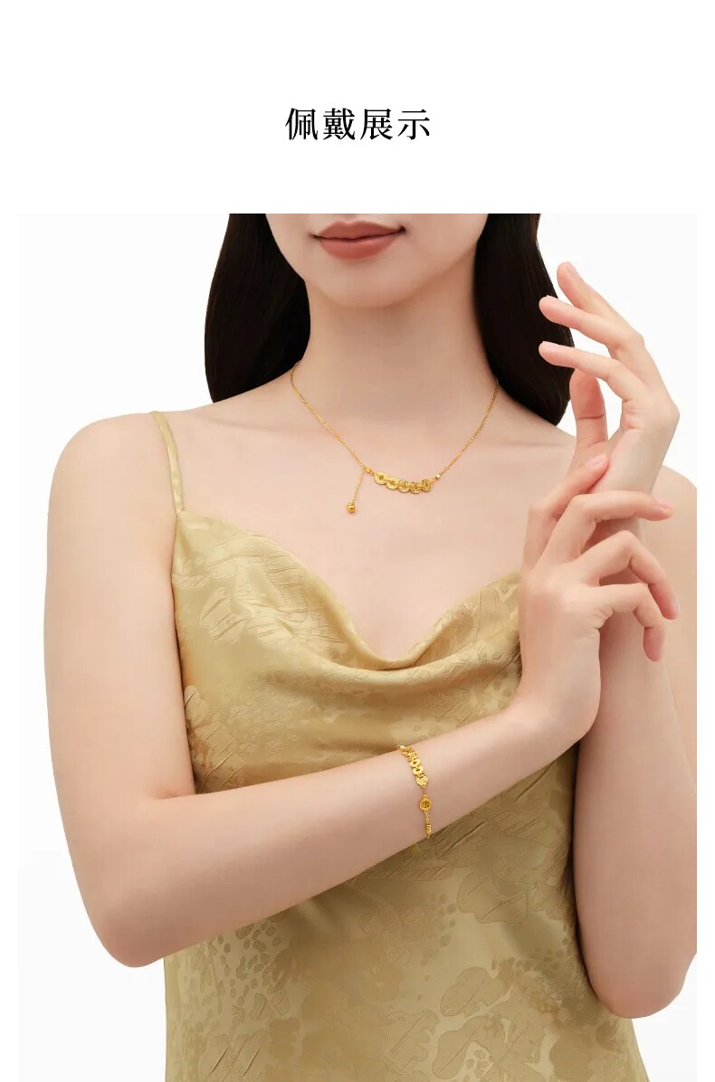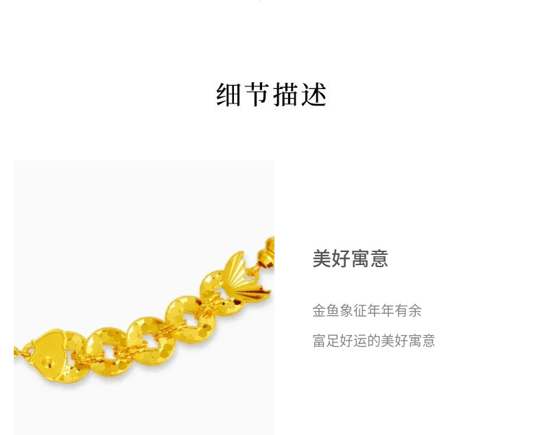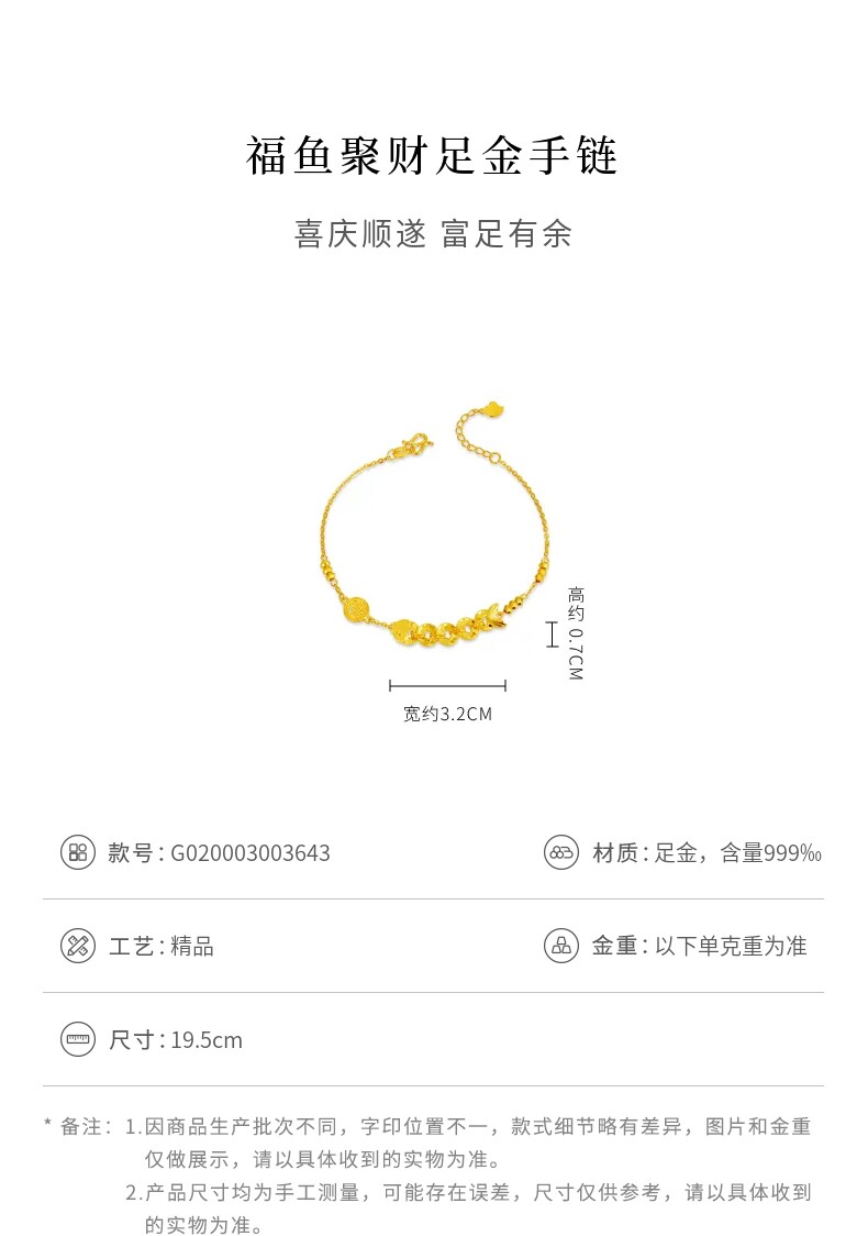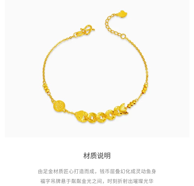 Lao Feng Xiang Year of the Fish Coin Small Yellow Fish Gold Bead Pure Gold Bracelet Crushed Ice New Year Gift