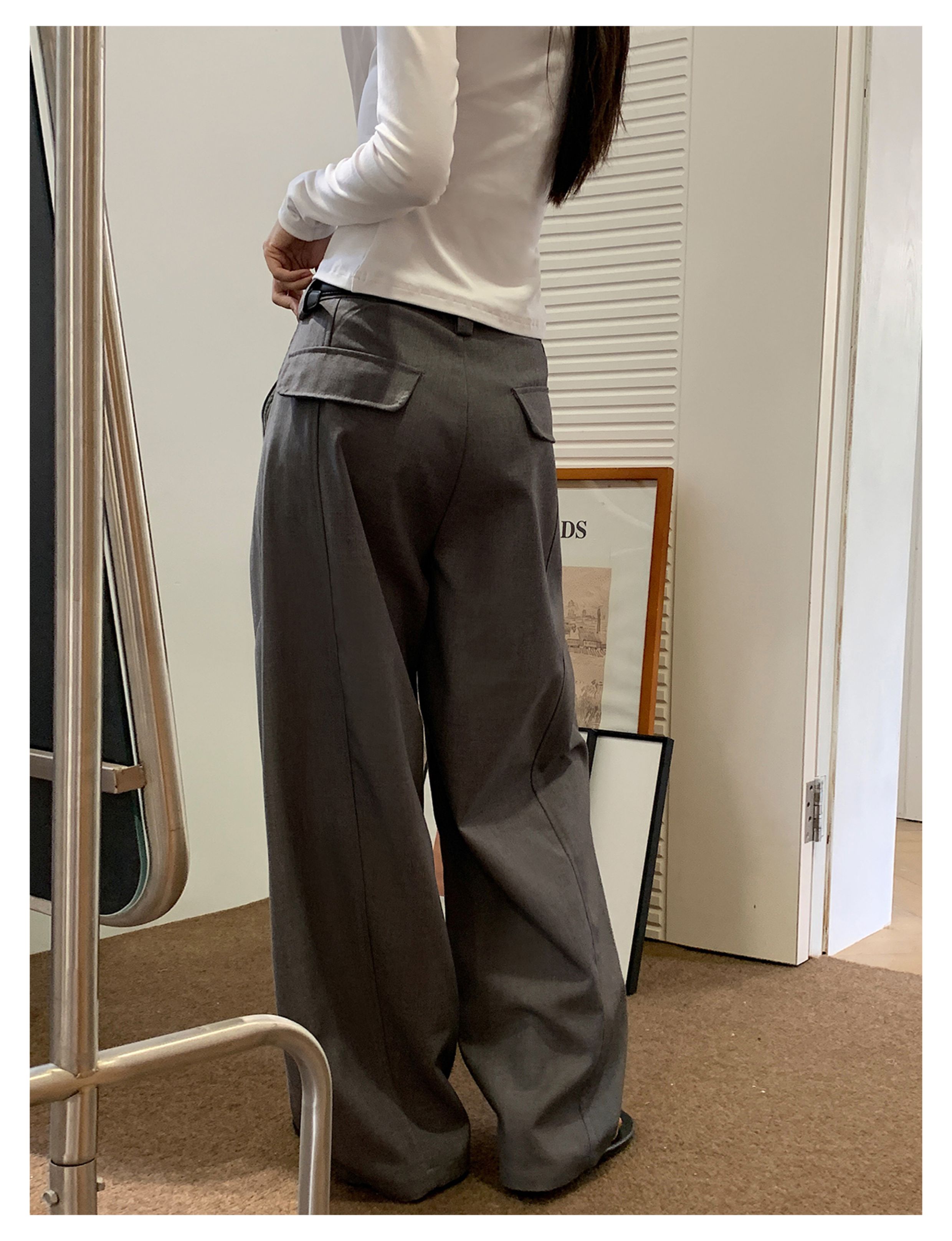 Vs What「 Continuousity」 Gray Straight-Leg Suit Pants Women's Easiest for Match Relaxed Loose Wide Leg Casual Pants