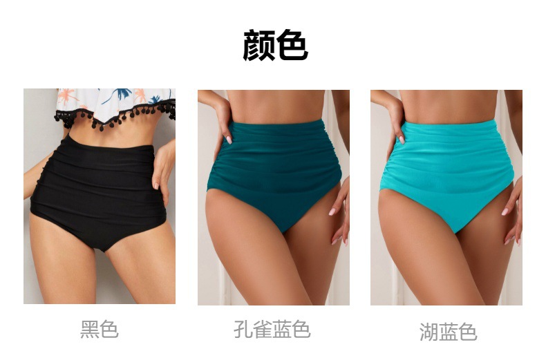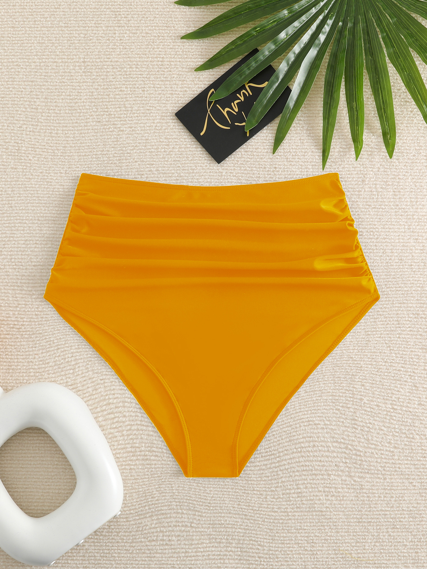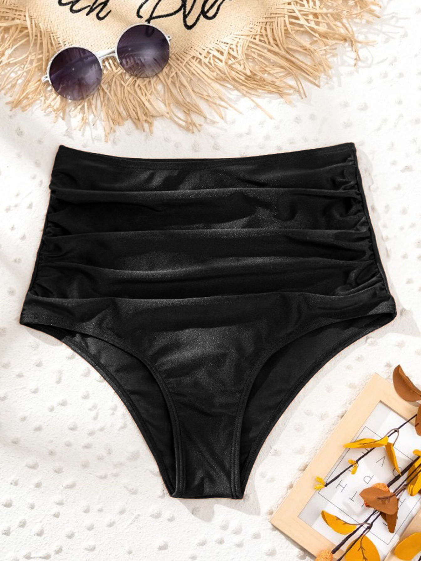 New Style Women's High-Waisted Tummy-Control Slimming Triangle Swim Briefs, Quick-Drying Bikini Versatile Pleated Swimwear
