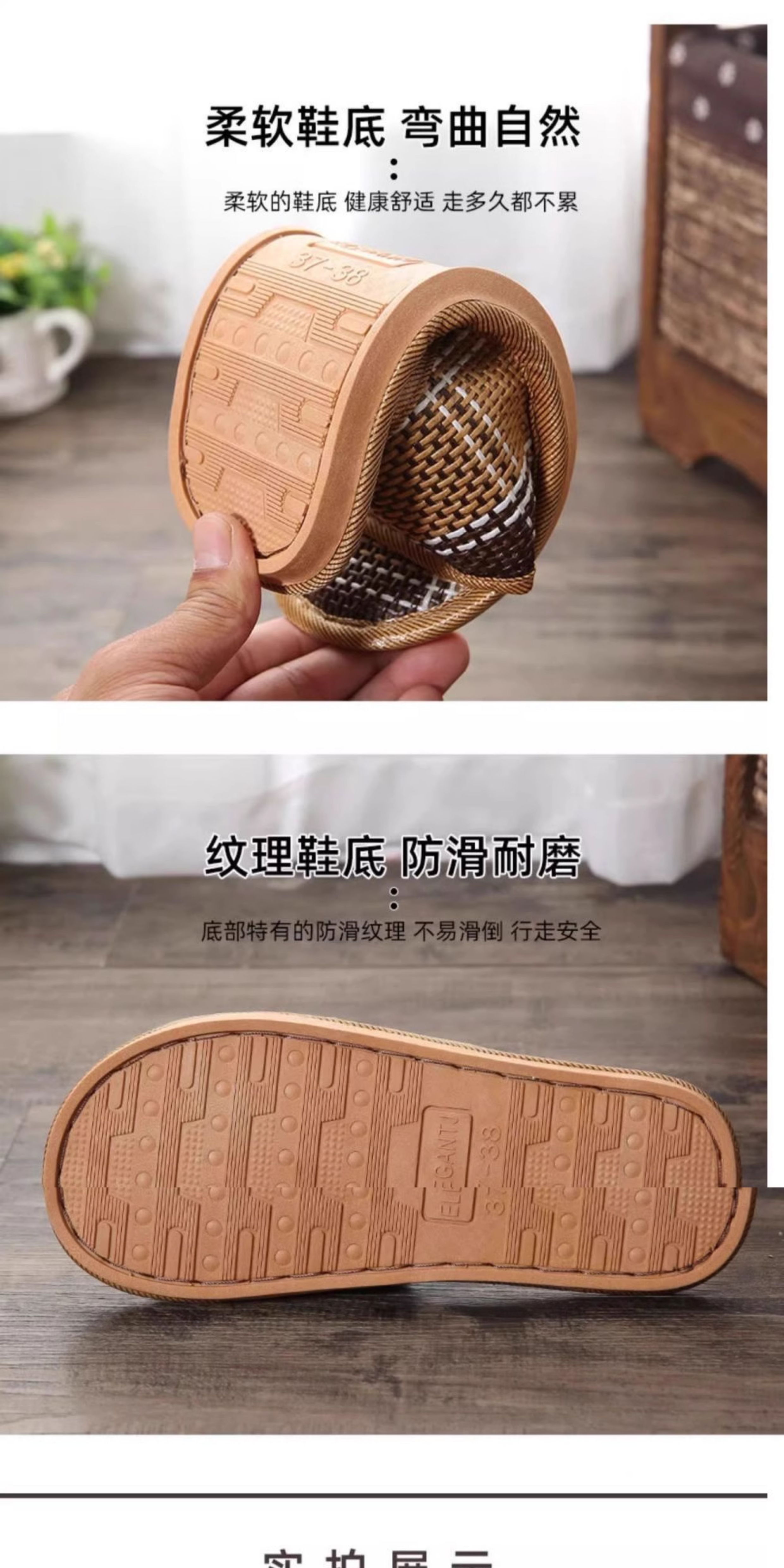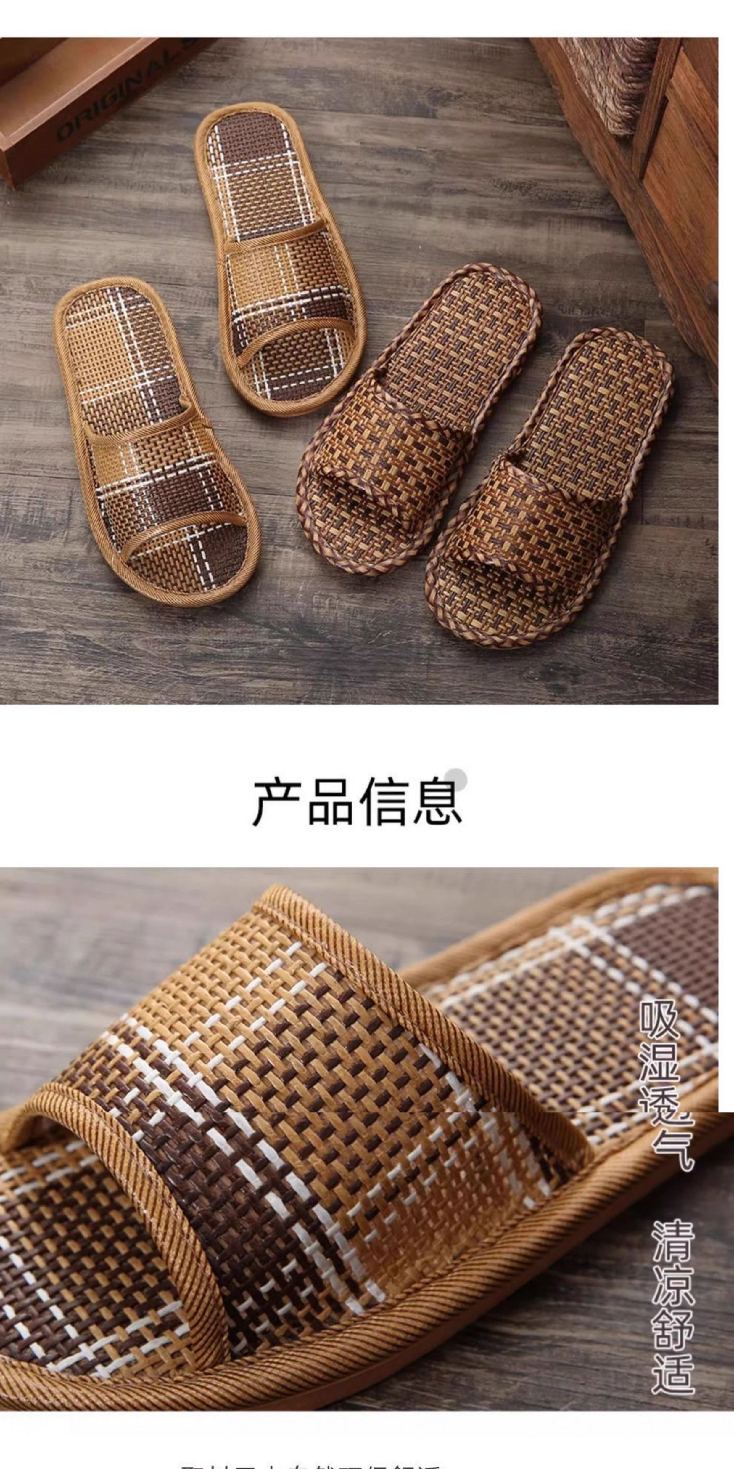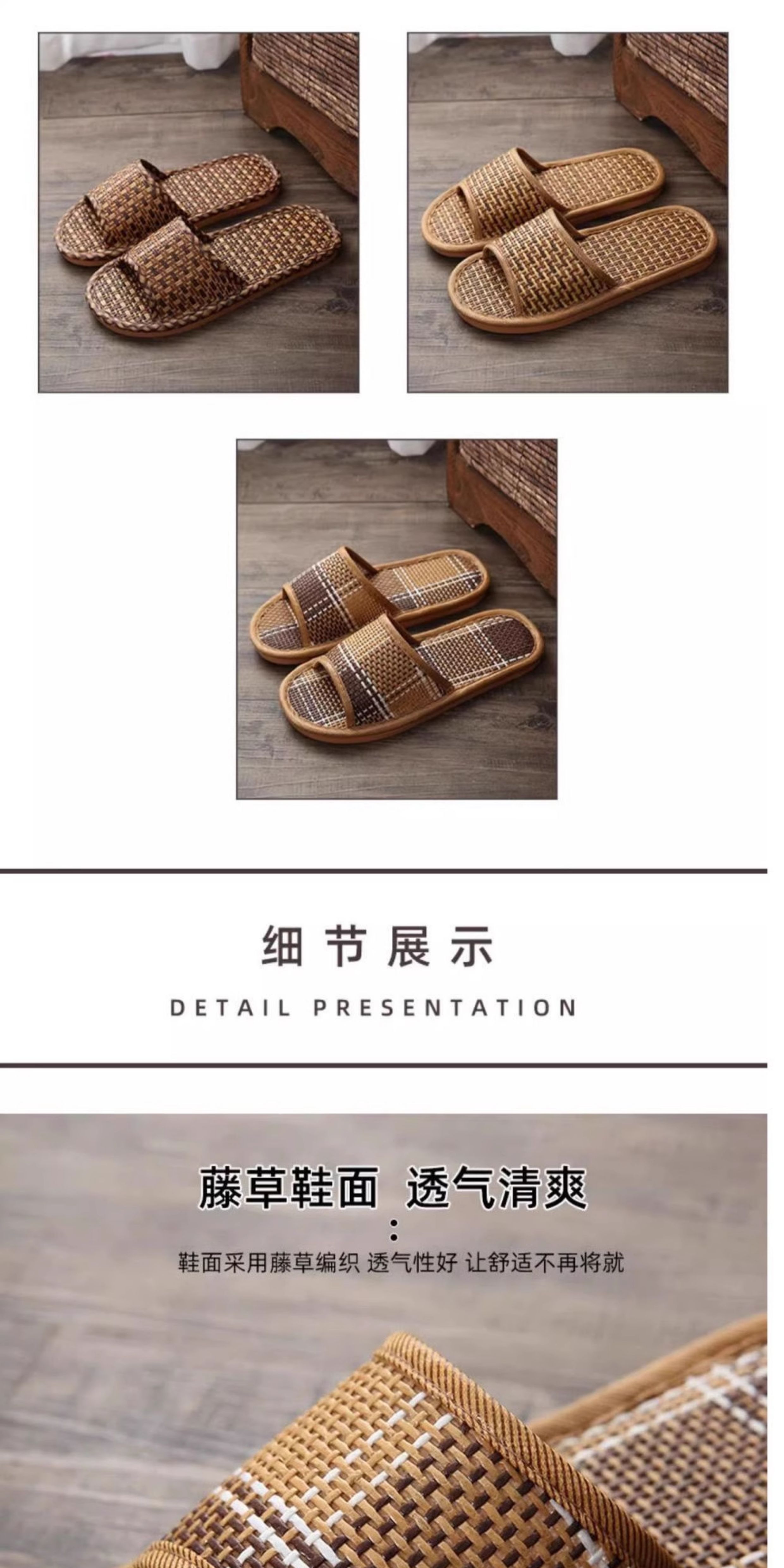 Household Summer Straw Linen Rattan Grass Men's and Women's Indoor Slippers Cool Straw Mat Home Non-Slip Floor Slippers Tj