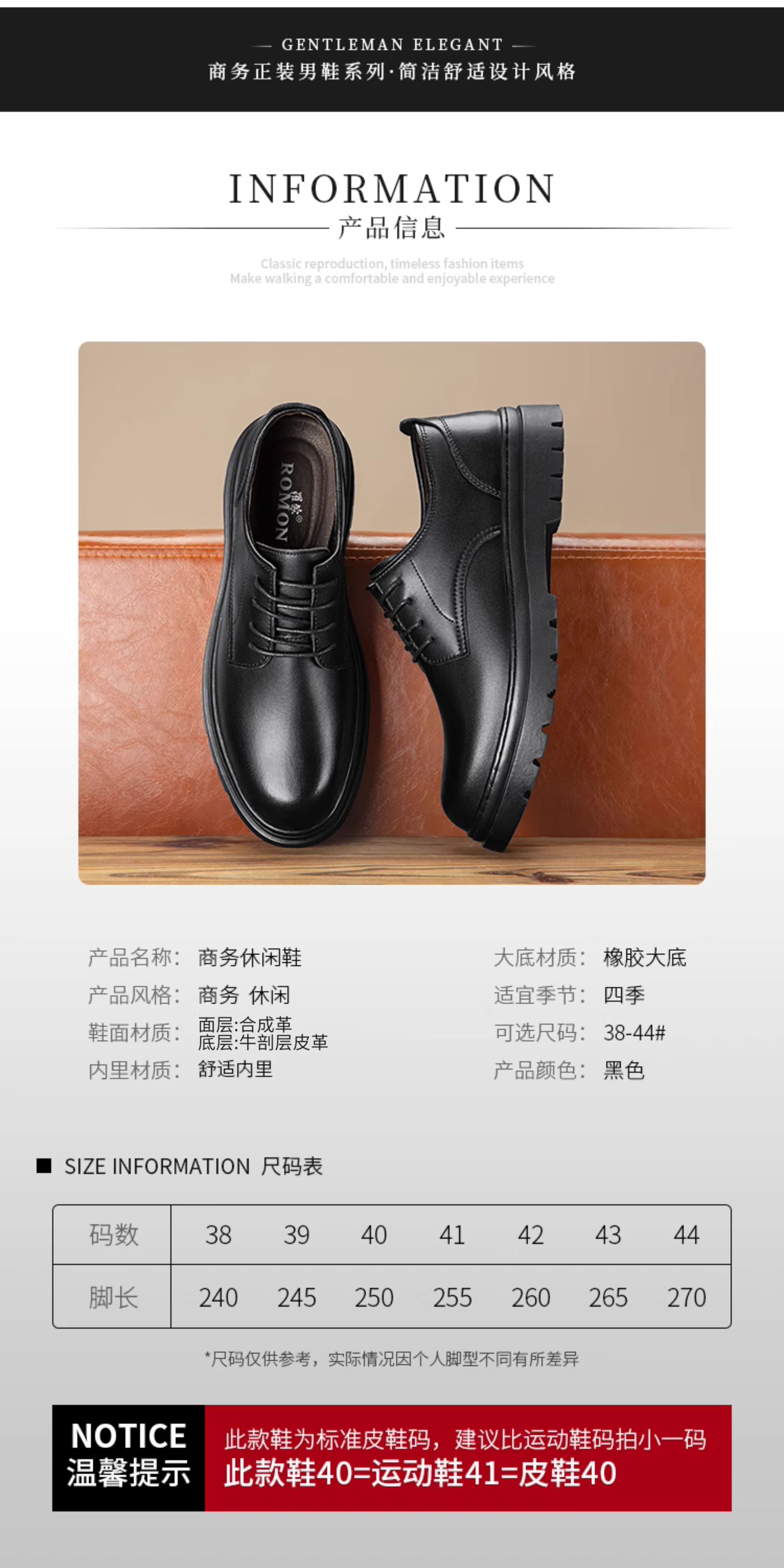 Romon Men's Shoes Winter Fleece-Lined Thick-Soled Height-Increasing Derby Shoes Men's Formal Business Leather Shoes Men's Suit Wedding Shoes Rm
