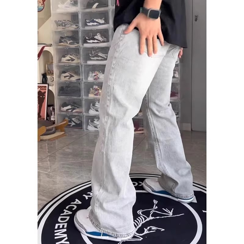 American-Style Trendy Brand Ash Leaf Curved Knife Jeans for Men, Winter Fleece-Lined, Plus-Size, Bootcut Pants, 2025 New Model