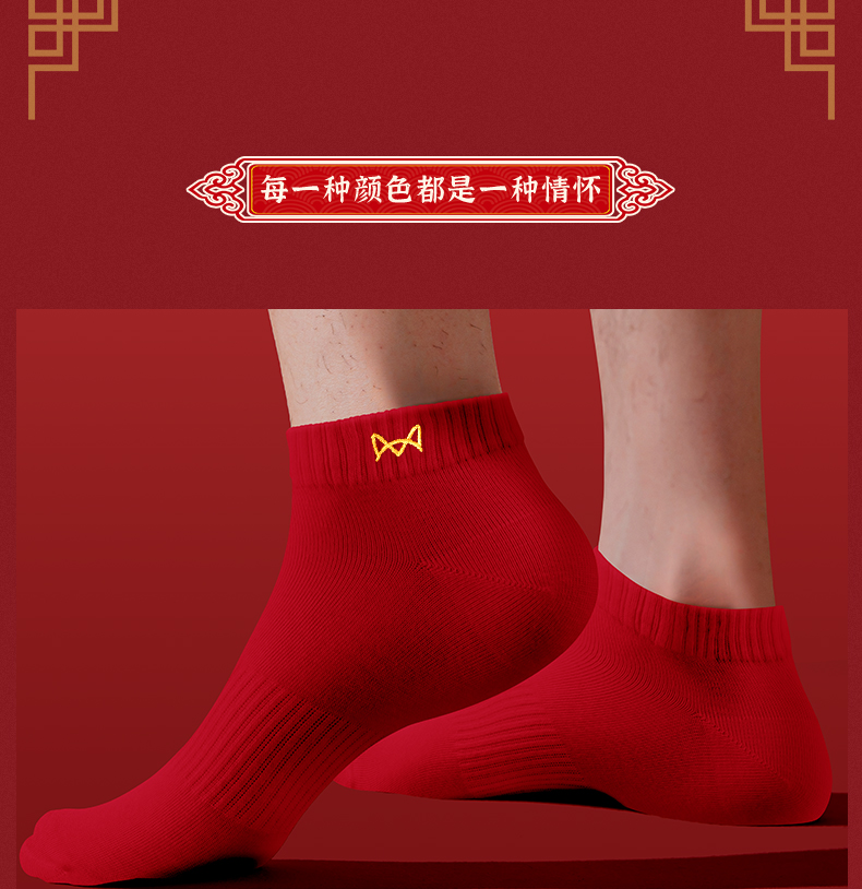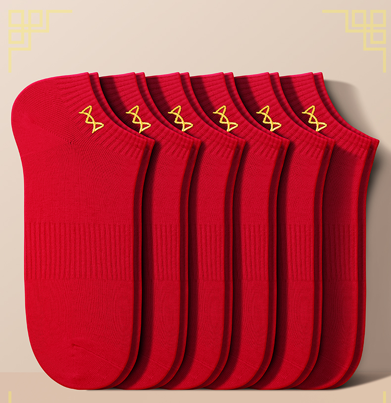 Cat-Themed Zodiac Year Socks for Men, Short Socks, Pure Cotton Socks, Unisex, Bright Red, Wedding, Summer, Deodorant, Antibacterial, No-Show Socks