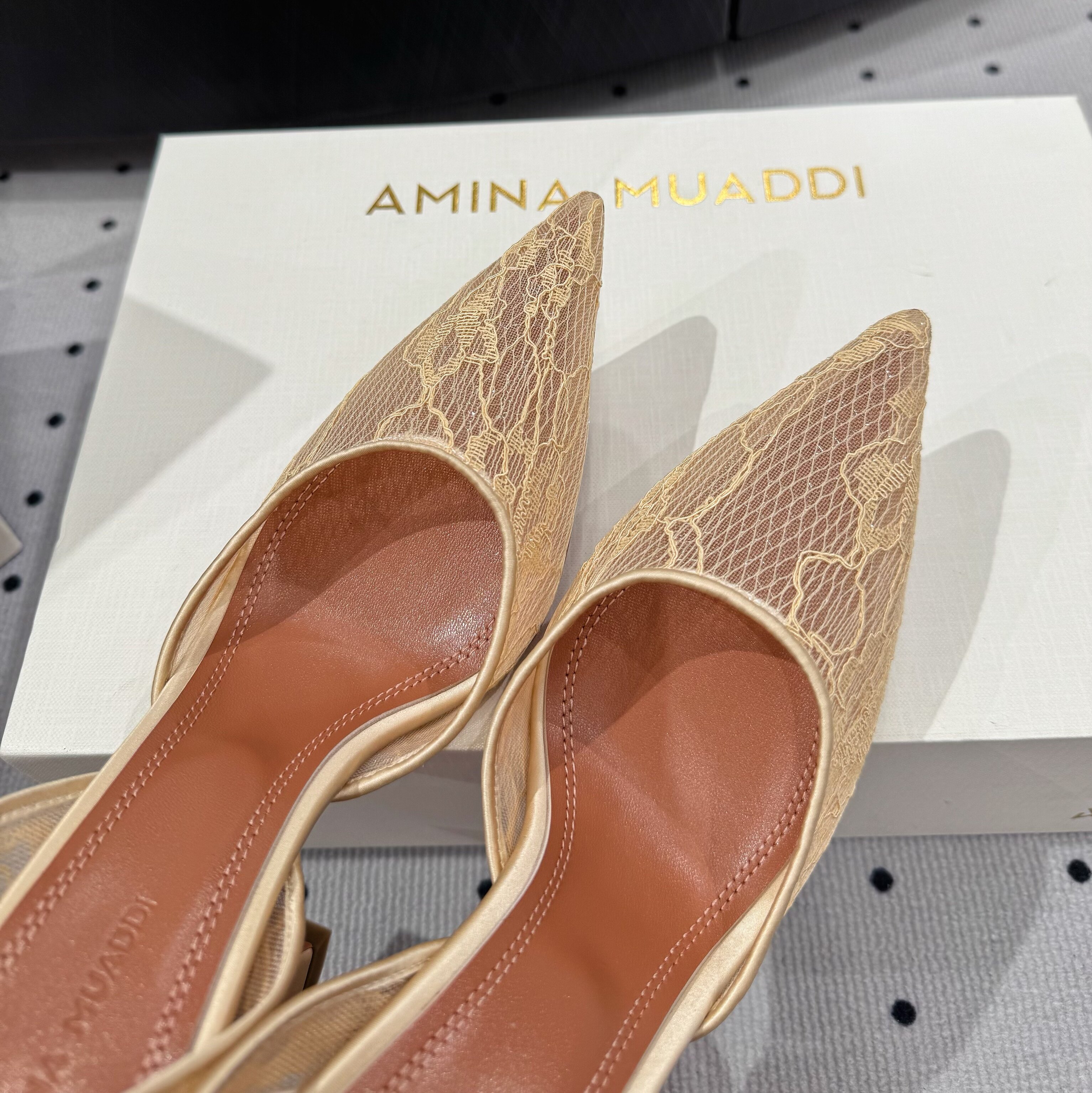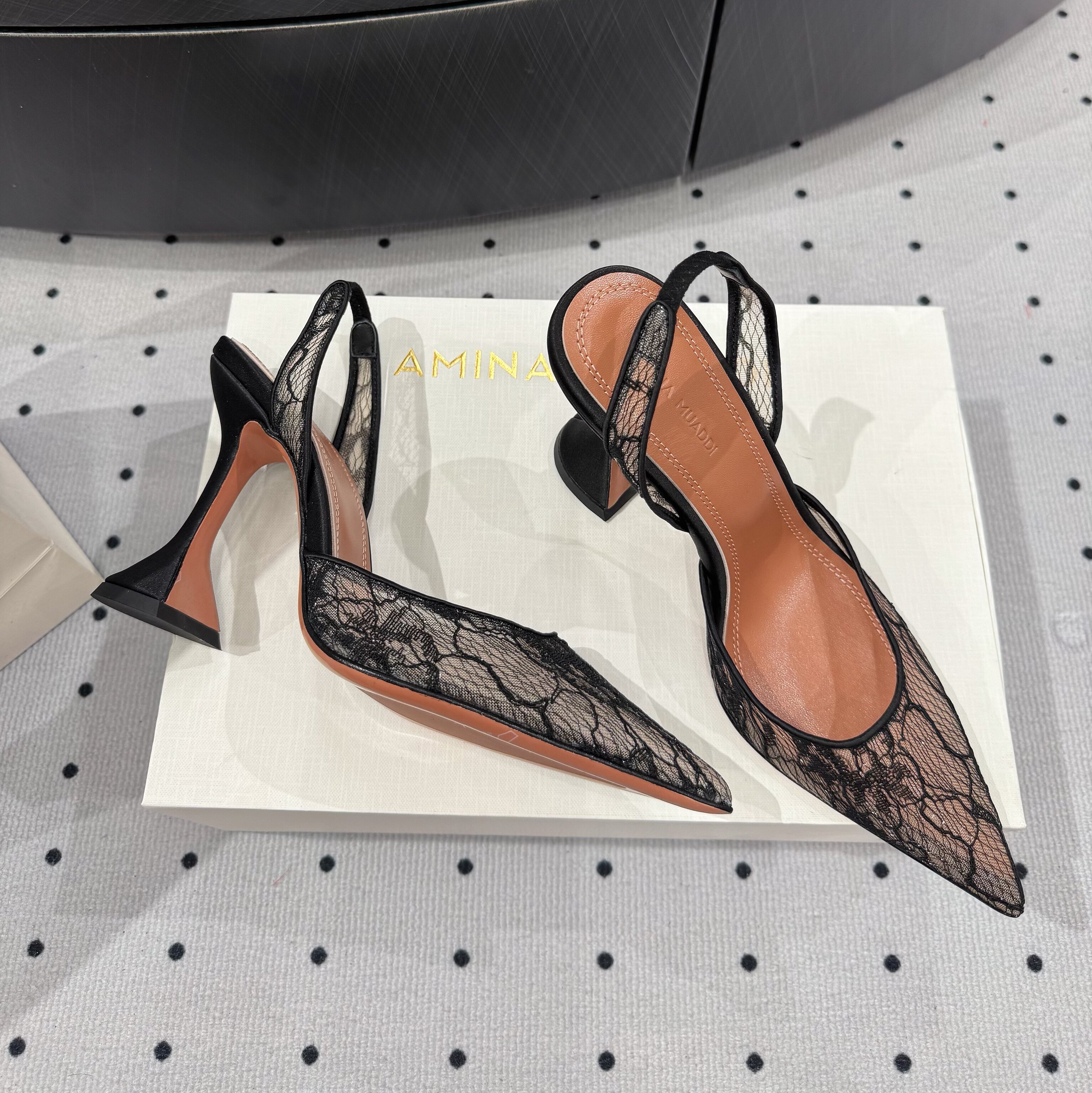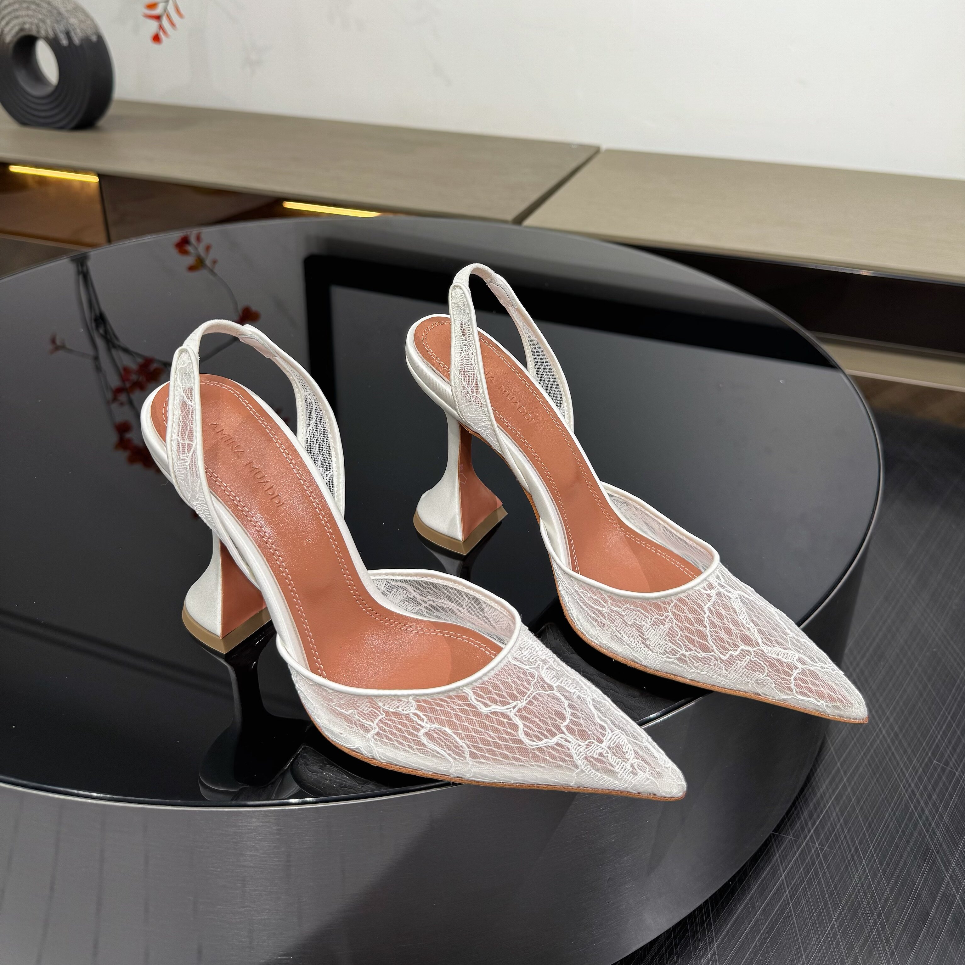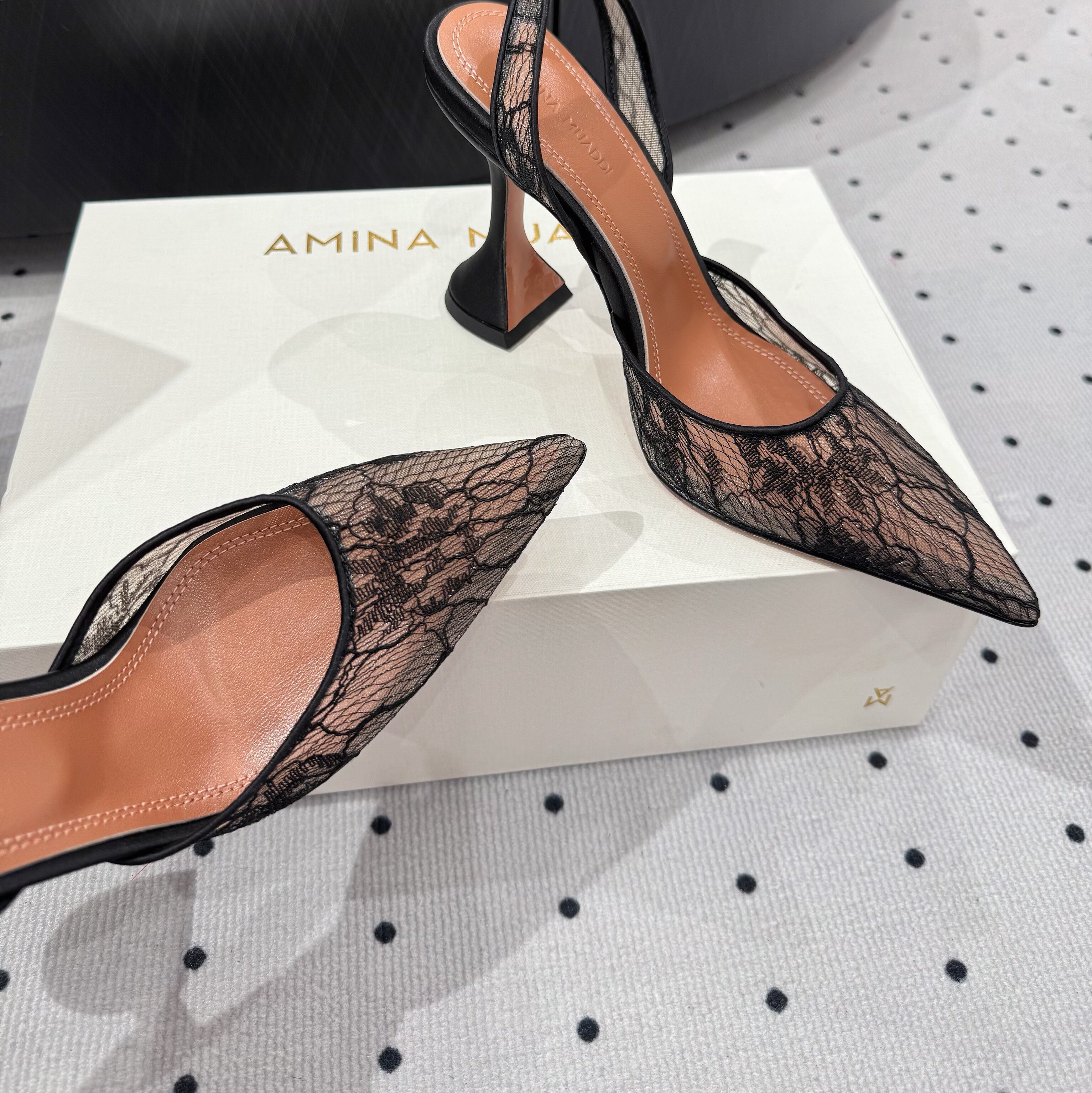 Amina Muaddi New Lace Mesh Sexy High Heels European and American Export Pointed Toe Wine Glass Heel Wedding Shoes