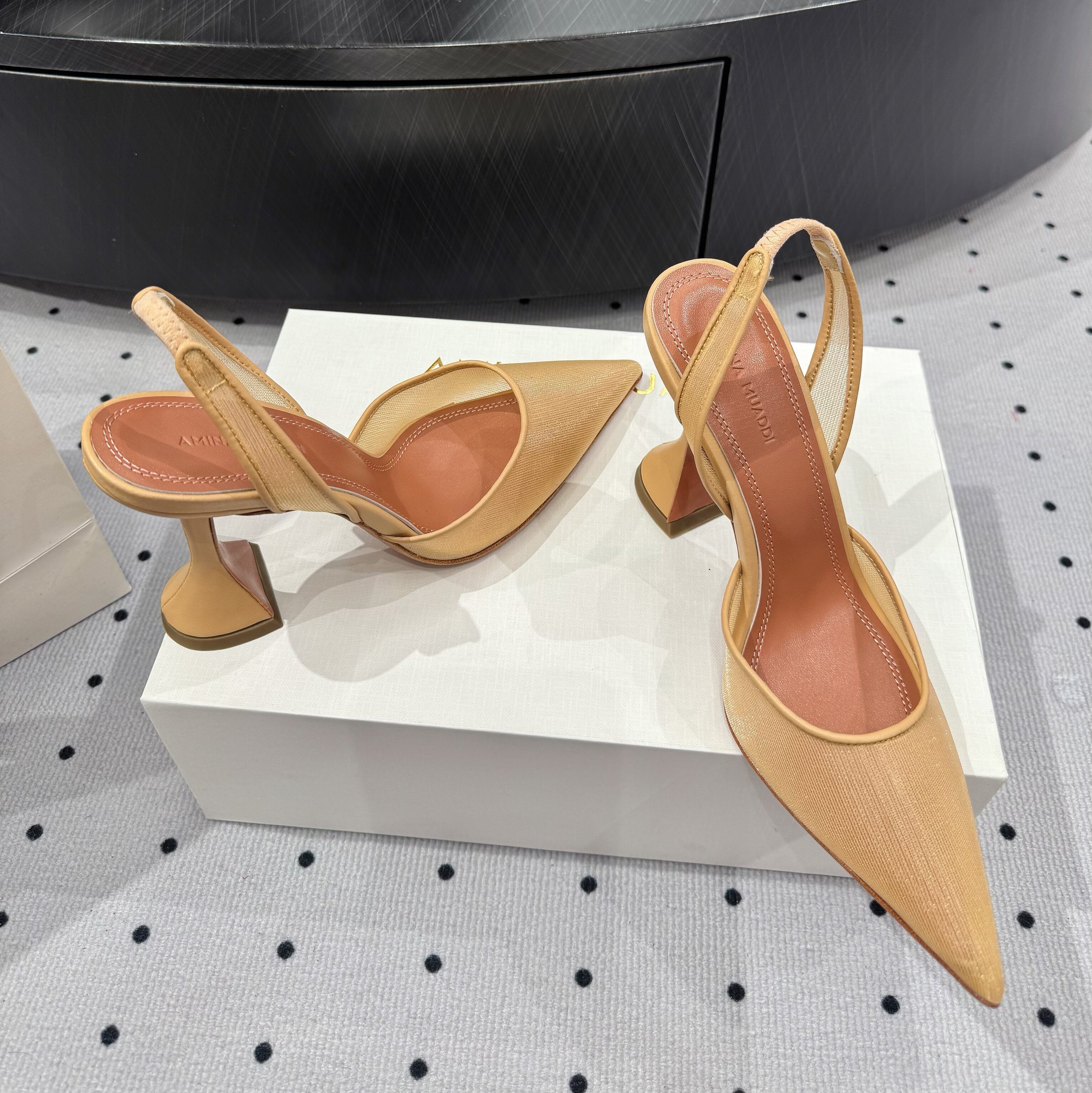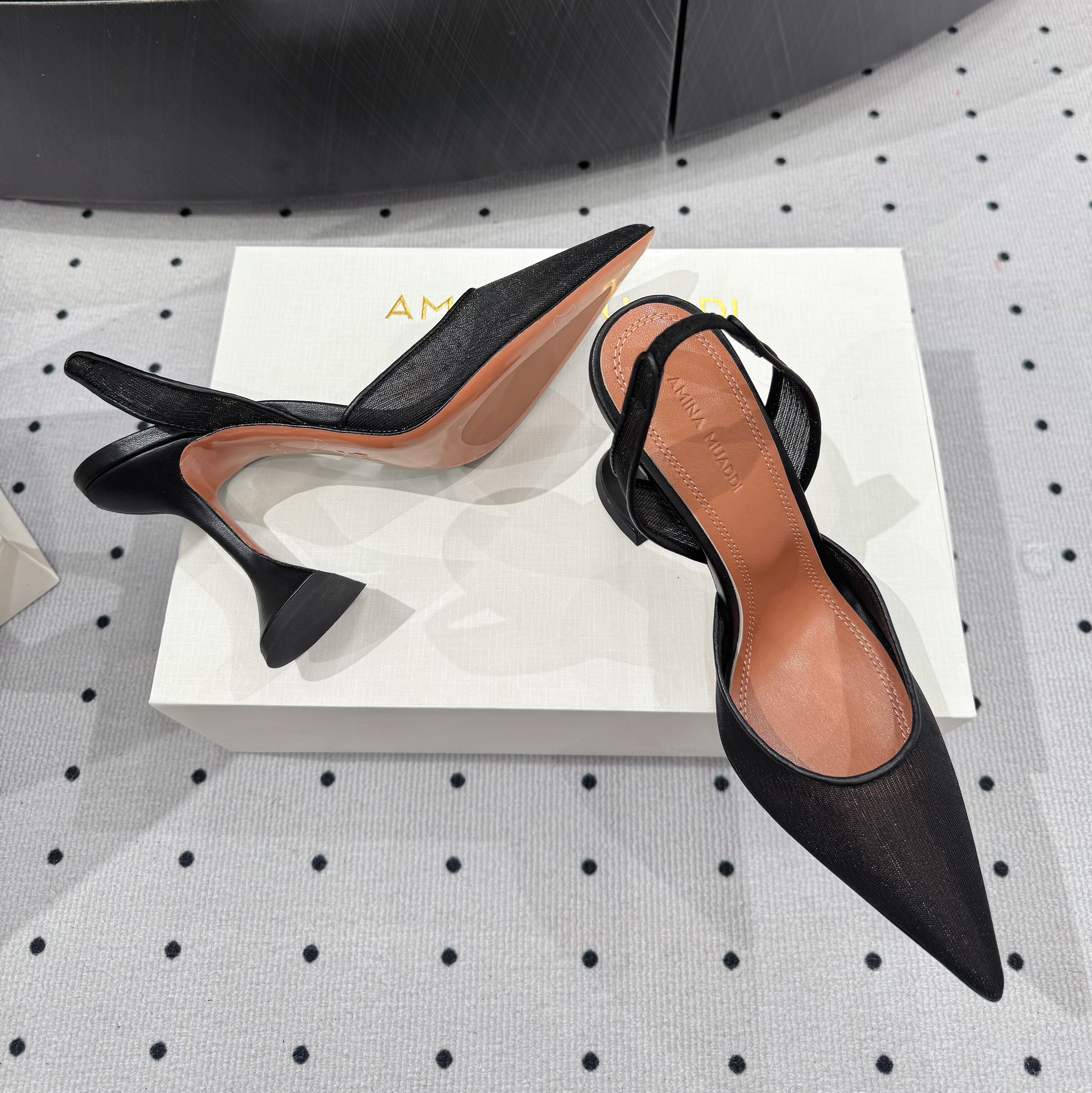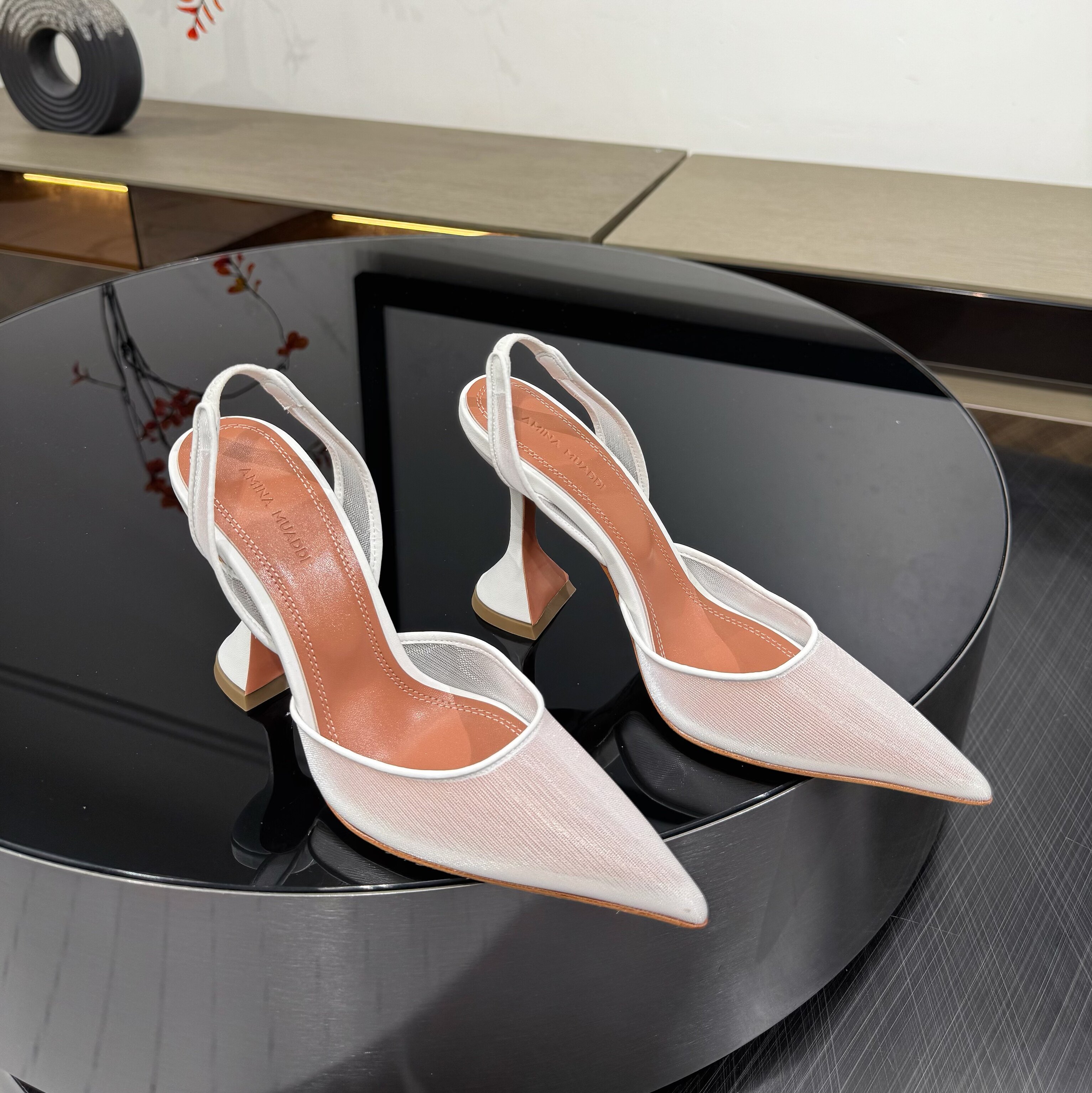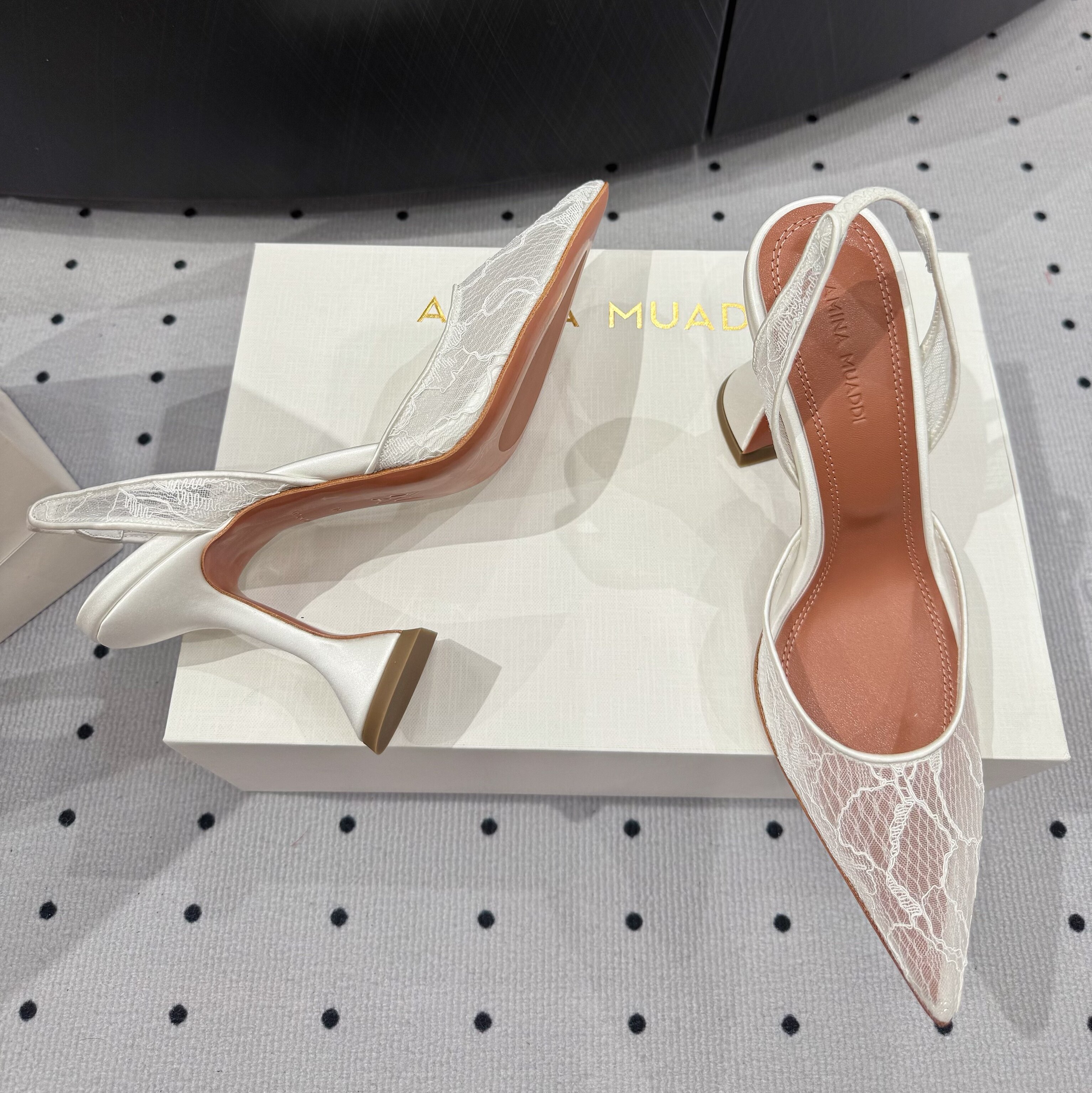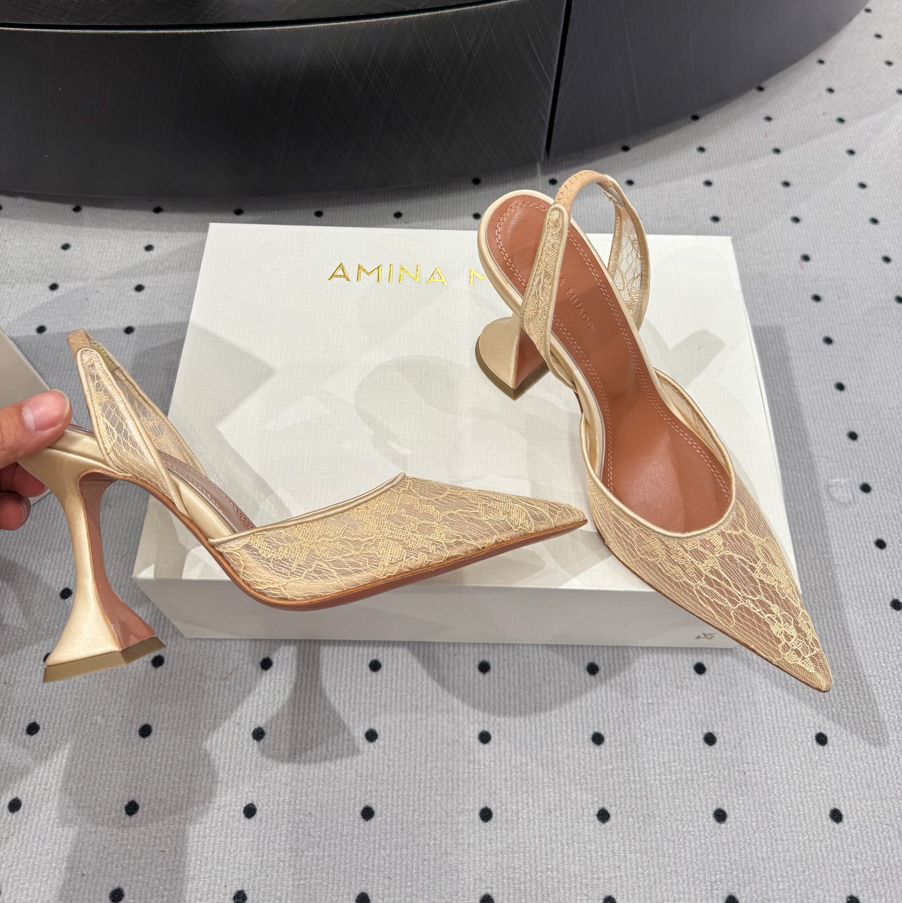 Amina Muaddi New Lace Mesh Sexy High Heels European and American Export Pointed Toe Wine Glass Heel Wedding Shoes