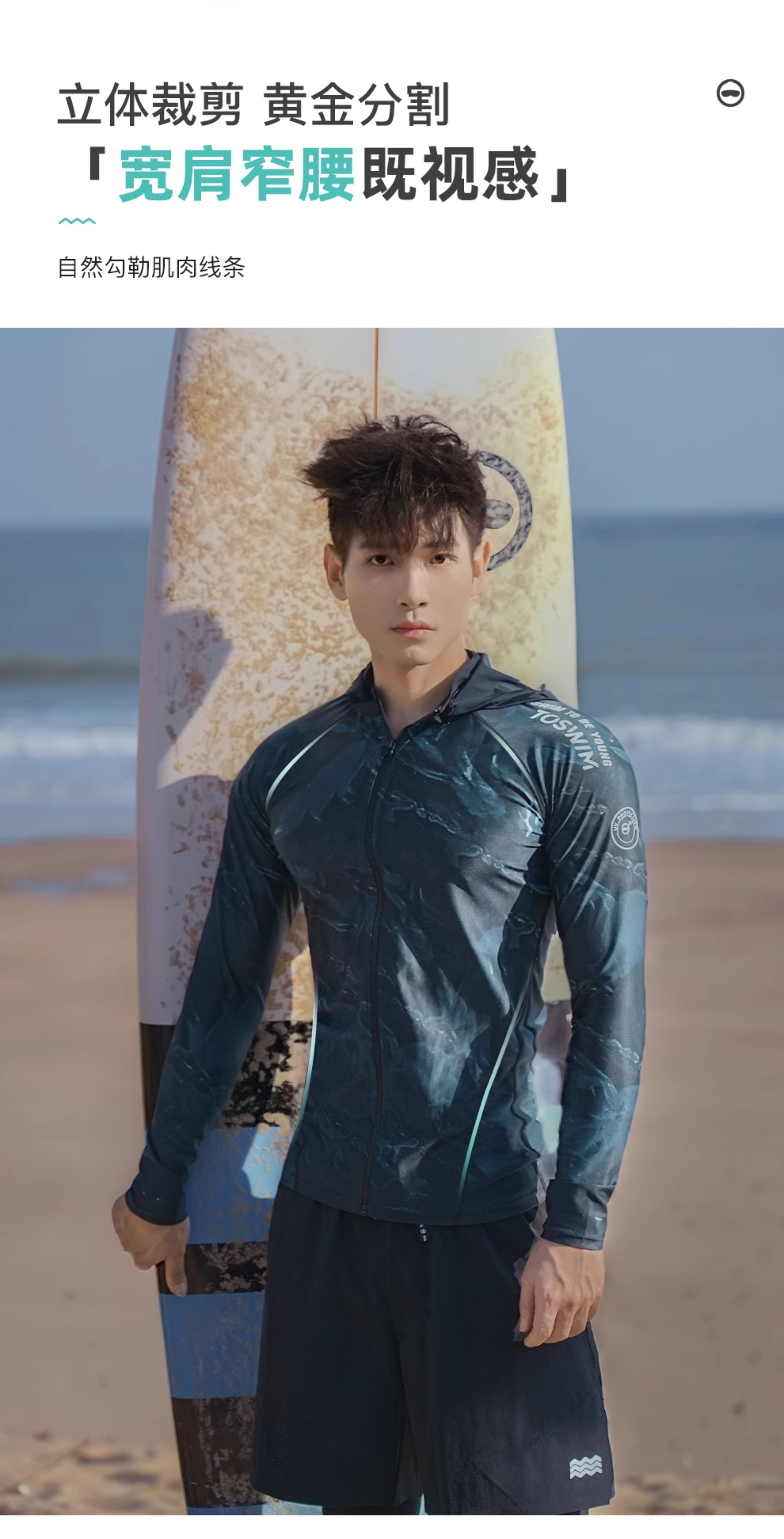 Toswim Men's Long-Sleeved Swimsuit and Trunks Set 2025 New Adult Beach Surfing and Diving Sun Protection Swimsuit