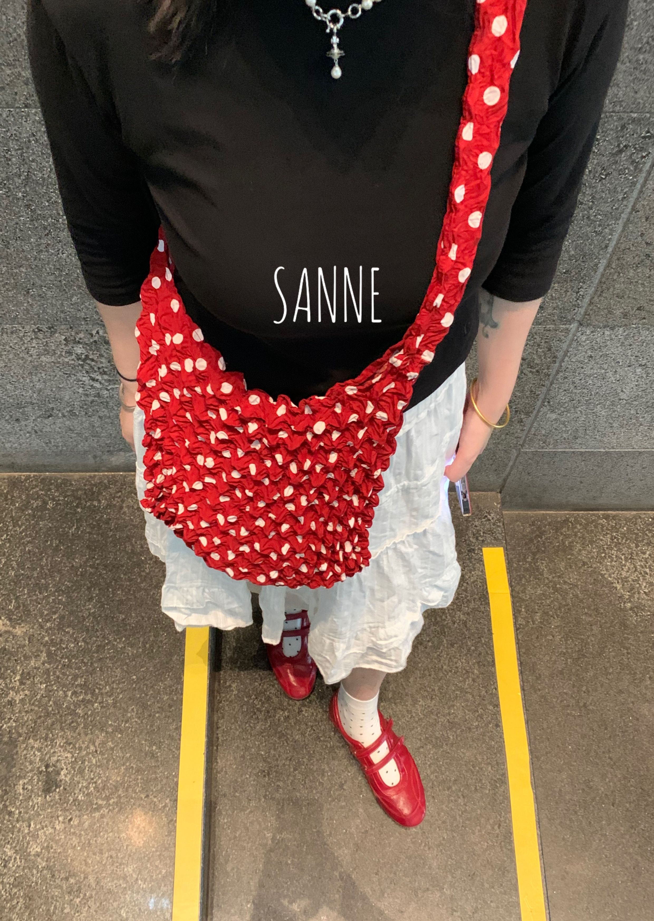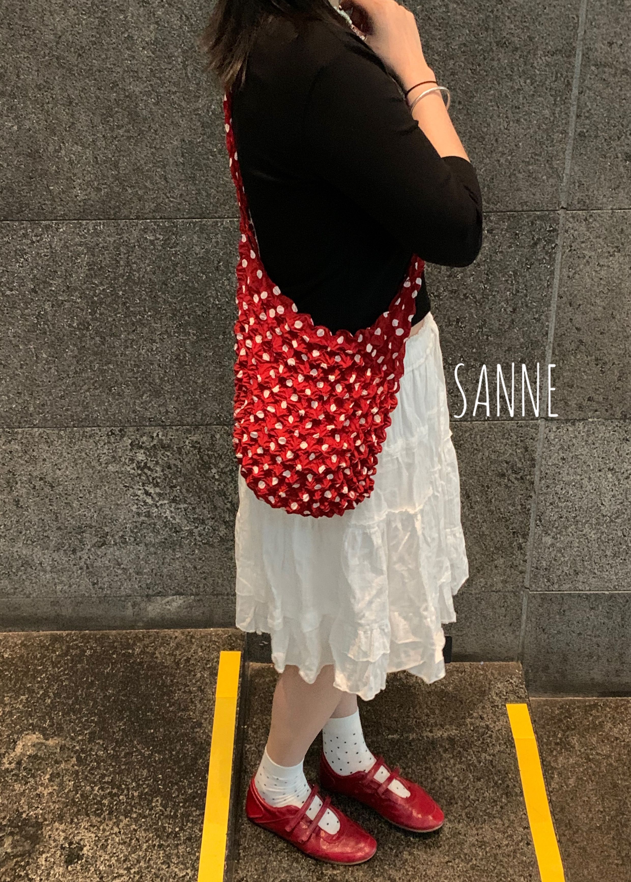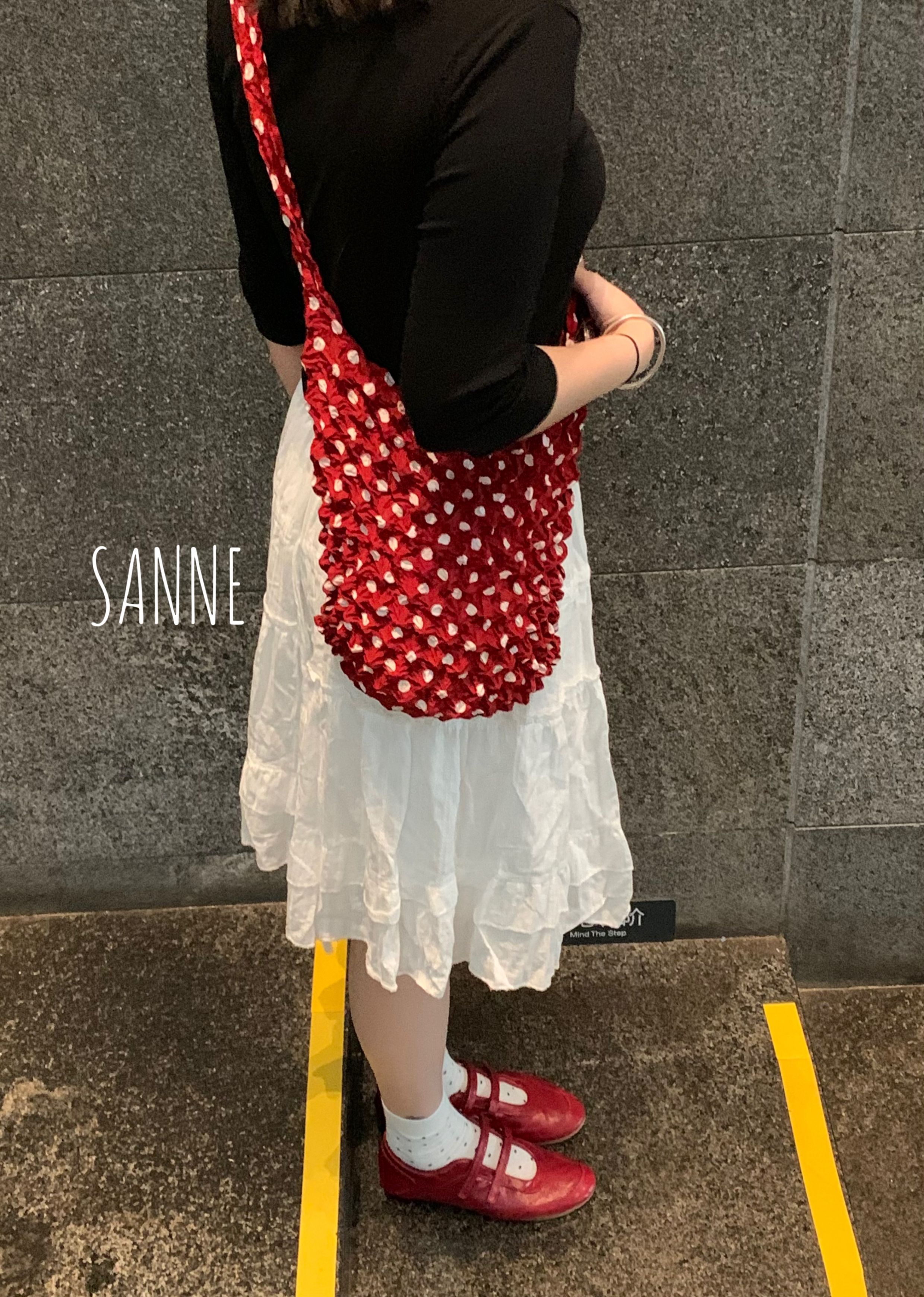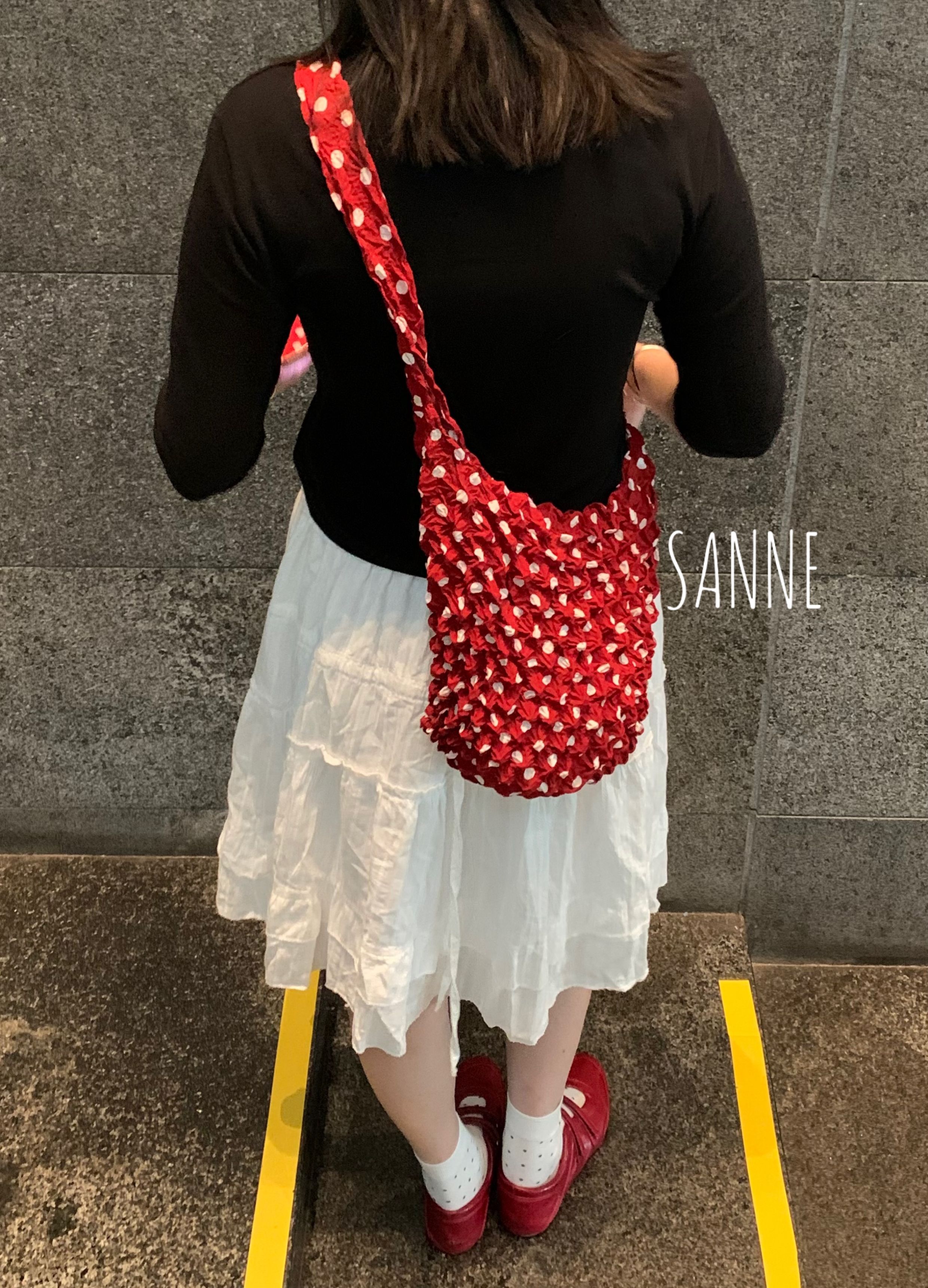 Sanne Red and White Polka Dot Bag Shoulder Bag Crossbody Canvas Bag Underarm Bag Large Capacity Canvas Bag Commuter Women's Bag