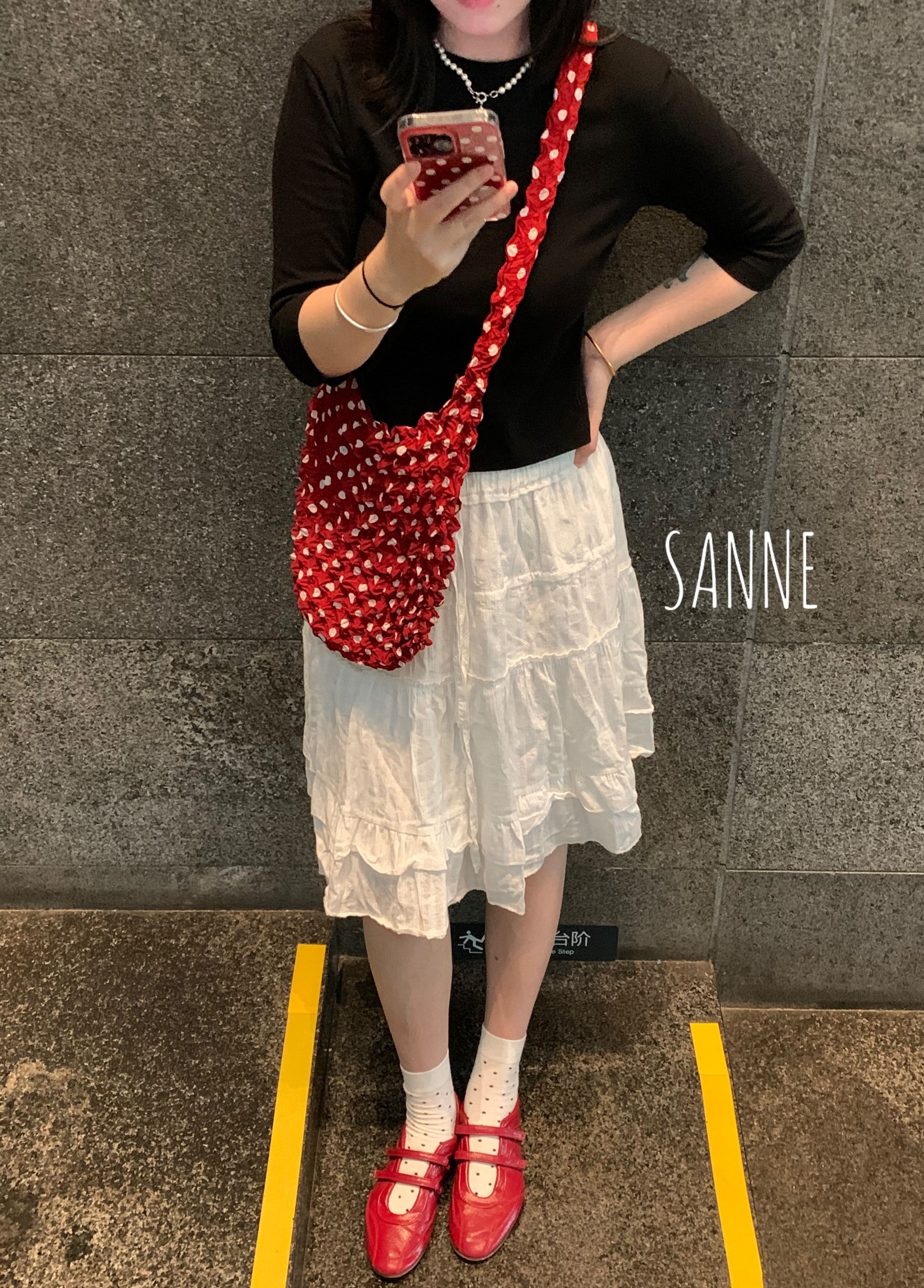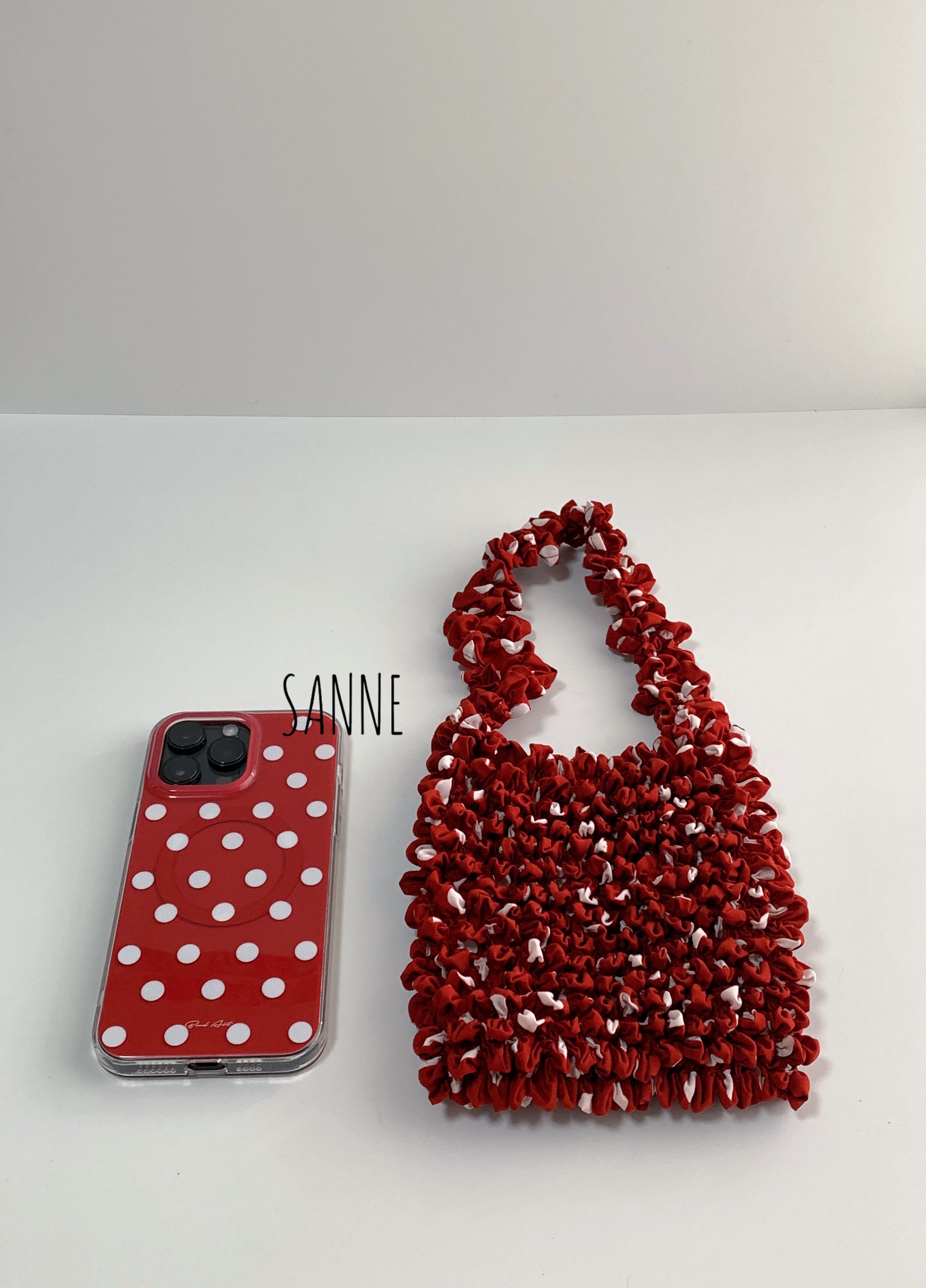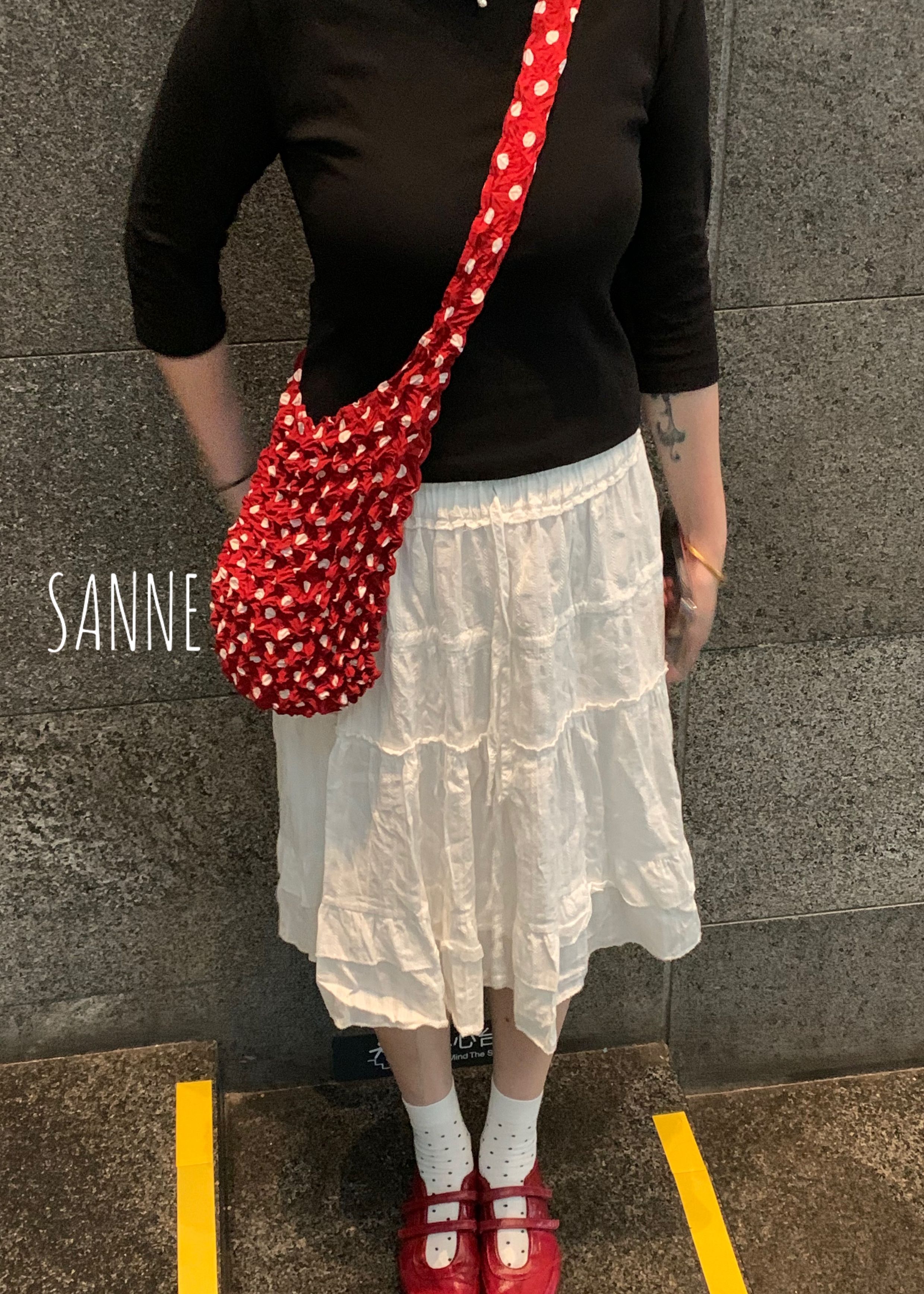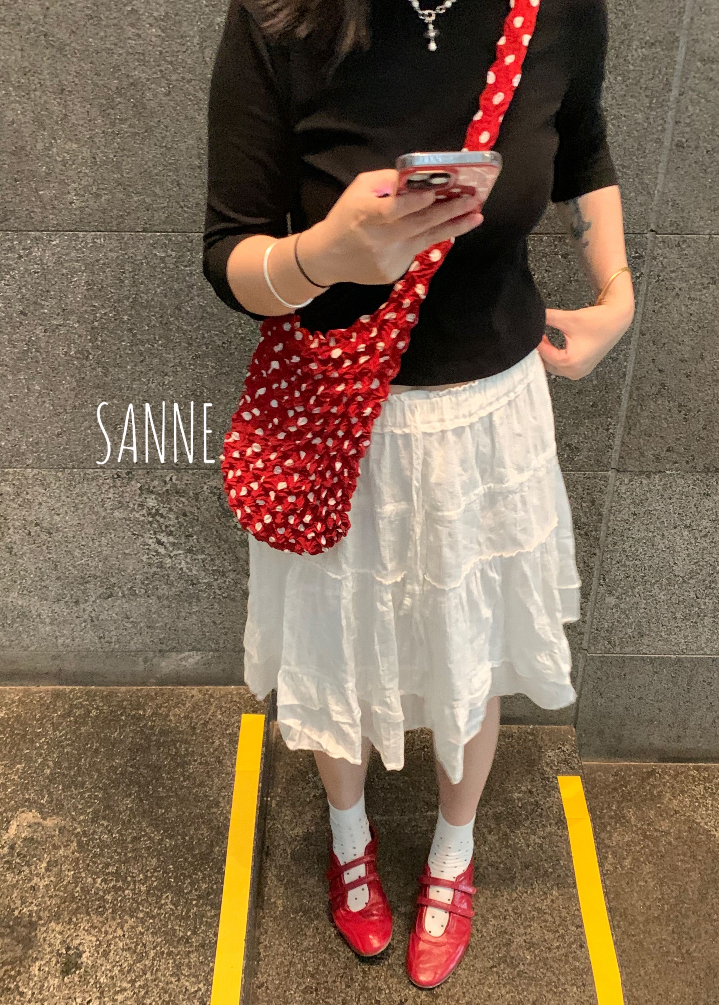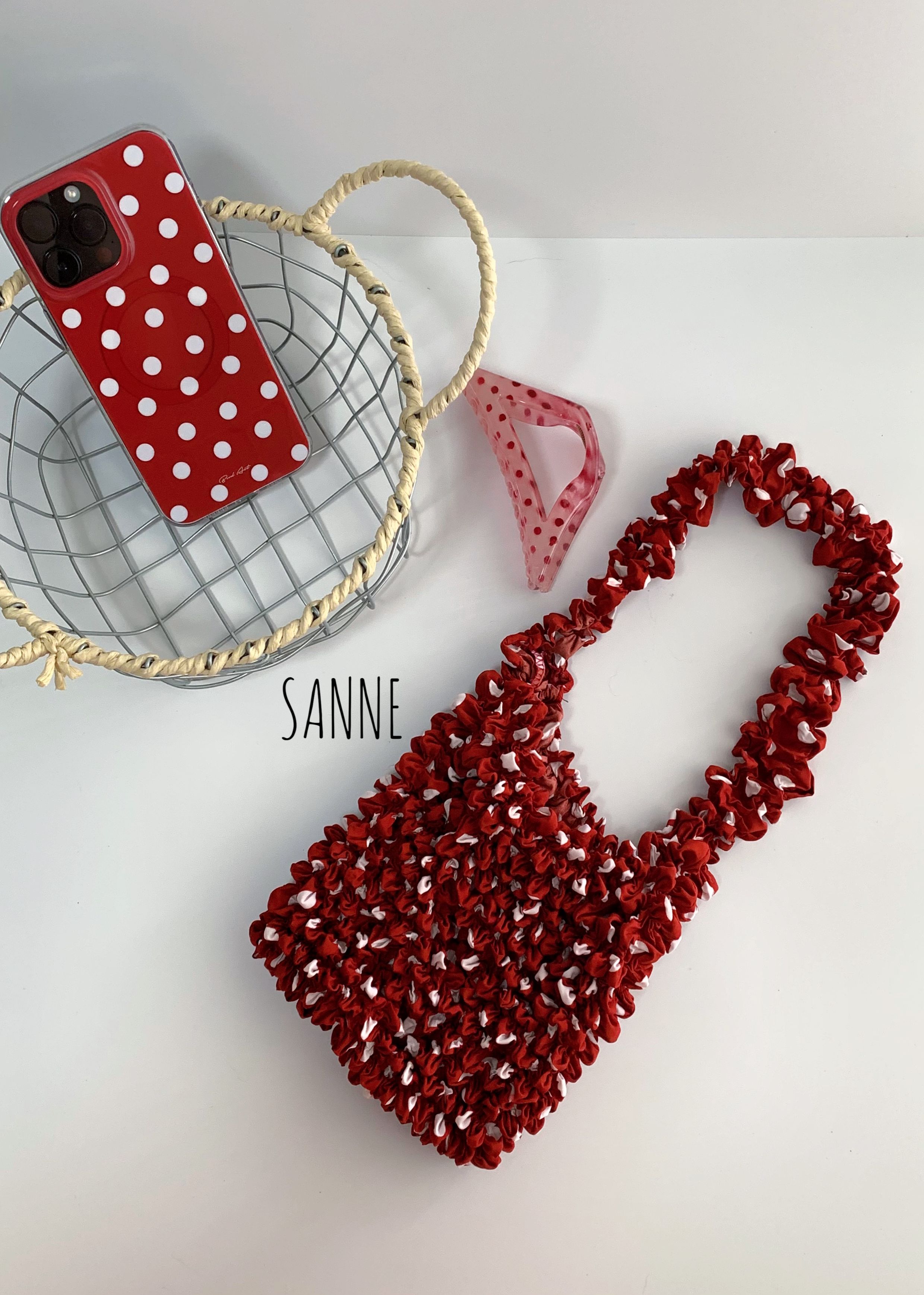 Sanne Red and White Polka Dot Bag Shoulder Bag Crossbody Canvas Bag Underarm Bag Large Capacity Canvas Bag Commuter Women's Bag