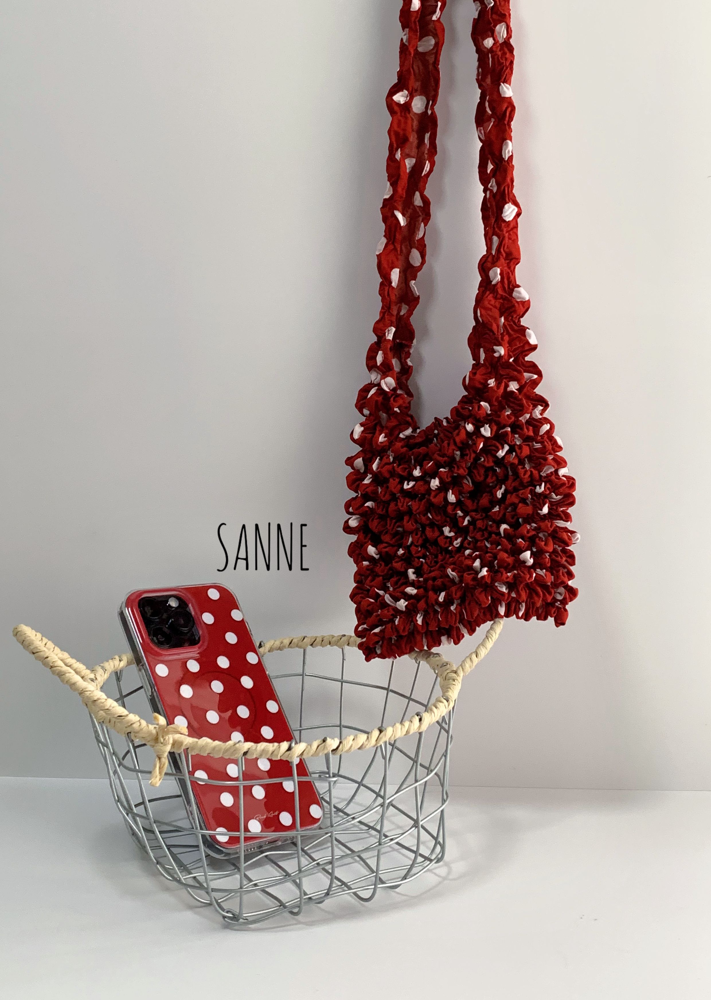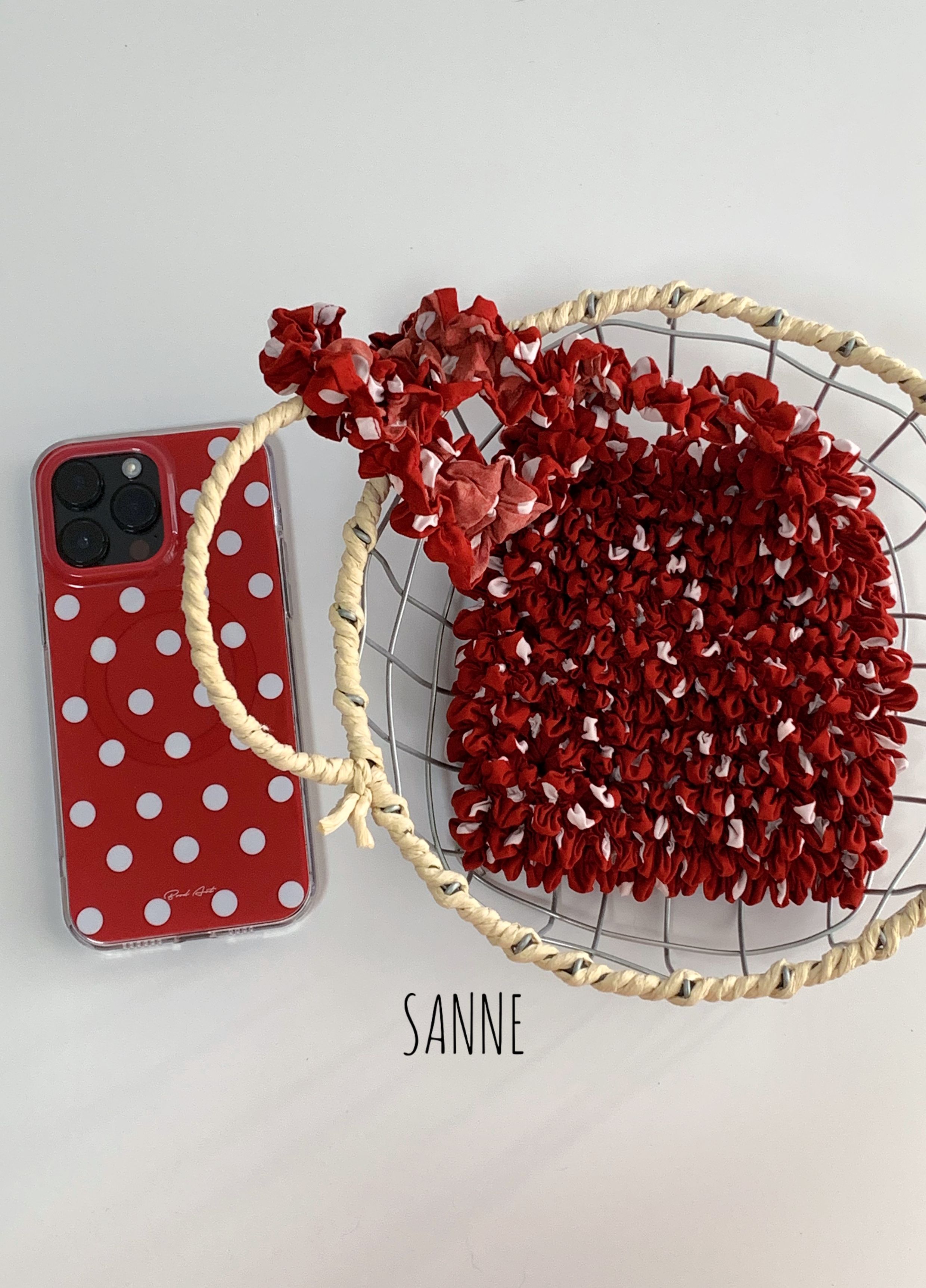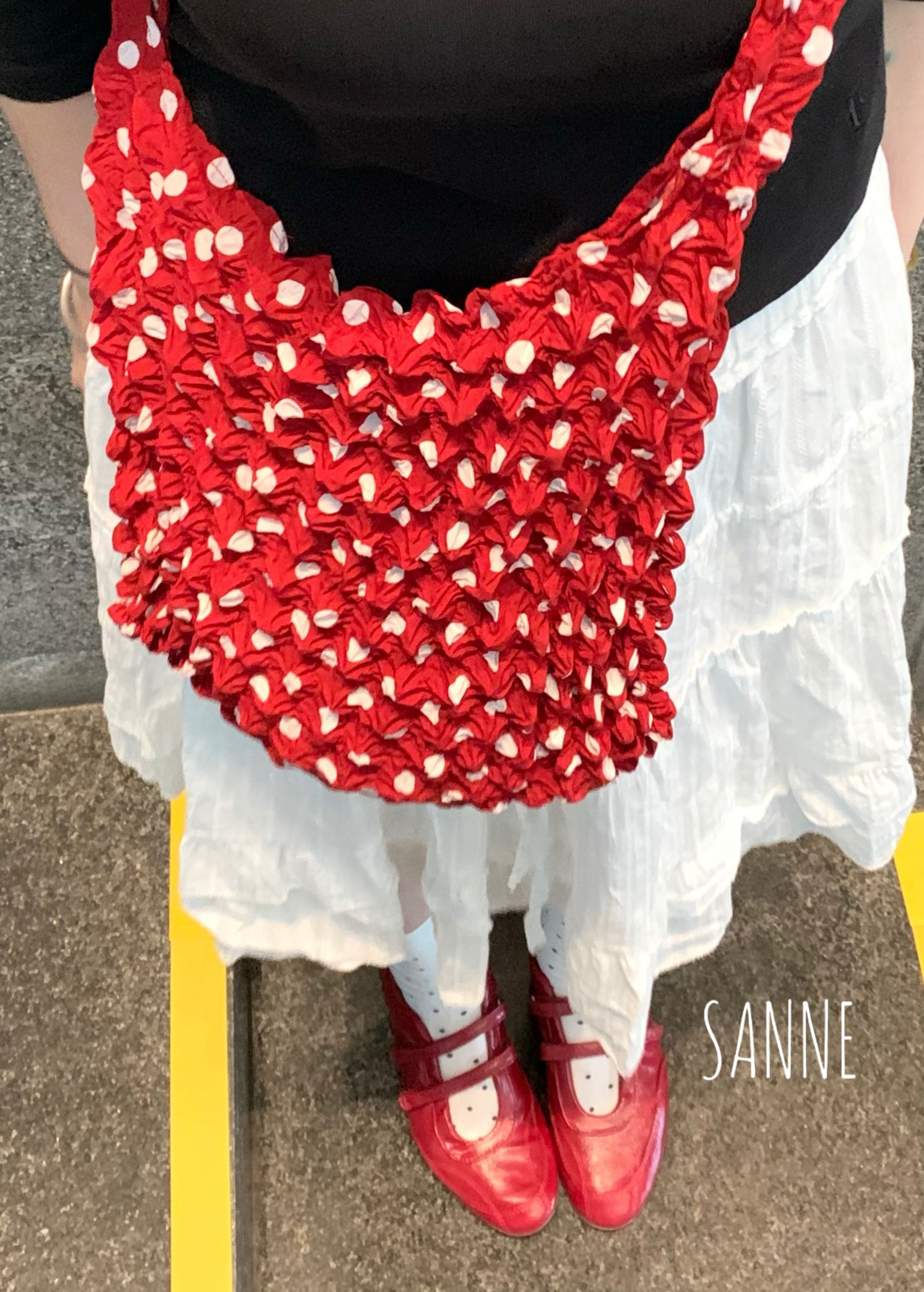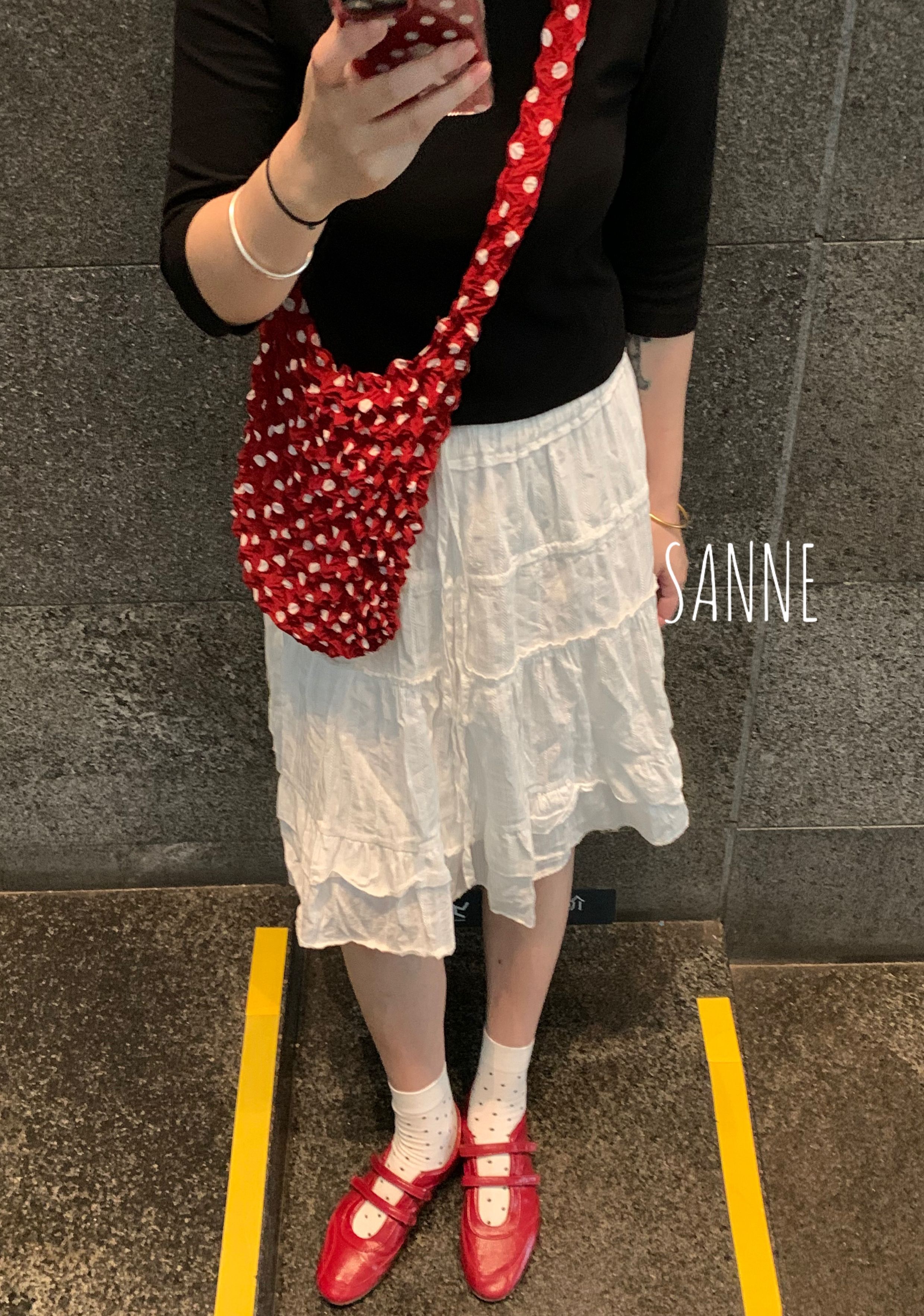 Sanne Red and White Polka Dot Bag Shoulder Bag Crossbody Canvas Bag Underarm Bag Large Capacity Canvas Bag Commuter Women's Bag