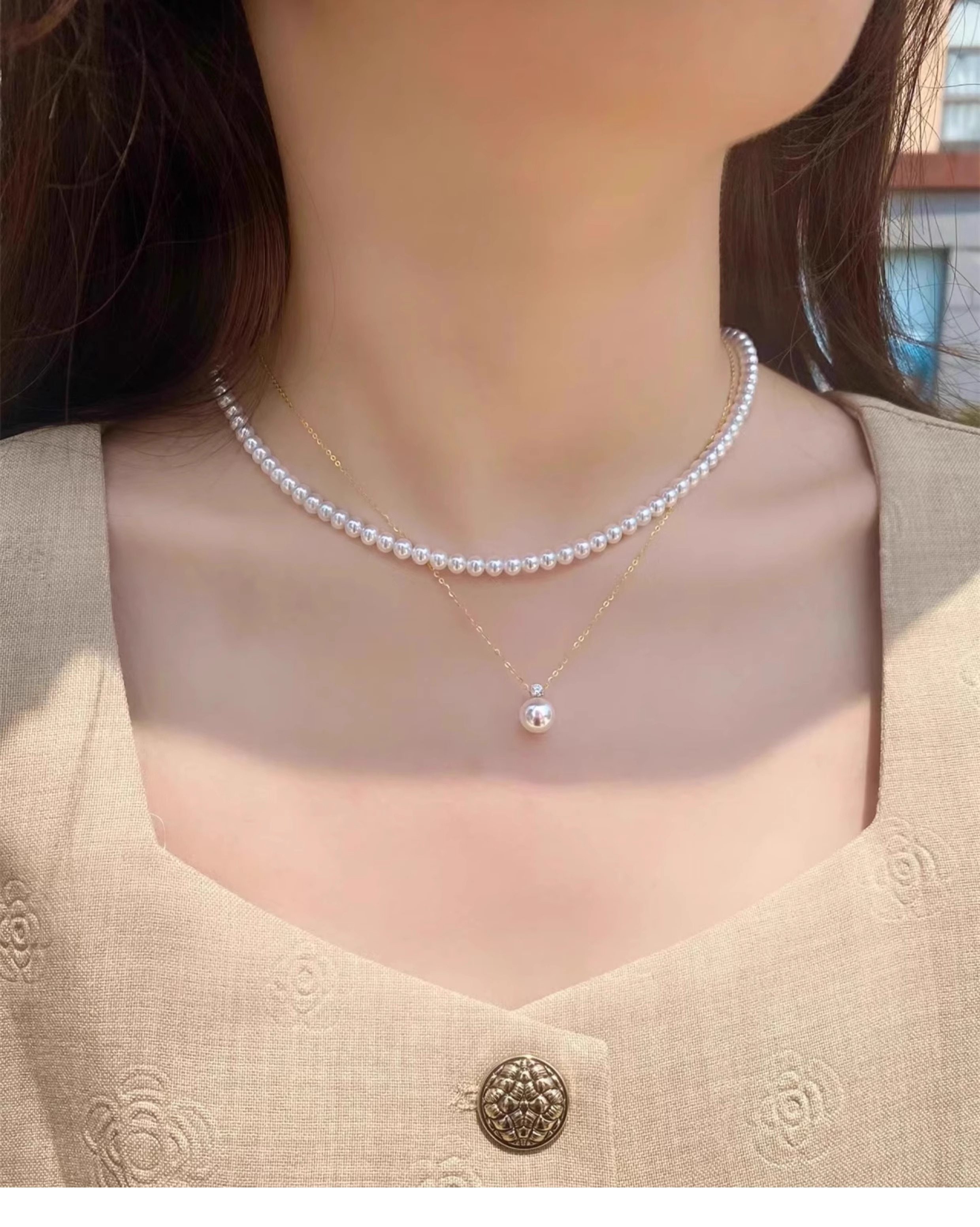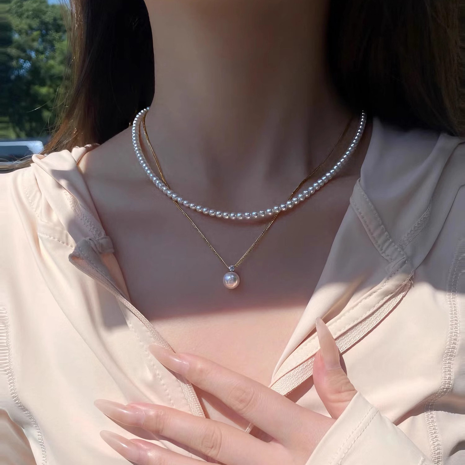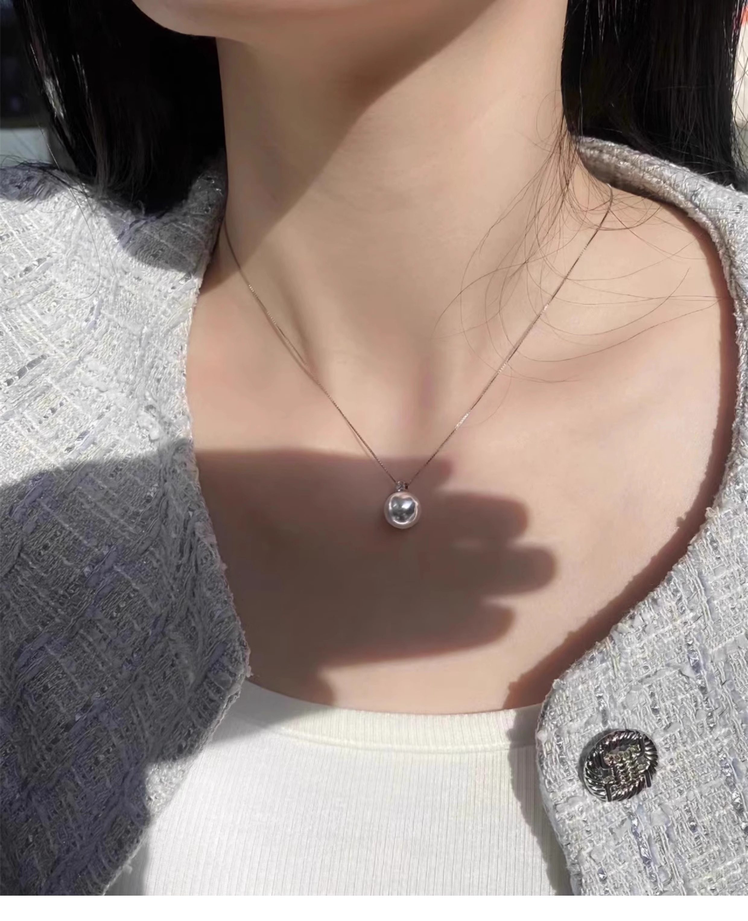 High-Gloss Round Sterling Silver Pearl Necklace for Women, Niche Design Clavicle Chain, 2025 New Popular Style, High-End Neck Chain