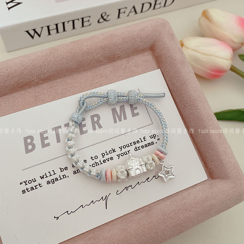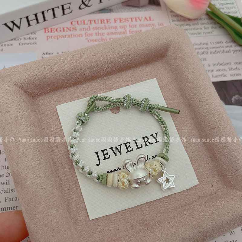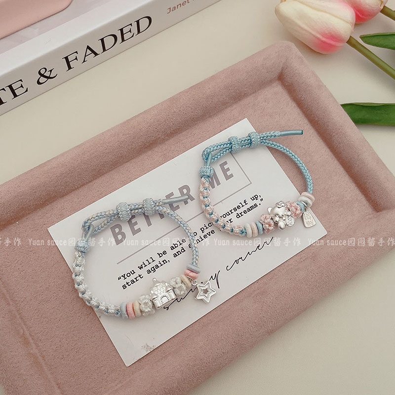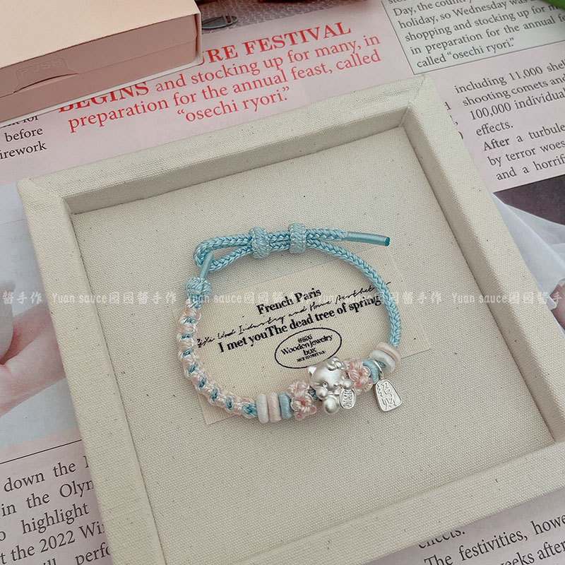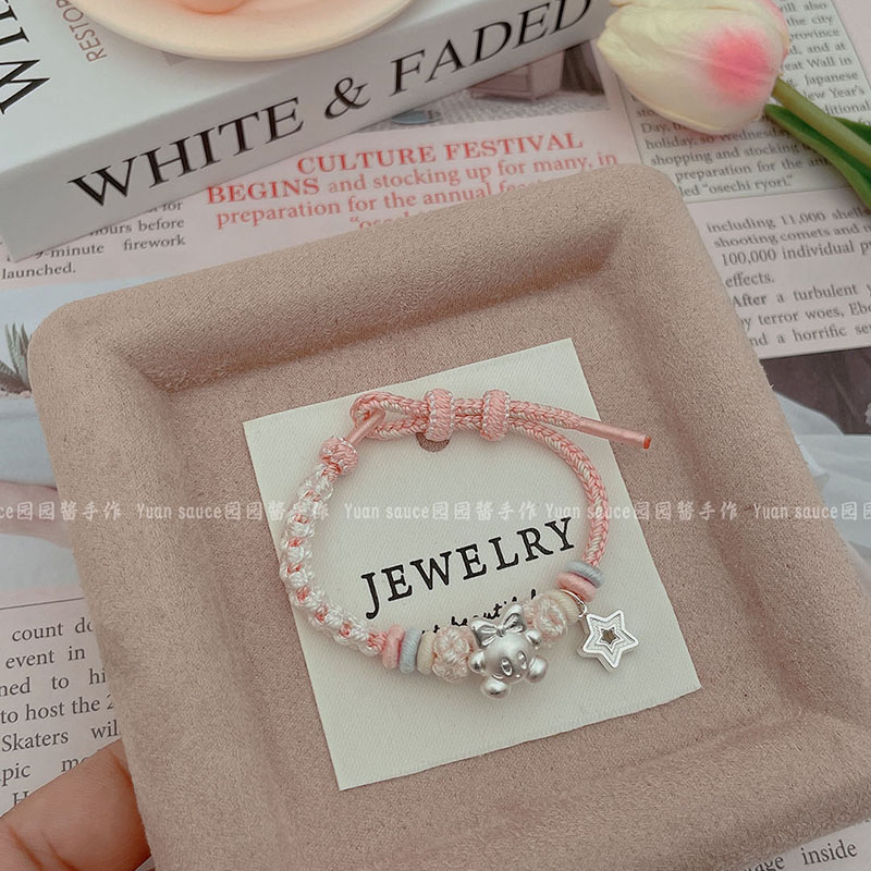 Pure Silver 999 Peach Blossom Knot Bracelet, Pure Silver Kitty Kirby Star Bracelet, Hand-Woven Rope, Gift for Children and Girlfriends