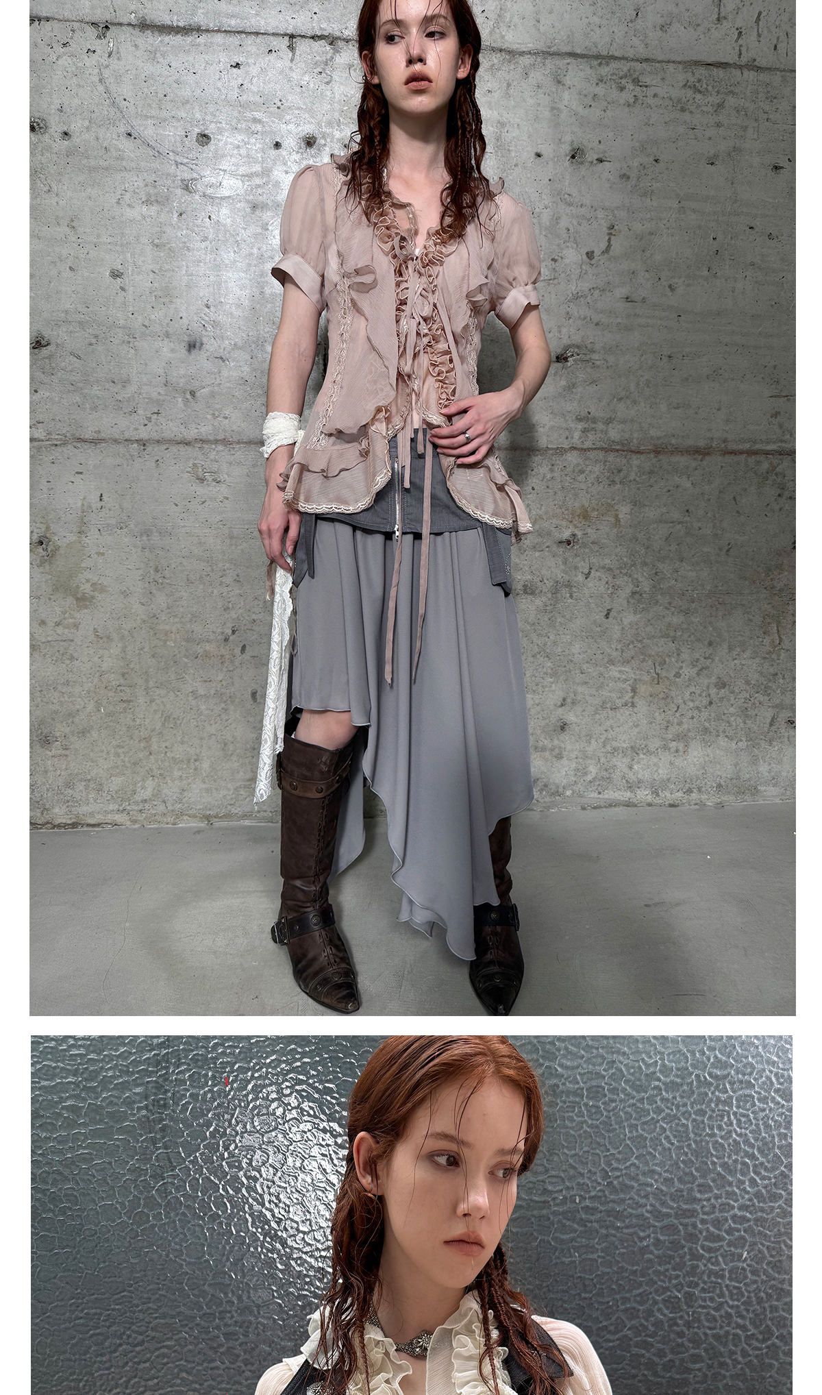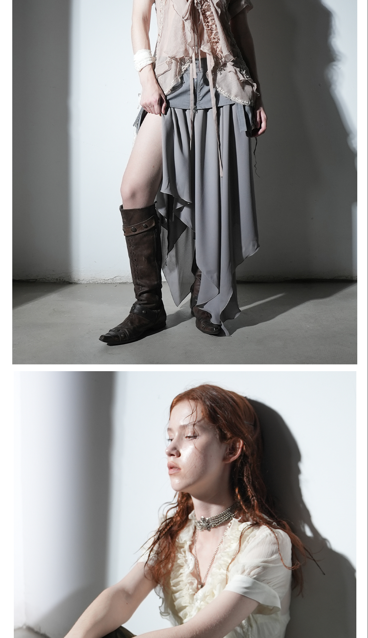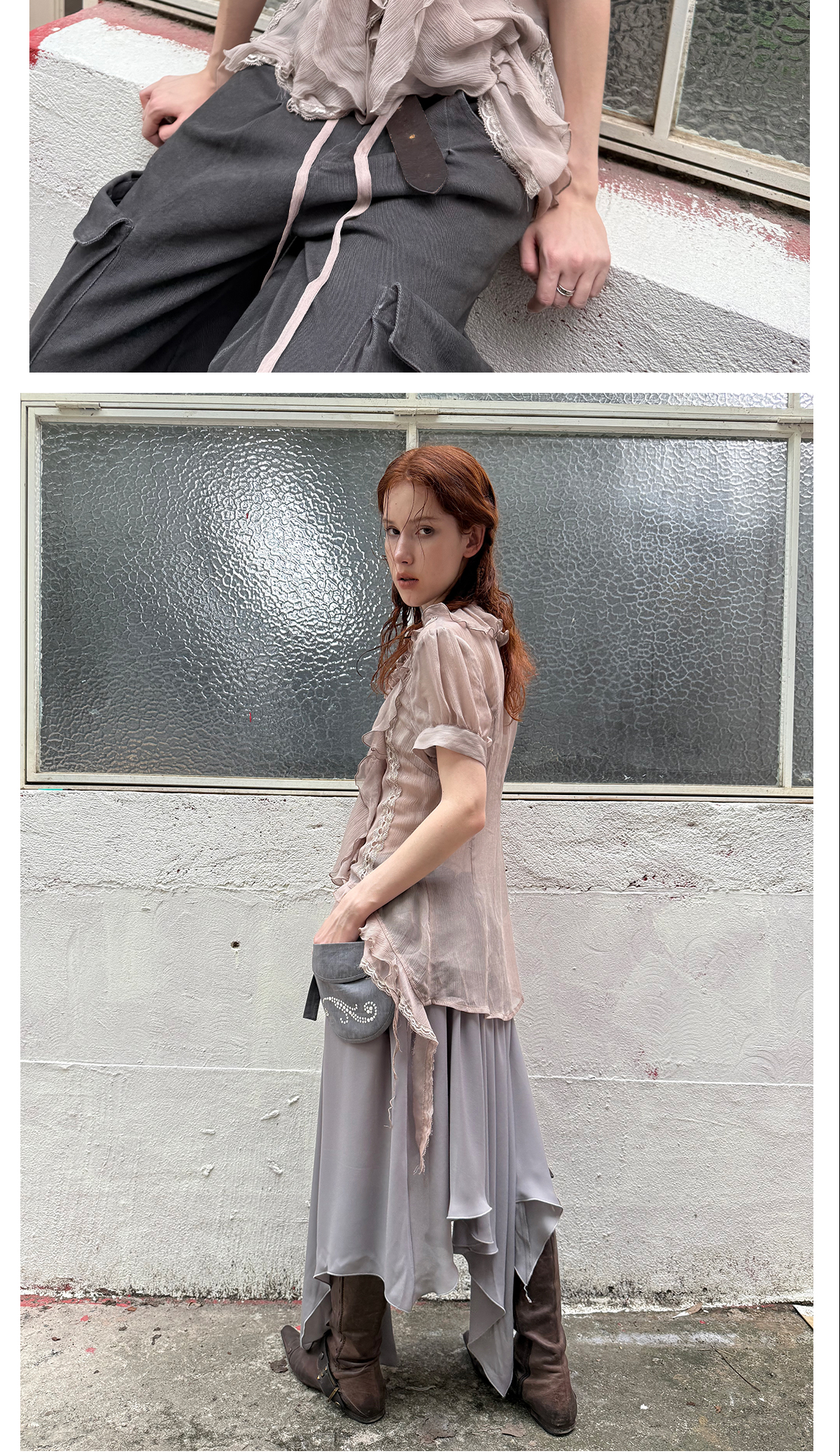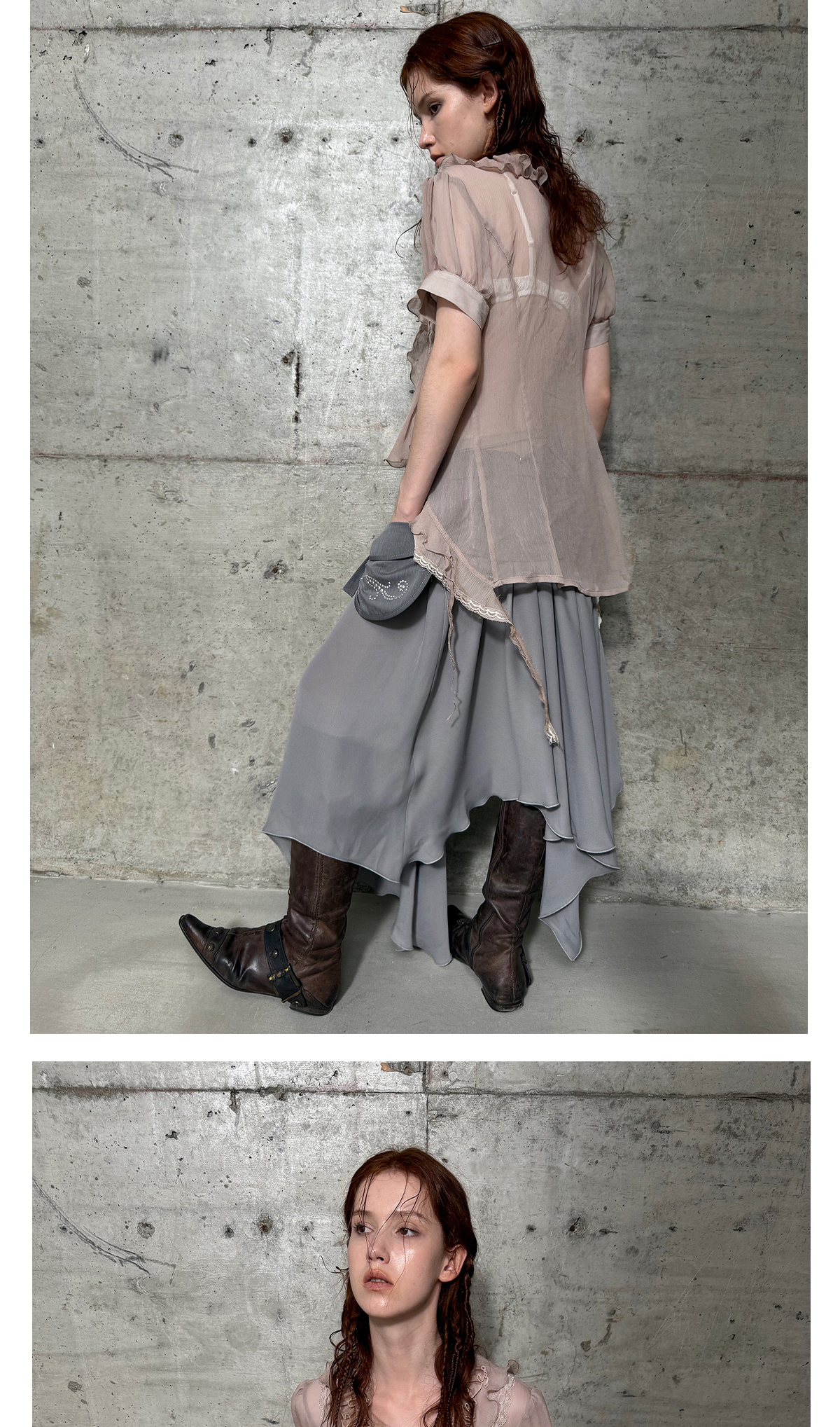 Doublepunch Spring and Summer Original Textured Gauze Multi-Layered Ruffled Irregular Hem "Jellyfish" Shirt