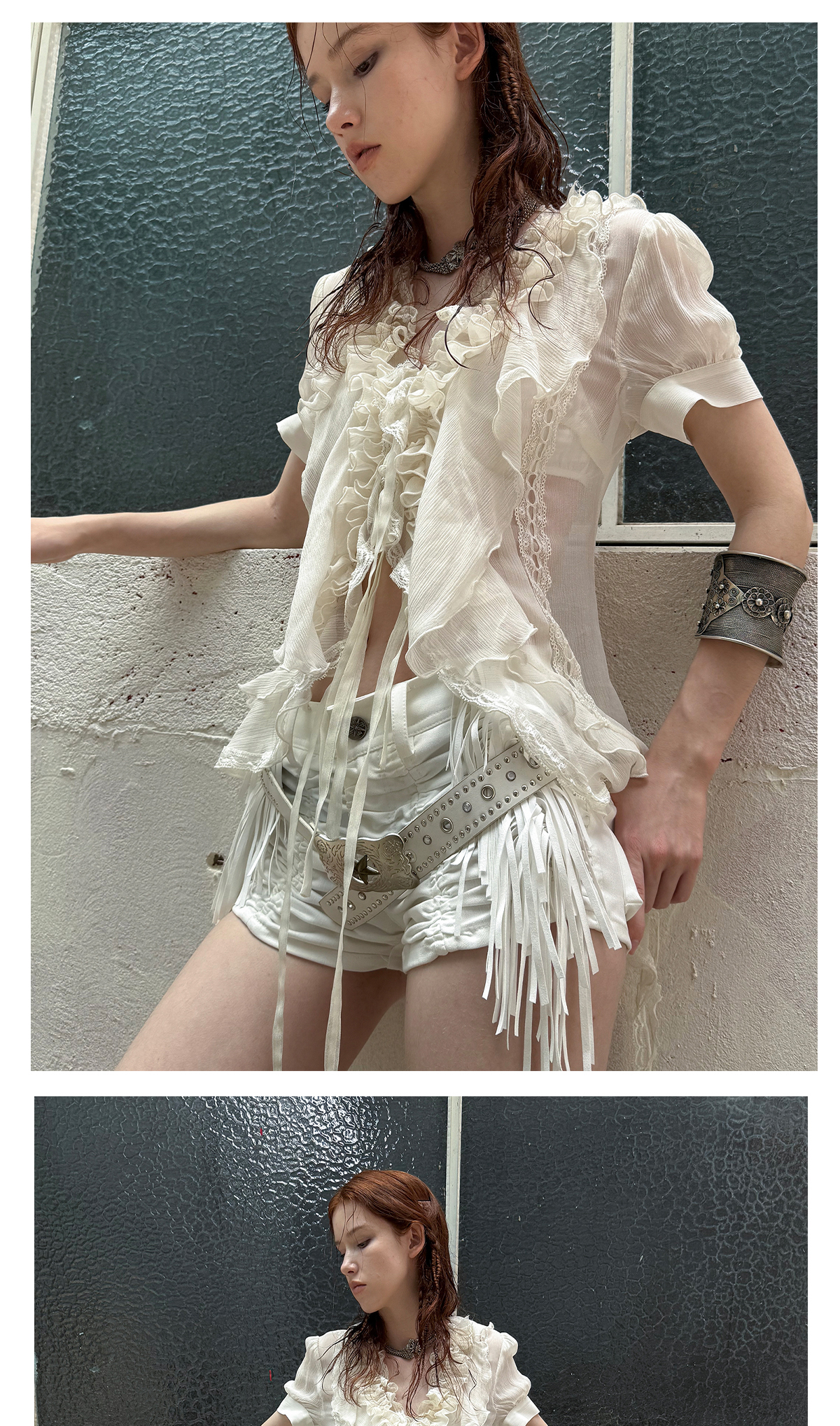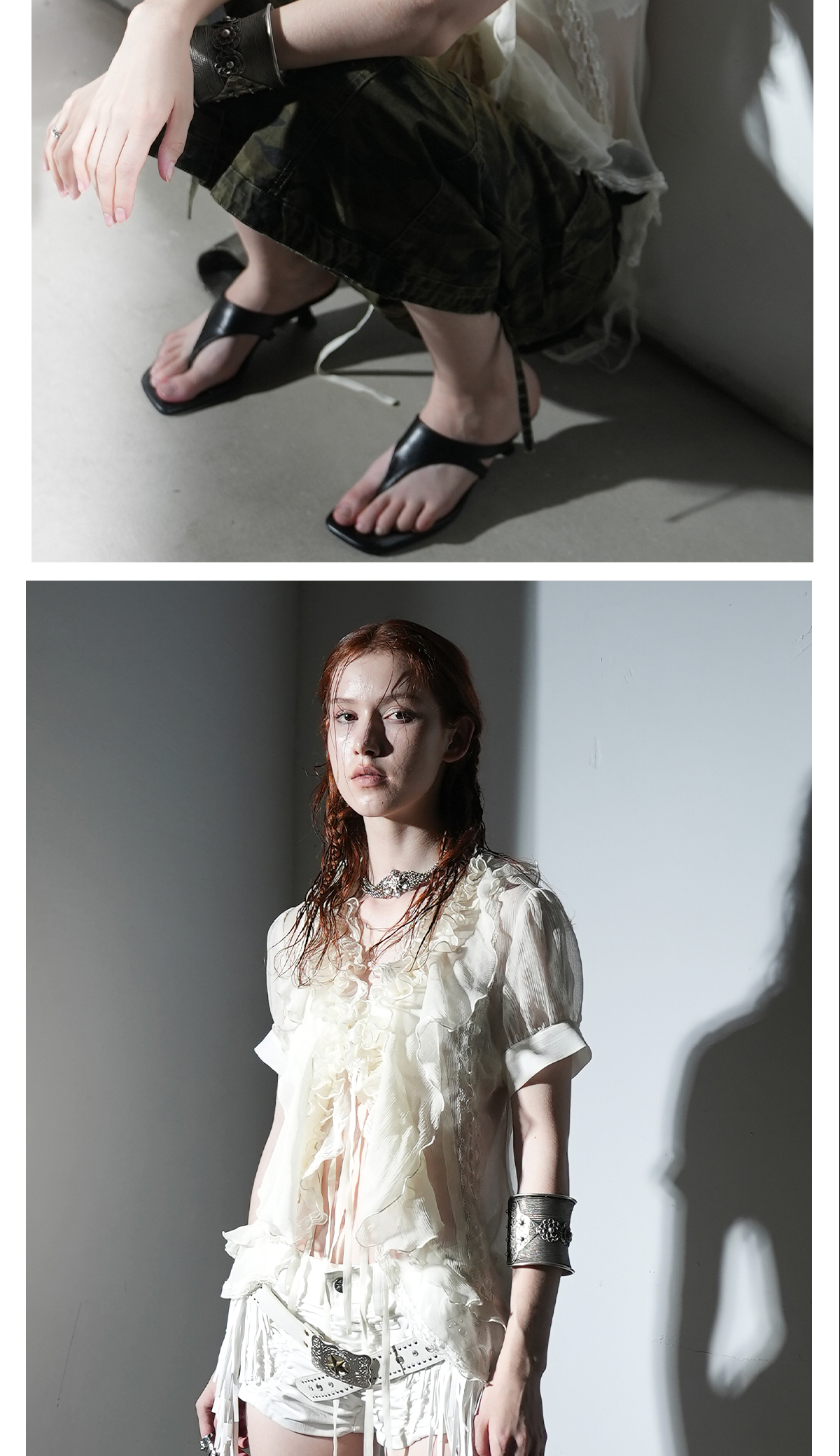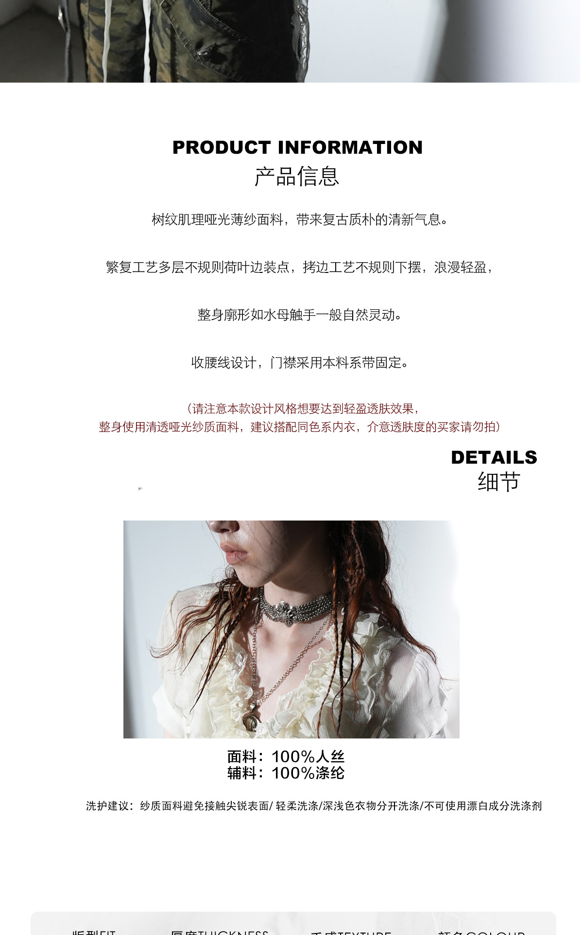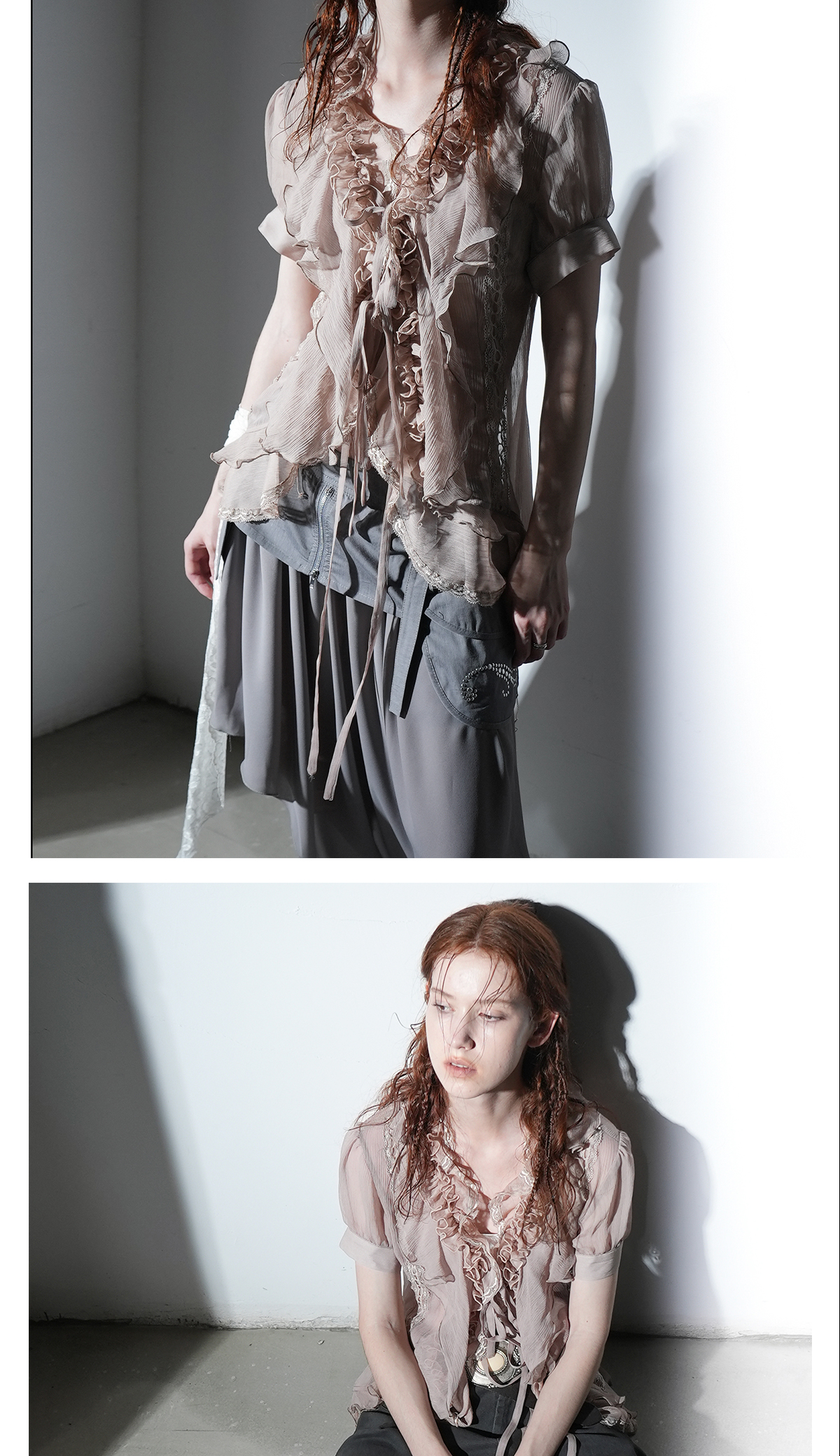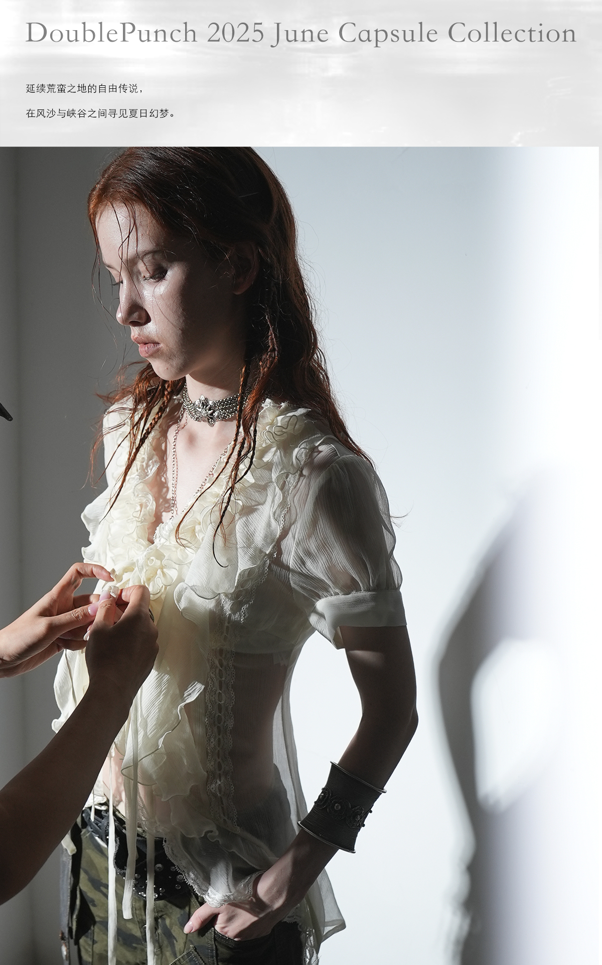 Doublepunch Spring and Summer Original Textured Gauze Multi-Layered Ruffled Irregular Hem "Jellyfish" Shirt