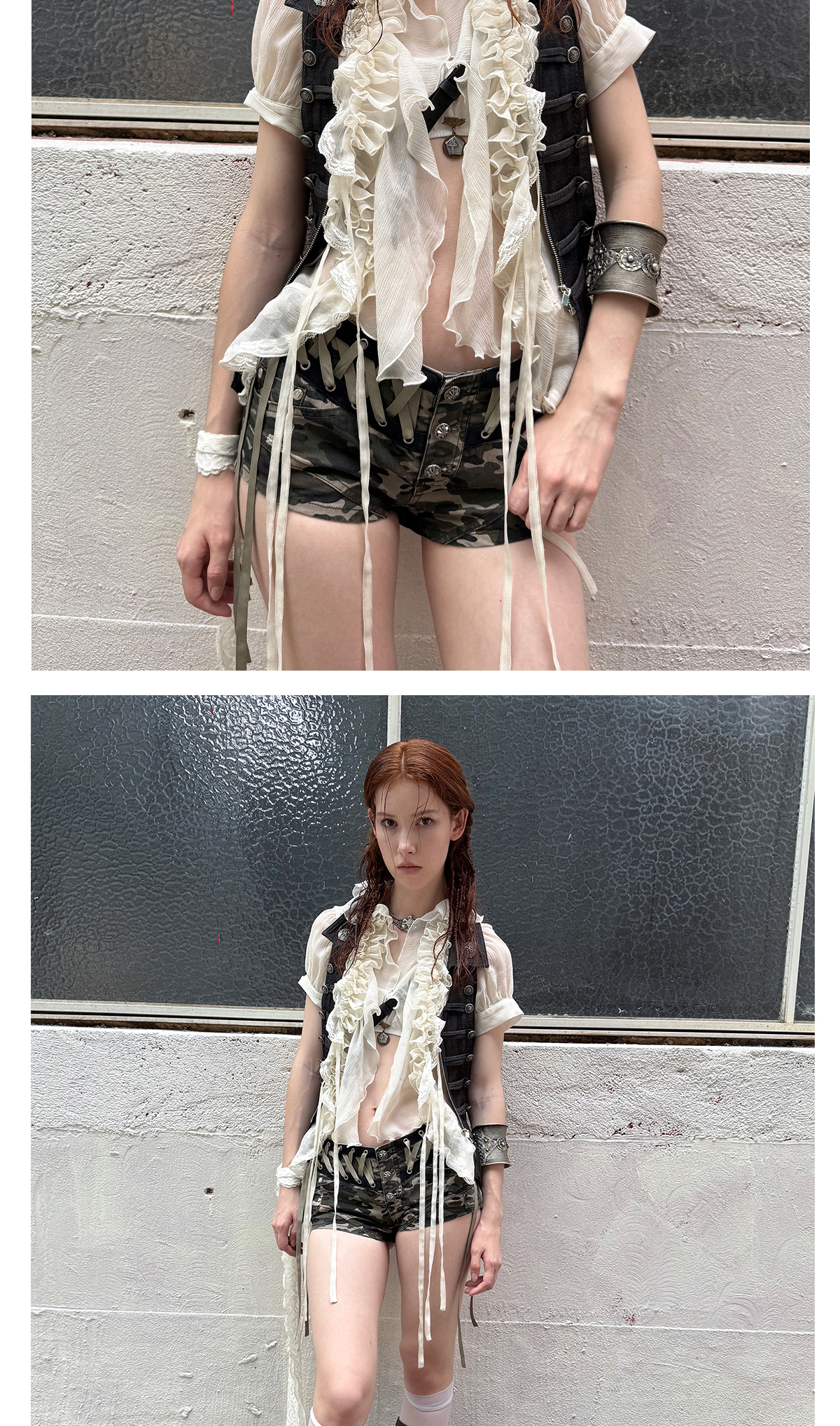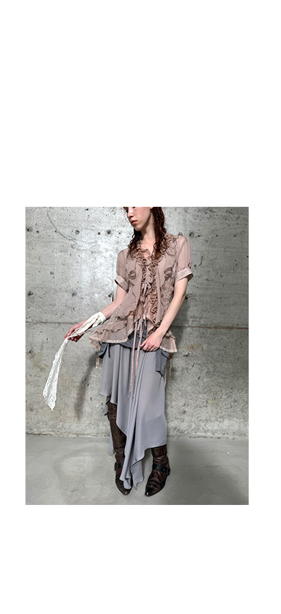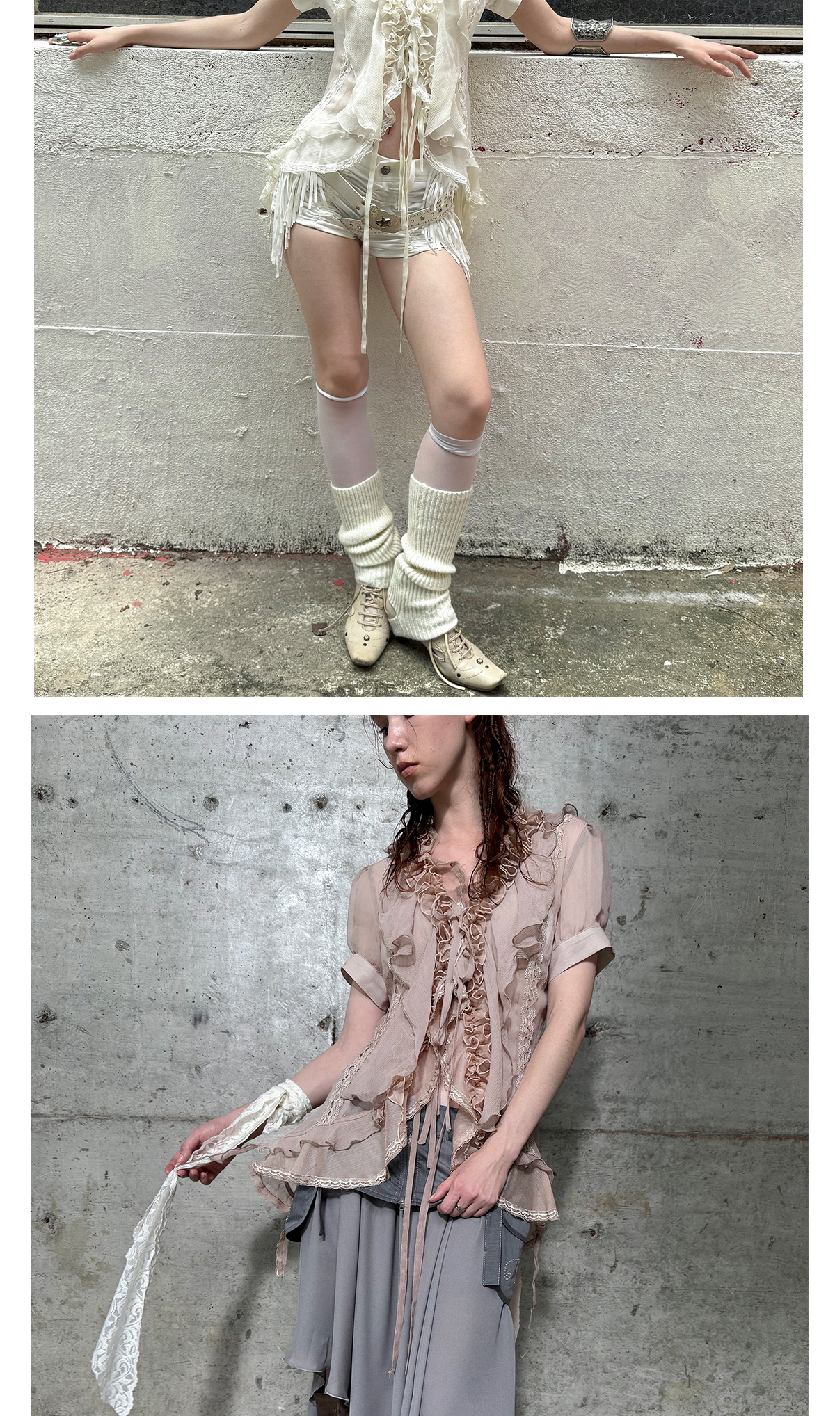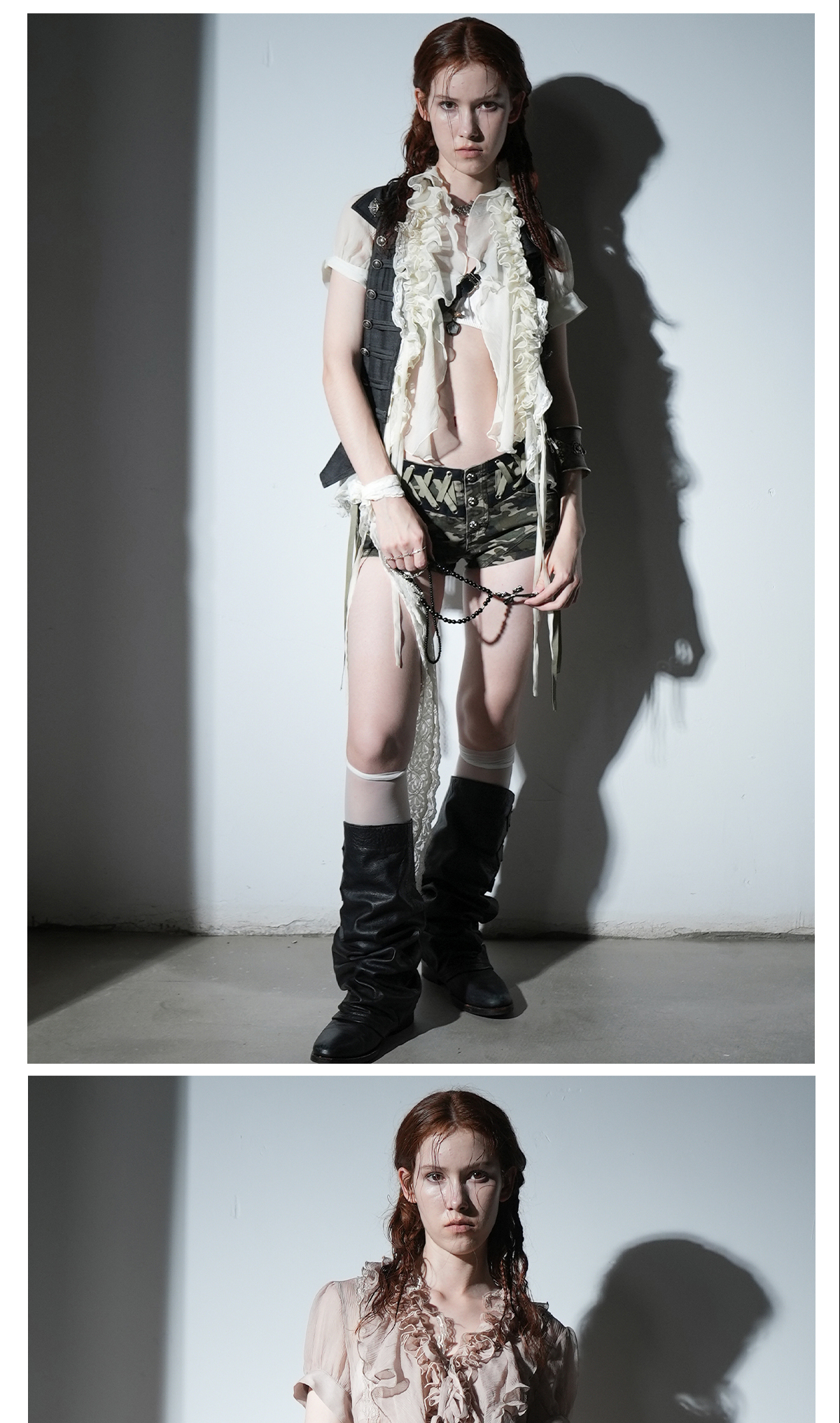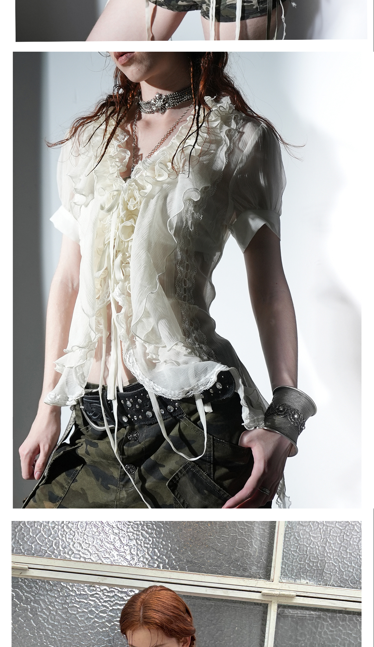 Doublepunch Spring and Summer Original Textured Gauze Multi-Layered Ruffled Irregular Hem "Jellyfish" Shirt