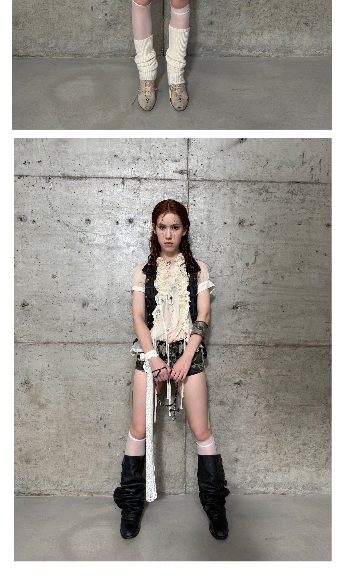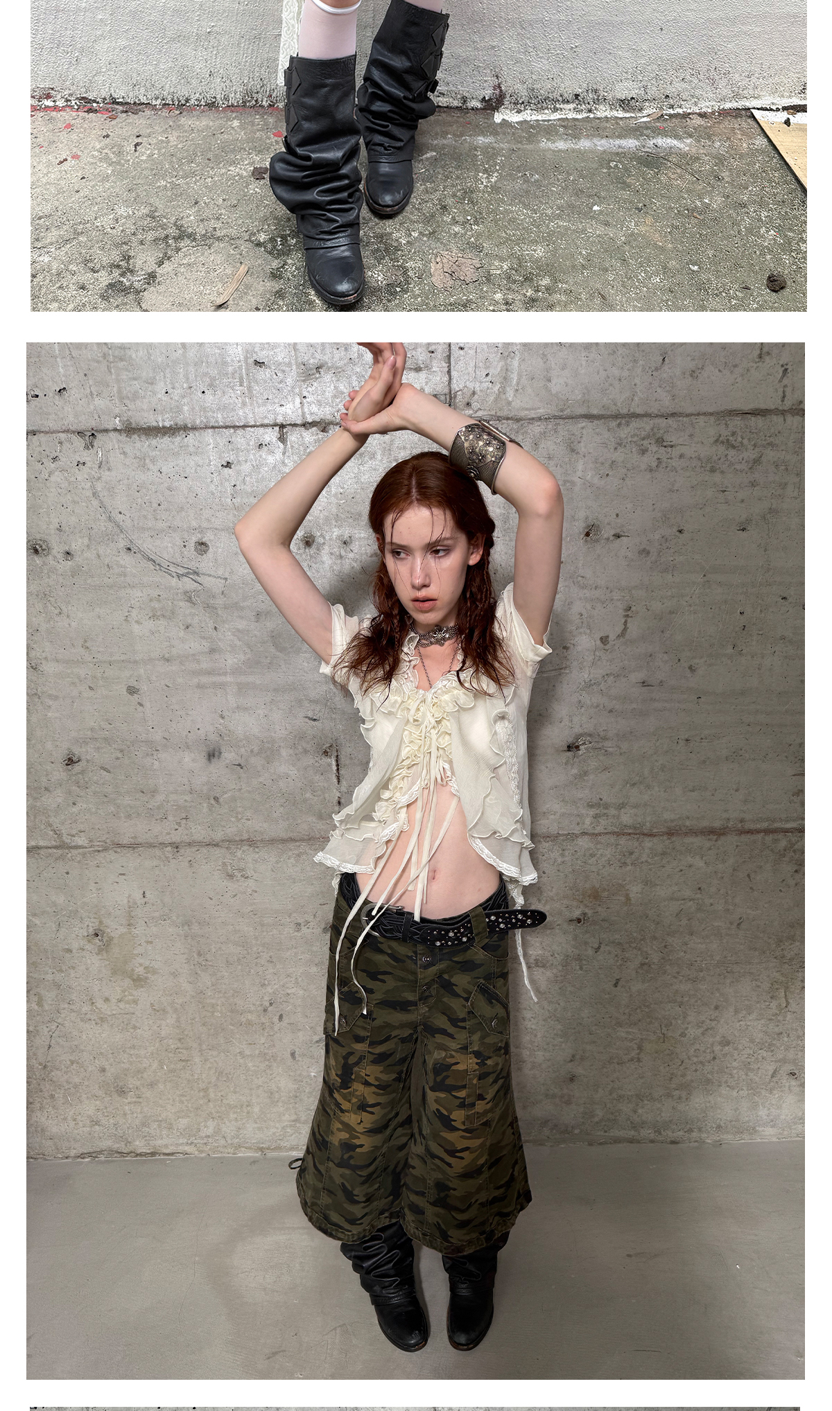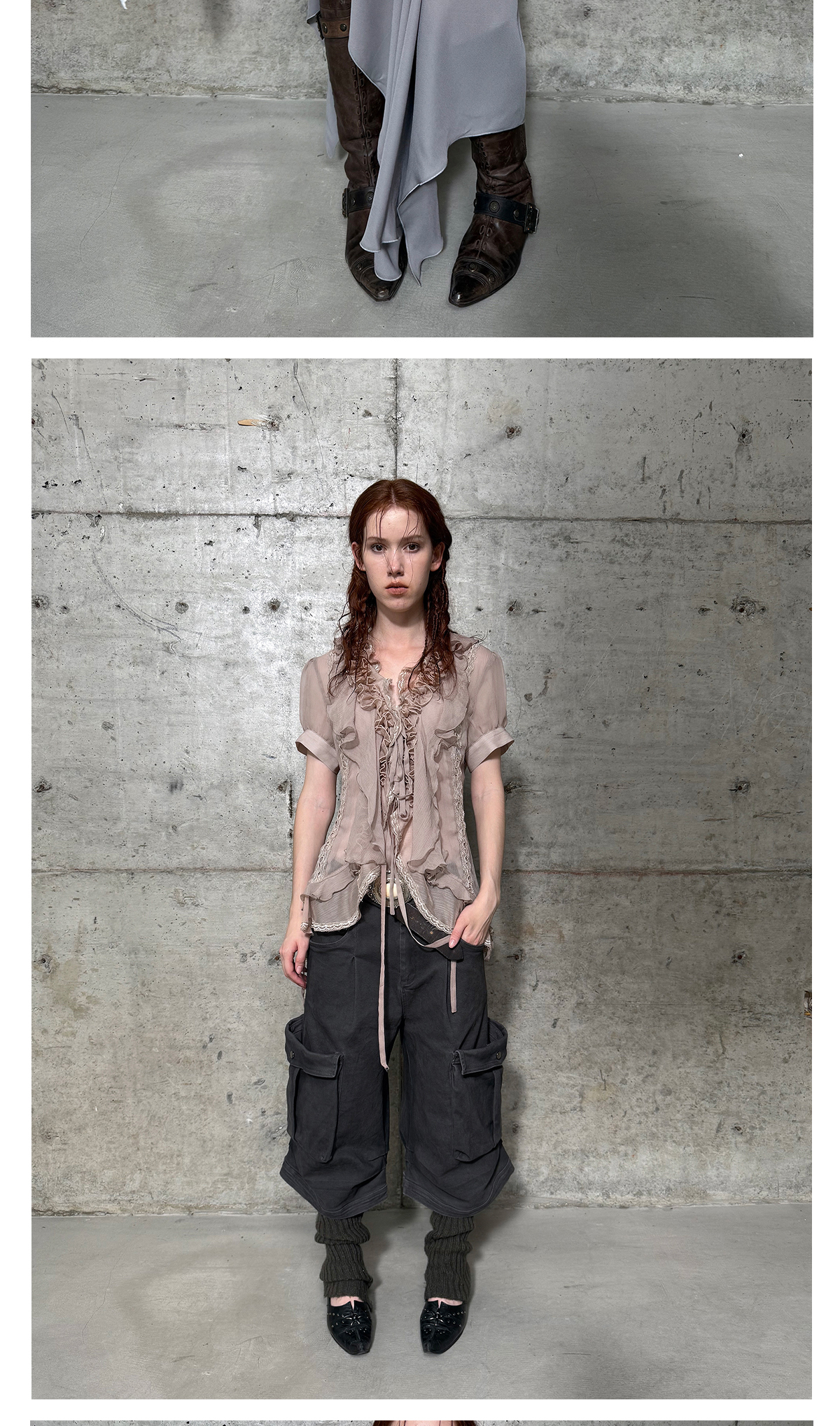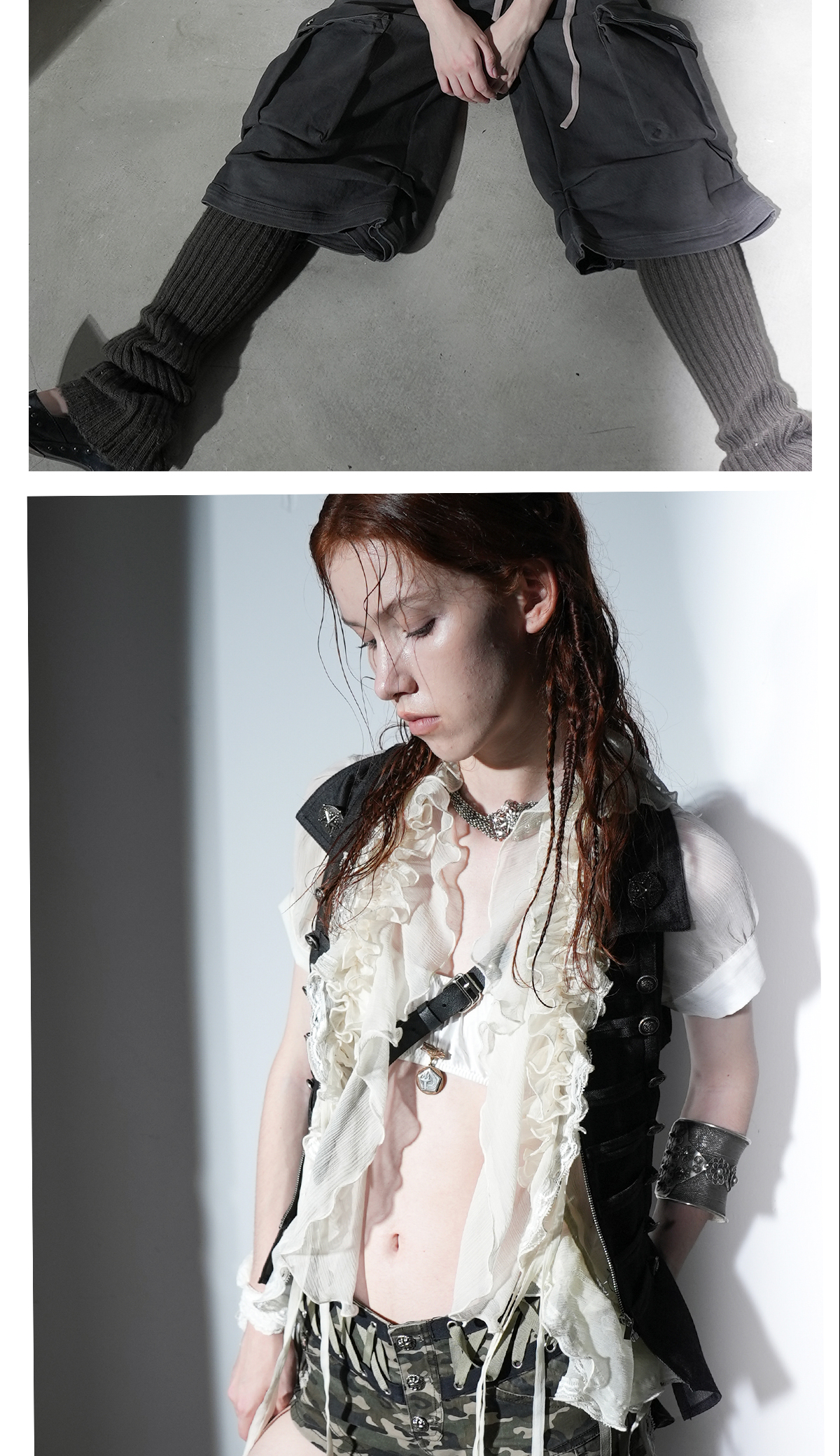 Doublepunch Spring and Summer Original Textured Gauze Multi-Layered Ruffled Irregular Hem "Jellyfish" Shirt