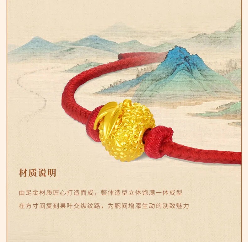 Lao Fengxiang's Naturally Inspirational Lychee Ancient-Style Gold Bracelet Is a Gift for Collection and New Year's Present