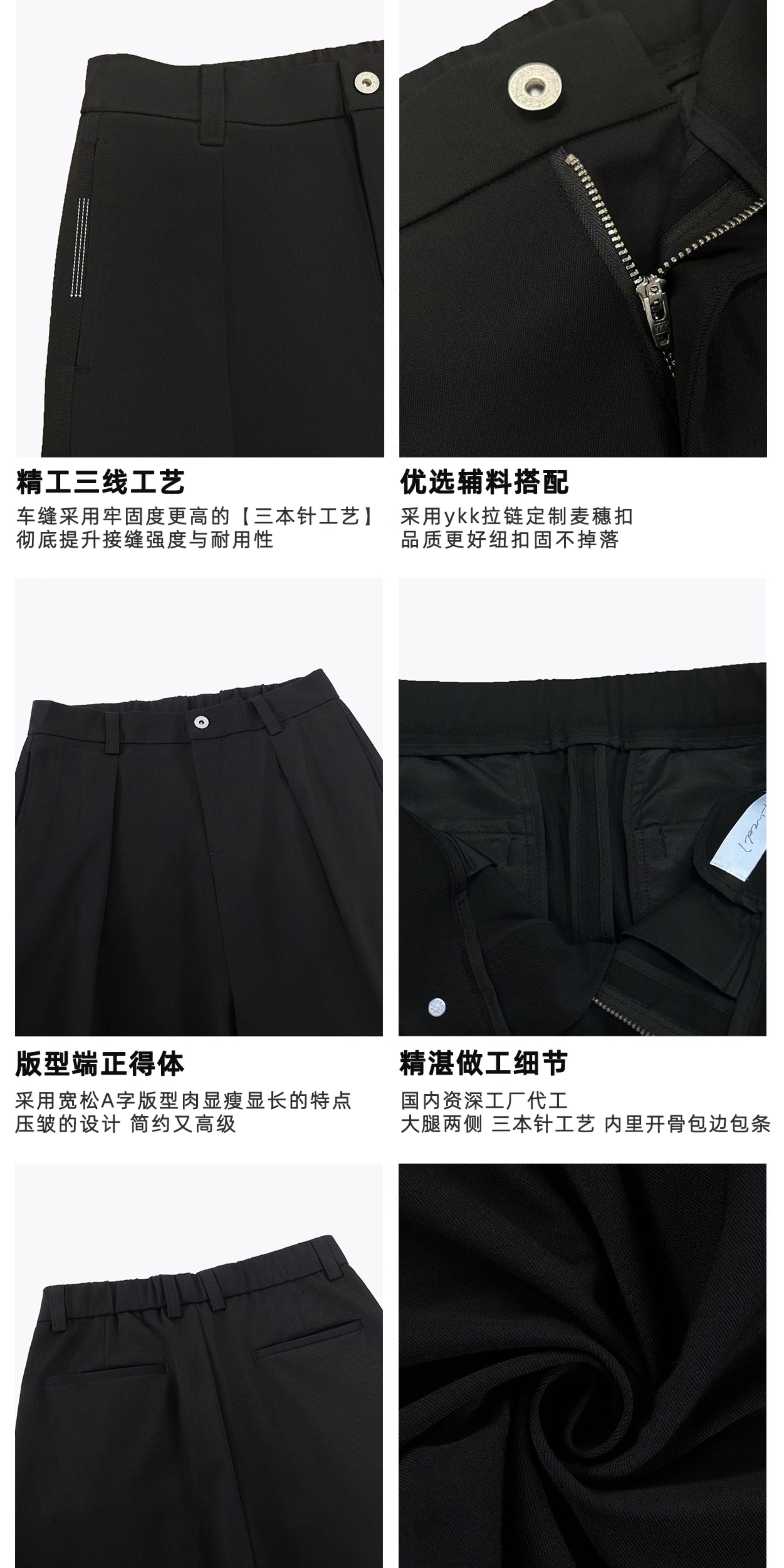 Men's High-Quality Tr Color-Spun Fabric Non-Fading Dress Pants, Autumn and Winter Three-Needle Pleated A-Line Wide-Leg Dress Pants