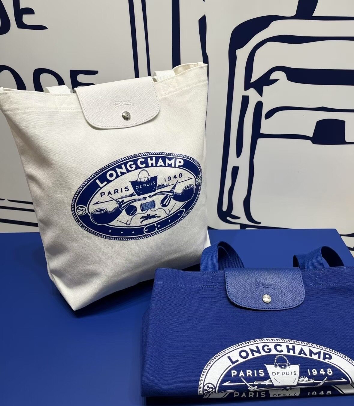 Longchamp 2025 New Canvas Series Shoulder Tote Bag Atlantic Blue