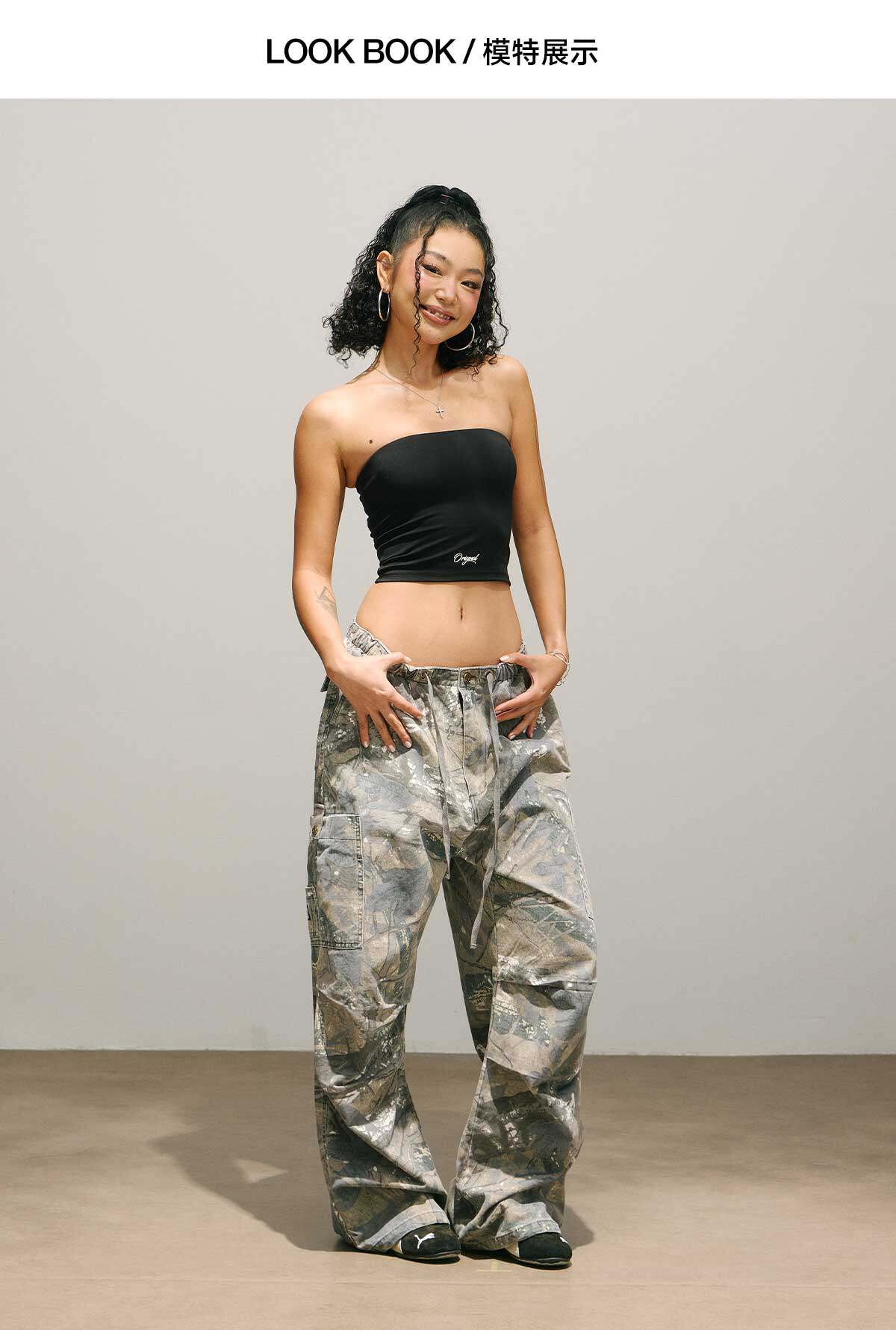 Smileddd Tree Pattern Camouflage Cargo Pants Summer Lightweight Wear-Resistant Loose Hip-Hop Hot Girl Street Dance Jazz Paratrooper Pants