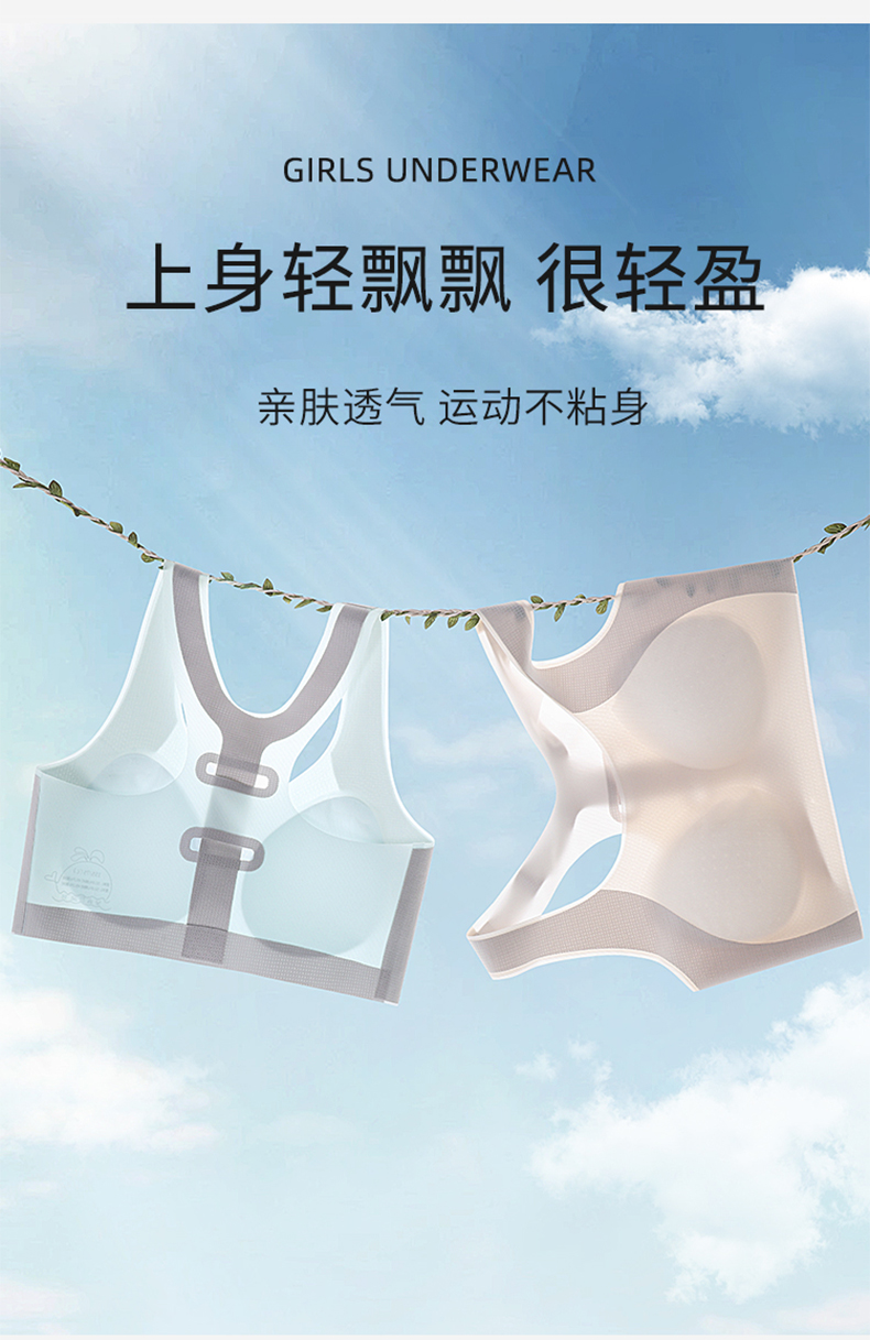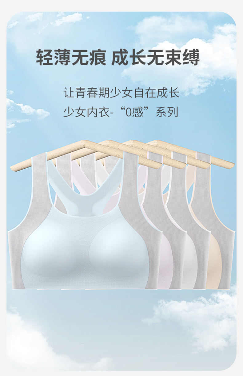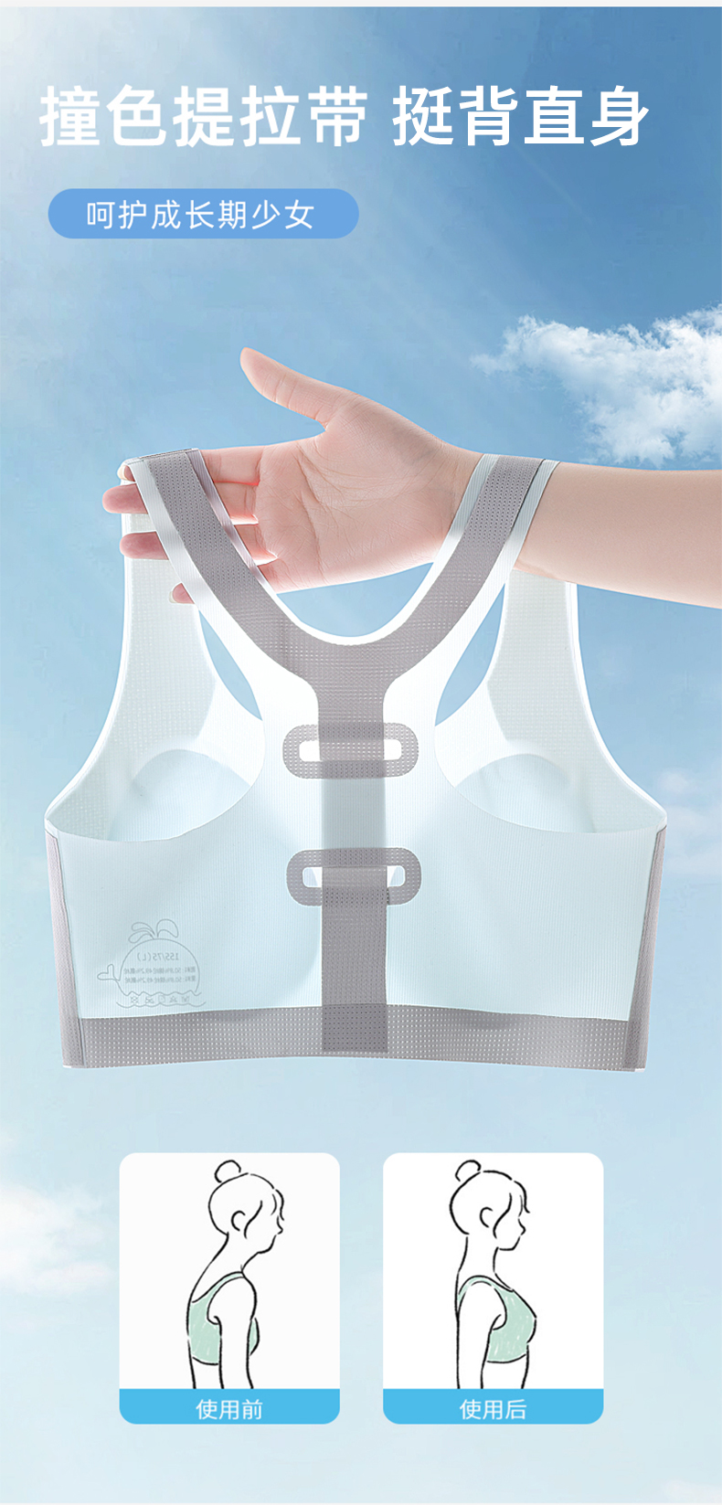 Tingmei Bra for Developing Girls in the Second and Third Stages of Puberty, Fixed Cup, Supportive, Sports, Shockproof, Girls' Underwear