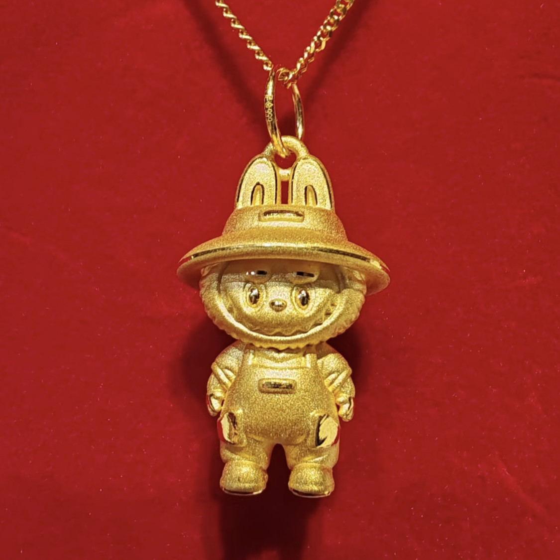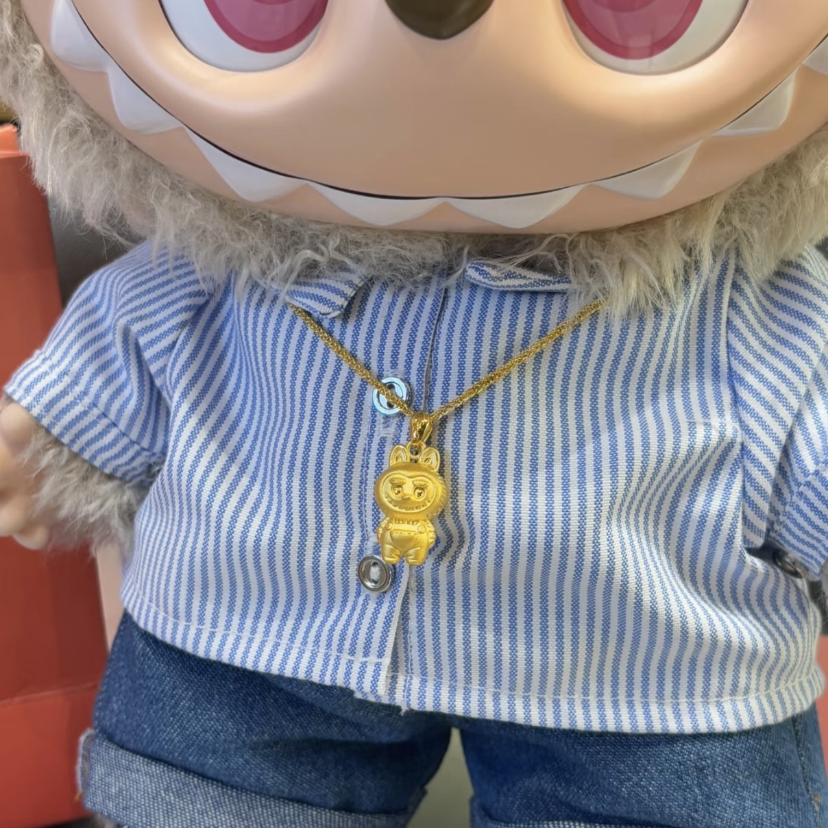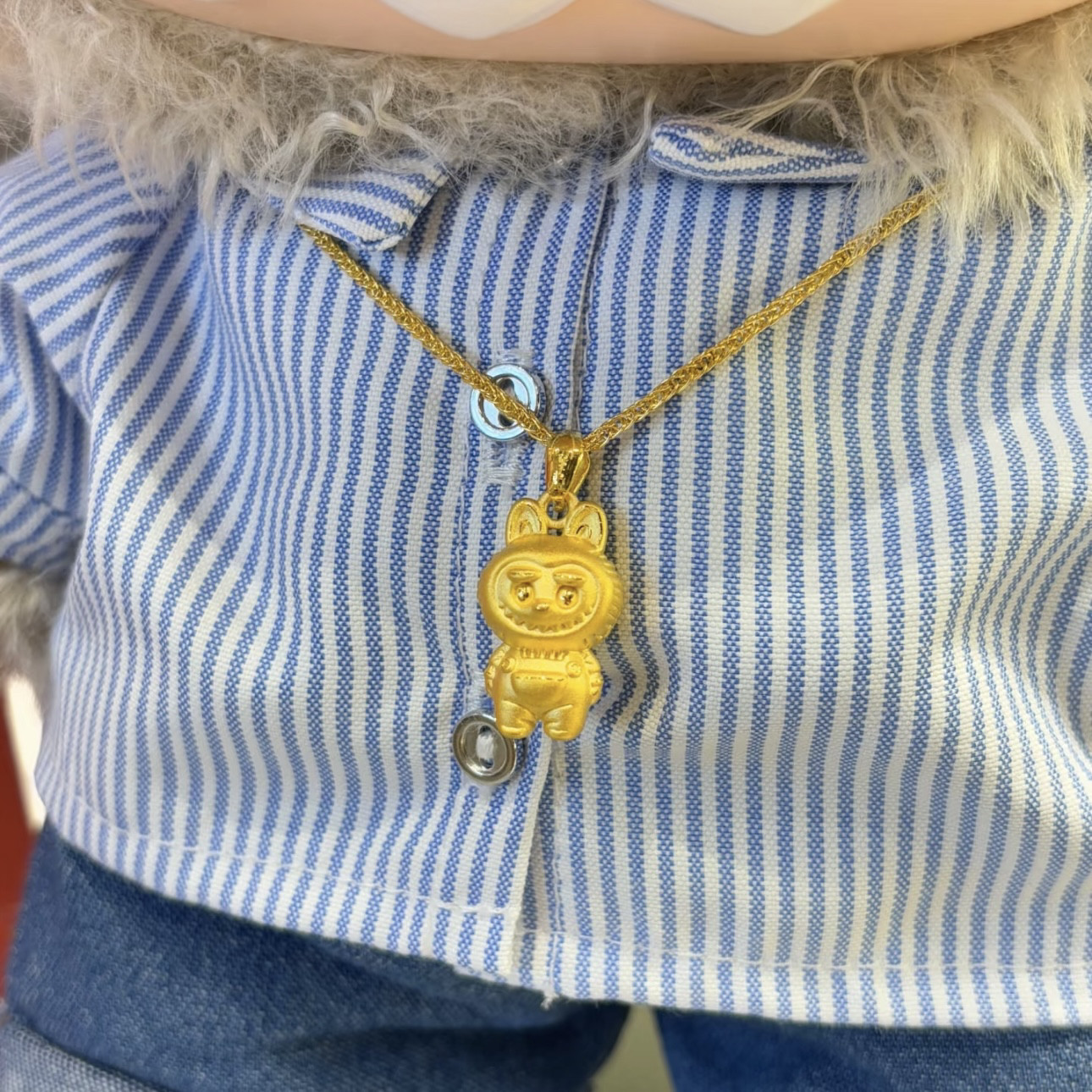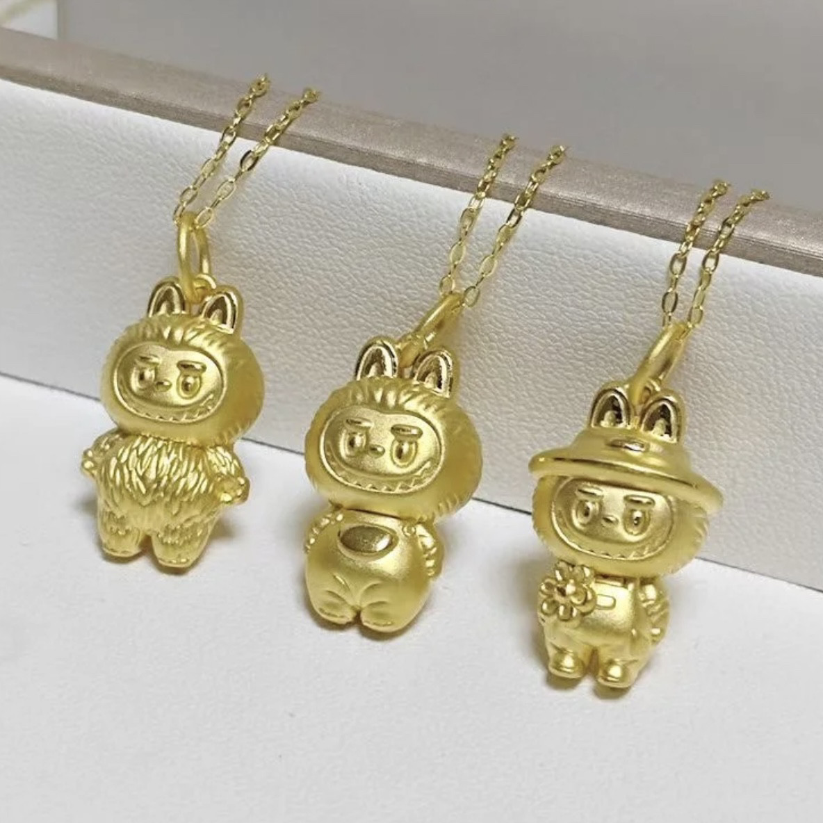 Water Shell Pure Gold 999 Bubble Mart Labubu Pendant Gold Necklace Pure Gold Gift for Girlfriend