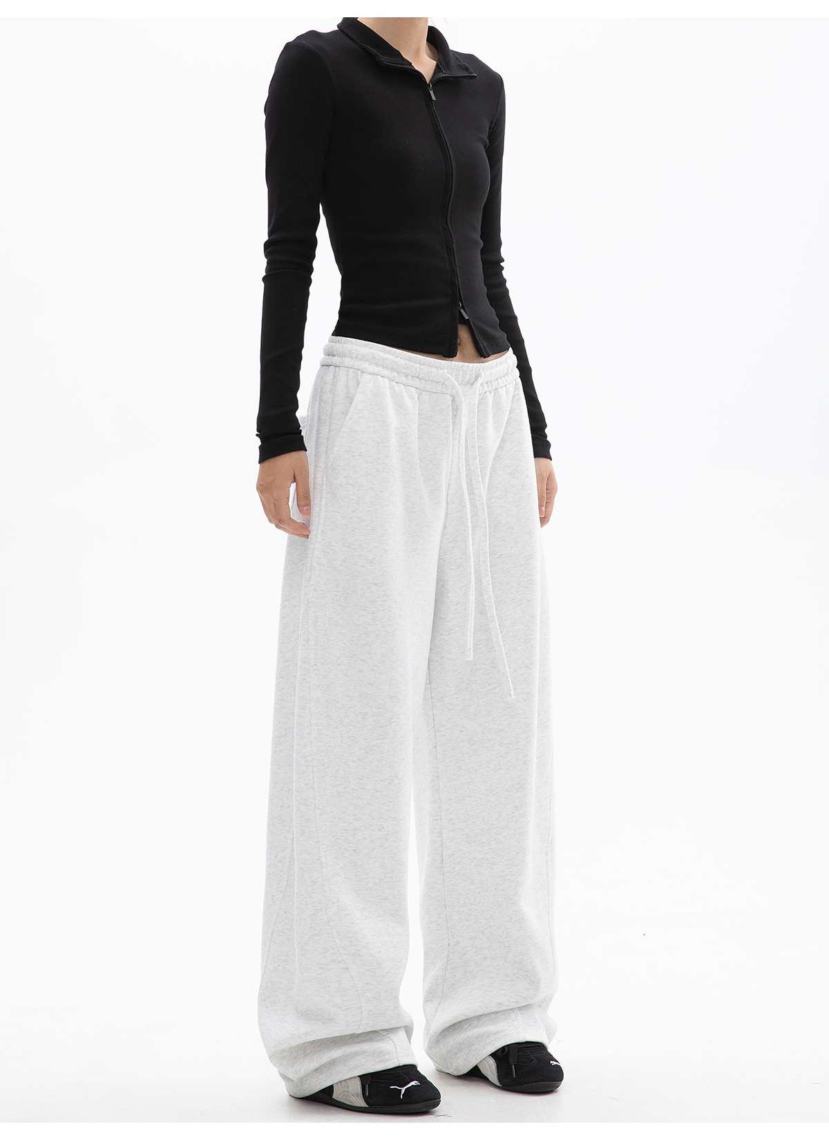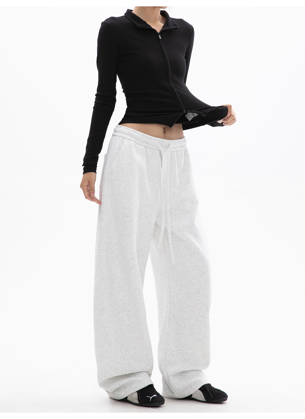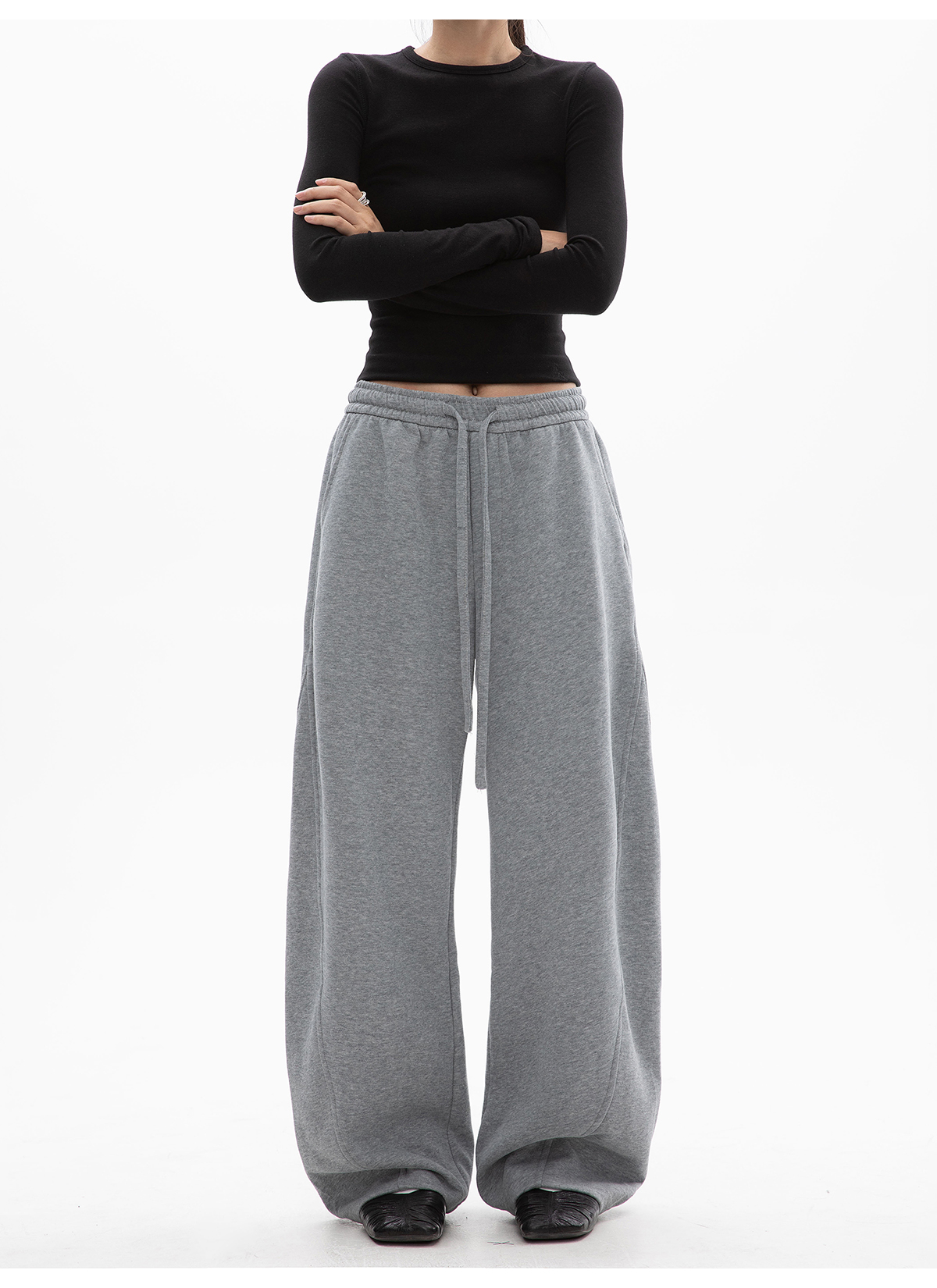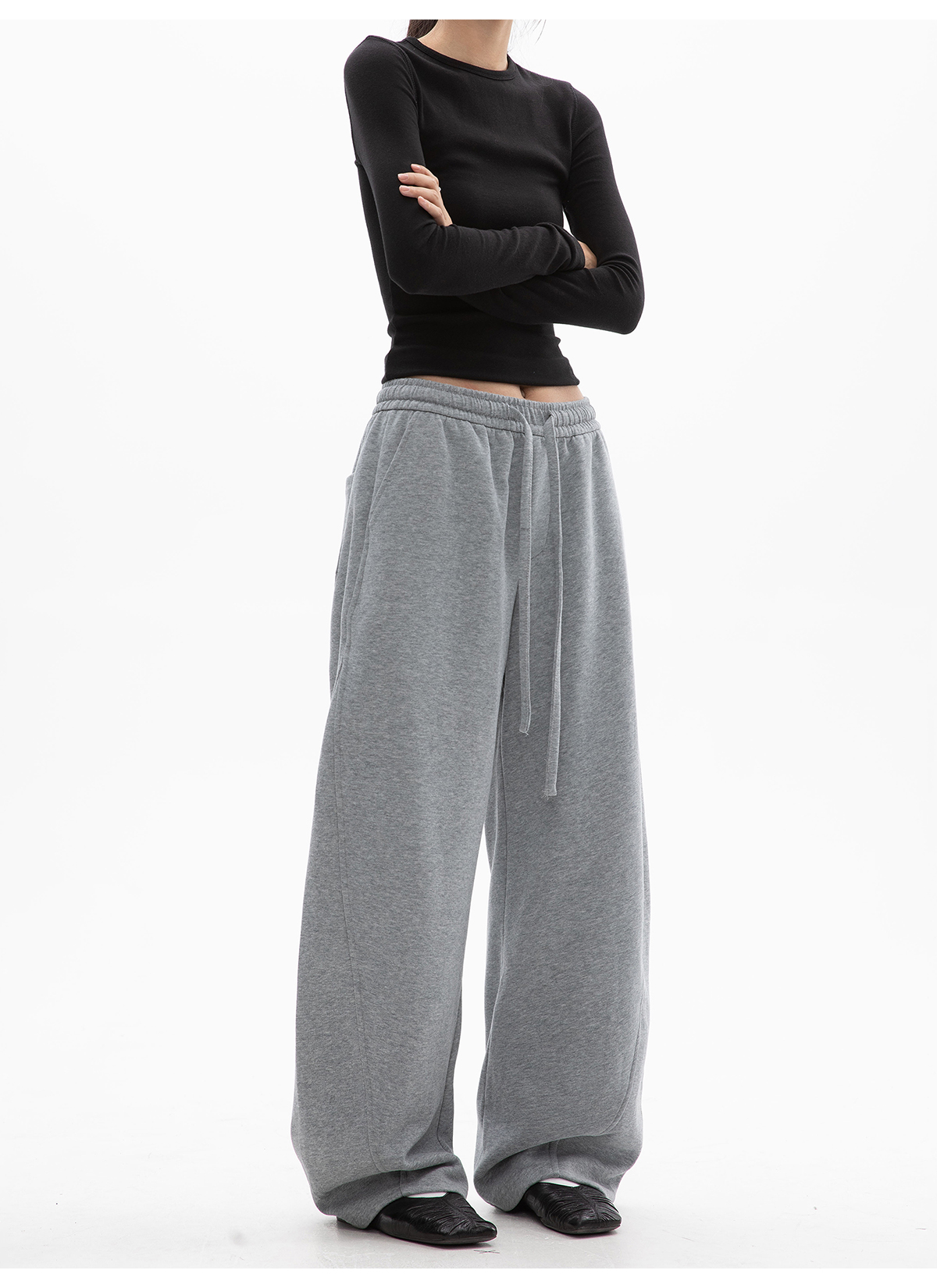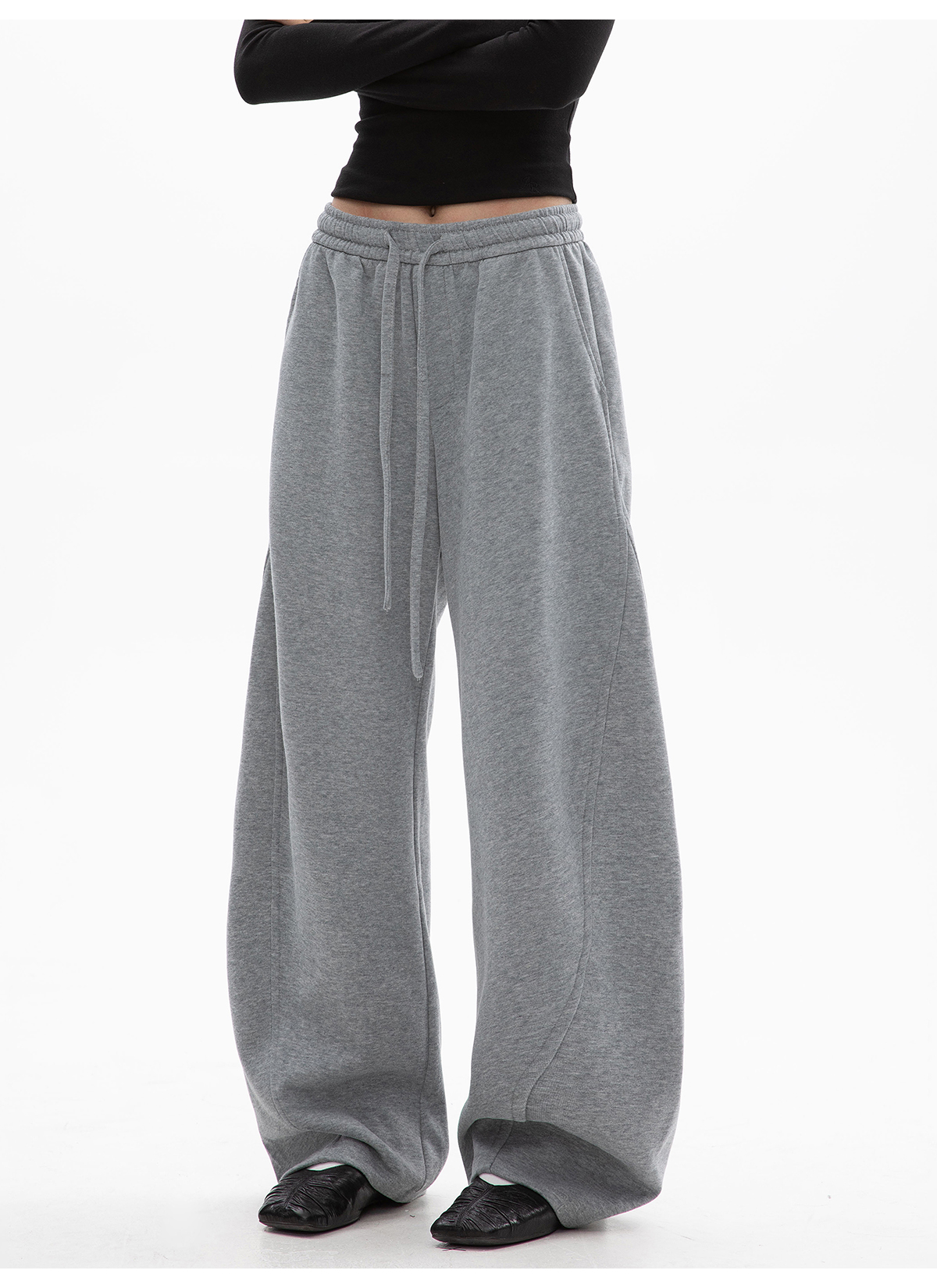 Ich Mode American-Style Fleece-Lined Casual Pants for Women, New Autumn and Winter Sports Sweatpants, Loose Straight-Leg Versatile Wide-Leg Pants